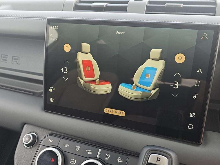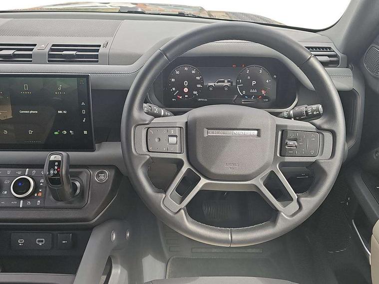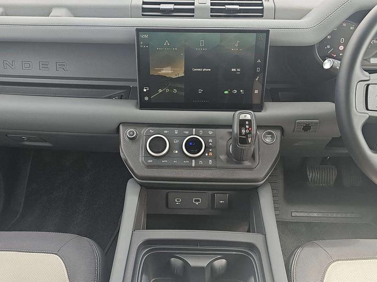 11.4" touchscreen, 360 degree parking aid, 3D Surround Camera with 360 View, 180 Rear View, Front Traffic Detection, Forward Vehicle Guidance, Tow Hitch Assist and clear sight Ground View, Adaptive cruise control, Android Auto, Apple CarPlay, Assisted tailgate with soft close, Blind spot assist, Bluetooth system, Brake pad wear indicator, Clear exit monitor, Connected navigation pro, Driver condition monitor, Electric power assisted steering (EPAS), Interactive driver display, Lane keep assist, Push button start, Rear collision monitor, Rear traffic monitor, Traffic sign recognition with adaptive speed limiter, Trip computer, Wade Sensing, 8 speed automatic transmission, All wheel drive system, Twin speed transfer box, DAB Radio (Digital Audio Broadcasting), Pivi pro connected, Auto dimming interior rear view mirror, Automatic headlight levelling, Automatic headlights, Black exposed rear recovery eyes, Centre high mounted stop light, Electric heated/power fold door mirrors with approach lights and auto dimming driver side, Electric windows with one touch open/close and anti-trap, Follow me home lighting, Front fog lights, Heated rear window with timer, Heated windscreen, LED tail lights, Panoramic rear side glass, Privacy glass, Puddle lights, Rain sensing windscreen wipers, Rear fog lights, Rear wiper, Side hinged tailgate, Trailer stability assist, X-Dynamic badge, 12V power socket in loadspace, 14 way heated and cooled electric front seats with driver memory and 4 way manual headrests, 3 seat bench in 2nd row, Alpine lights, Configurable cabin lighting, Durable rubber cabin flooring, Durable rubber loadspace flooring, Electric reach + rake adjustable steering column, Extended leather upgrade, Footwell lights, Heated steering wheel, Loadspace cover, Loadspace Hook, Manual Tip & Slide front passenger seat, Multifunction steering wheel, Overhead stowage for sunglasses, Premium cabin lighting, Rear headrests, Rear ISOFIX, Rear reading lights, Removable Loadspace storage tray, Row 2 seats with forward folding seat base, Single front passenger seat, Standard seat configuration, Storage glovebox, Sunvisors with illuminated vanity mirrors, Online pack with data plan - Defender, 5 x 3 point seatbelts, ABS, Brake hold function, Cornering brake control (CBC), Customer configurable autolock, DSC - Dynamic Stability Control, EBD - Electronic brakeforce distribution, Electric parking brake (EPB), Emergency brake assist, Emergency braking, ESP + traction control, Front airbags with passenger seat occupant detector, HDC - Hill descent control, Hill launch assist, Low traction launch, Remote for (e-Call, Optimised assistance call, InControl app, Climate, beep and flash and door), RSC - Roll stability control, Seat belt reminder, TPMS (Tyre pressure monitoring system), Alarm, Immobiliser, Intrusion sensor, Keyless entry, Locking wheel nuts,