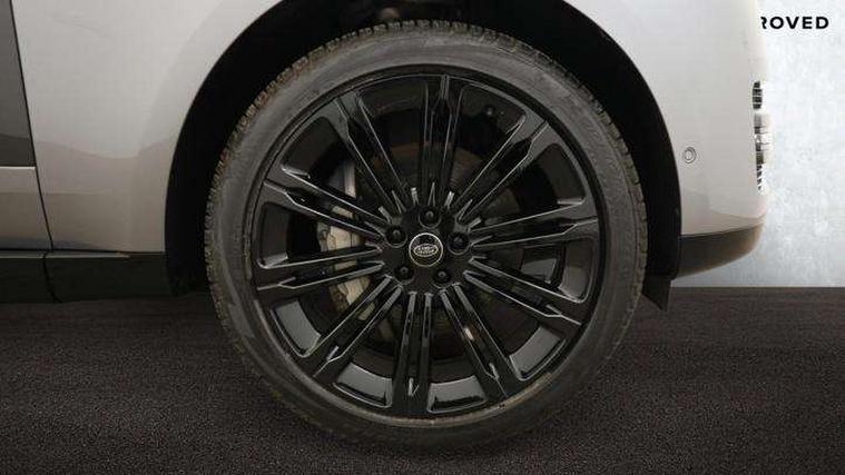 13.1" Touchscreen, 3D surround camera inc frwd traffic detection, vehicle clearance guidance, 3D view, clearsight ground view, manoevure light, 360 parking aid, wade sensing, All Terrain Info Centre, All wheel steering, Android Auto, Apple car play, Blind spot assist, Bluetooth connectivity streaming, Driver condition response, Eco mode, Electric power assisted steering (EPAS), Emergency call service, Front and rear parking aid, Head up Display, Interactive driver display, Lane keep assist, Rear collision monitor, Rear traffic monitor, Remote, Traffic sign recognition with adaptive speed limiter, Wi-Fi Enabled with data plan, Wireless device charging with phone signal booster, 8 speed automatic transmission, Active damper technology system, Adaptive dynamics, All terrain progress control, All Wheel Drive (AWD), Automatic access height, Terrain Response 2 Auto, Twin speed transfer box, Digital Audio Broadcast radio-DAB, Pivi pro including smart settings, Connected navigation pro, nuance speech, USB socket, Acoustic laminated windscreen, Animated directional indicators, Automatic headlights, Automatic levelling headlights, Centre high mounted stop light, ClearSight interior rear view mirror, Electric windows with one touch open/close and anti trap, Engine cover, Flush deployable exterior door handles, Front and rear recovery eyes, Front fog lights, Headlamp power wash, Heated rear window, Heated washer jets, LED tail lights, No badges, Power fold, auto-dimming, heated door mirrors with approach lights, Rain sensing windscreen wipers, Rear boot, Rear fog lights, Rear side wing doors, Side repeater indicators in mirror, Trailer stability assist, Winter wiper park position, 12V power sockets, 3 seat bench in 2nd row, Air quality sensor, Bright metal pedals, Cabin air purification pro, Cabin lighting, Customer configurable single point entry, Driver and passenger front seat armrests, Easy boot loading, Ebony Carpet, Front and rear cupholders, Front and rear grab handles, Front head restraints, Gearshift paddles, Heated steering wheel, Hook in load space, Loadspace light, Luggage tie down in loadspace, Multifunction steering wheel, Rear centre armrest, Rear head restraints, Rear ISOFIX, Single front passenger seat, Soft close doors, Twin blade sunvisors with Illuminated vanity mirrors, Upper and lower glovebox, Online pack with data plan - Range Rover, 3x3 point rear seat belts, Anti-lock braking system (ABS), Brake hold function, Cornering brake control (CBC), Customer configurable autolock, DSC - Dynamic Stability Control, Electronic brake force distribution, Electronic parking brake, Electronic traction control, Emergency brake assist, Emergency braking, Front airbags with passenger seat occupant detector, Front side airbags, Hill descent control, Hill launch assist, Illuminated seat belt buckles, Low traction launch, Occupant protection assist, Power operated child locks, Roll stability control, Tyre pressure monitoring system (TPMS), Immobiliser, Intrusion sensor and alarm, Keyless entry, Locking wheel nuts, Remote central locking, Noble chrome controls,