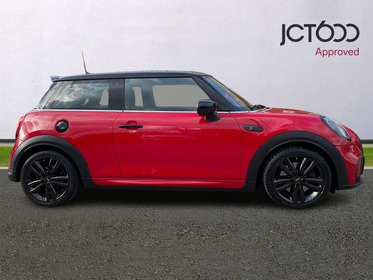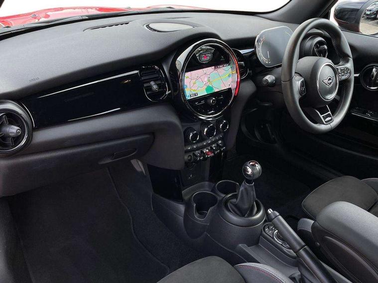 Apple CarPlay, Automatic start/stop function with brake energy recuperation, Compatible mobile phone bluetooth with audio streaming, Cruise control with brake assist, Electro-mechanical speed dependant steering assistance, Flexible car sharing preparation, Instrument cluster, MINI Driving Modes - centre toggle switch to control driving setting (sport, mid and green), Mini E-call, MINI TeleServices, On board computer, Rear park distance control, Service interval indicator, 6 Speed manual transmission including gear change indicator display, Double Vanos system, Fully variable valve control, High precision injection, Intelligent adaptive suspension, Performance Control, 8.8" touchscreen with LED ring, FM tuner and DAB digital radio, 3rd brake light, Automatic headlight activation switch, Bonnet scoop, Dynamic brake lights, Electric front windows, Heated rear window, Heated windscreen washer jets, JCW Aerodynamic kit - Front and rear bumpers with sporty JCW styling and part-painted side sills with MINI John Cooper Works door sill finishers, John Cooper Works rear spoiler, LED headlight with closed ring and daytime driving lights, Metal door sill strips with Cooper S, Model logo Cooper S on right of tailgate, Radiator grille chrome border with honeycomb structure including S Badge, Rain sensor window wipers, Rear fog lights, Rear LED lights with union jack design, Rear window wiper, Side scuttle panel with integrated indicator, Sun/heat protection glass, Two central exhaust tailpipes with chrome finisher, White indicator lenses, 12V Accessory socket in centre console, 2 seat bench in 2nd row, 4 lashing eyes in luggage compartment, 60/40 split folding rear seat, Anthracite headliner including grab handles and clothes hooks, Carbon black colour line - Knee roll and door armrest, Chrome interior highlights, Cupholders, Front and rear isofix with front passenger airbag deactivation, Front floor mats in velour, Glove compartment, Height and length steering column adjustment, Interior lighting with 12 different colours across the dashboard, underneath door bezel with illuminated laser-engraved design on central display, JCW Sport seats with integrated headrests, adjustable thigh support and John Cooper Works logo, Leatherette gearshift lever and handbrake gaiters, LED reading lights, vanity mirror lights, front foot well light and spotlight on front seats, Manual air conditioning, Mechanical seat adjustment - forward/back & backrest for front seats and driver seat height adjust, Multifunction steering wheel, Passenger seat height adjuster, Single front passenger seat, Storage compartments in doors, Storage pocket on back of front seats, Sunvisors with vanity mirrors, Walknappa leather steering wheel with grey seam and John Cooper Works badge on Piano Black lower steering wheel spoke, Piano black exterior pack - Mini Hatchback Cooper S, 3 point seatbelts on all four seats, 6 Airbags - front, side, head and seat belt tensioners, Anti-lock braking system (ABS), DSC - Dynamic Stability Control, Front and rear disc brakes, Two tone horn, Tyre pressure monitoring system, Alarm system with tilt sensor, monitoring doors, bonnet interior and tailgate, Electronic vehicle immobiliser, Start/stop toggle with keyless go, Piano black interior trim, Tool kit,