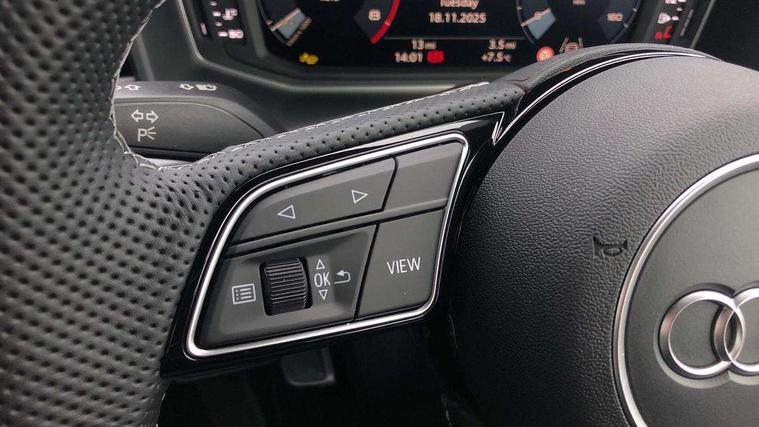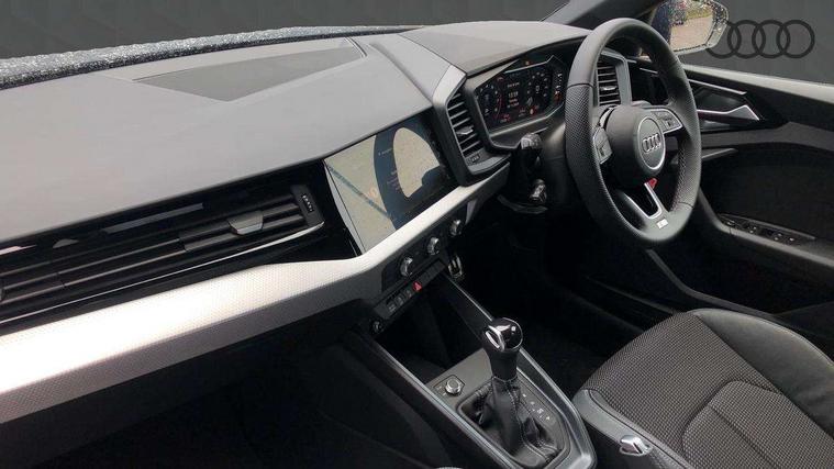 10.25" Digital instrument cluster display classis style instrument dials + speed, odometer, time, outside temperature, telephone menu + fuel level warning, Advanced driver attention and drowsiness monitor, Audi connect emergency call and service, Audi drive select, Audi remote connect and control, Audi smartphone interface, Bluetooth interface, Camera based traffic sign recognition, Cruise control, Driver's information system, Electromechanical power steering, Lane departure warning system, Rear parking sensor, Service interval indicator, Speed limiter, Start stop system with recuperation, Voice control system, Washer fluid level indicator, Sports suspension, 2 x USB type C connection points, 6 loudspeakers, DAB Digital radio, MMI radio plus with 10.1" colour MMI display screen and MMI touch, Auto dimming rear view mirror, Body coloured door mirrors, Door sill trims with aluminium inlays and S line logo in front, Electric front and rear windows, Electrically adjustable, heated, folding door mirrors with integrated LED side indicator, Front side air inlets in grained matt black and C frame in anthracite black, Headlight cleaning system, Heat insulating glass windscreen and side windows, Heated rear windscreen, High level LED brake light, LED daytime running lights, LED headlights with range control LED rear lights + dynamic rear indicators, Light and rain sensors, Privacy glass, Radiator grille and rear diffuser in matt anthracite black, Radiator protective grille frame in matt aluminium silver, Rear fog lights, Rear side wing doors, Rear wiper, S line badges on front wings, Side front spoiler lips in grained matt black, 12V socket in centre console with two cup holders, 3 rear seats with headrests, 3 seat bench in 2nd row, 3 spoke leather multi-function plus steering wheel features S badging and grips in perforated leather with contrast stitching, 40:60 Split folding rear seat or fully collapsed, Black cloth headlining, Front and rear velour black floor mats with contrast stitching in fine silver, Front head restraints, Front passenger seat, Height and reach adjustable steering wheel, Interior lighting includes roof module, front and rear reading lights and right luggage compartment lighting, ISOFIX child seat mounting for front passenger and outer rear seats including top tether attachment point of outer rear seats, Leather gear knob with aluminium trim, Leather handbrake grip, Manual air conditioning, Manual height adjustable for driver and front passenger seat, Manually adjustable lumbar support in front seats, Stainless steel pedals, Ambient lighting package - A1, Luggage compartment pack - A1, S line exterior styling pack - A1 Sportback, 3x3 point rear seatbelts, Audi pre-sense front with pedestrain and cyclist recognition, Brake assist function, Driver and front passenger airbag with front side and head airbags, Electronic Stability Control including ABS, EBD, ASR and EDL, Front passenger airbag deactivation switch, Hill hold assist, Manual rear child locks, Seatbelt height adjustment for front seats, Seatbelt monitoring, Tyre pressure loss indicator, Warning triangle and first aid kit, Anti theft alarm, Anti theft wheel bolts, Immobiliser, Remote control key with safelock, Aluminium trim for control switches, air vents and digital instrument cluster, Black dashboard, Silver grey inlays polygon structure in diamond paint finish, Structured grey accent surfaces insert of air vents, interior door handle recesses and centre console in quartz paint finish,