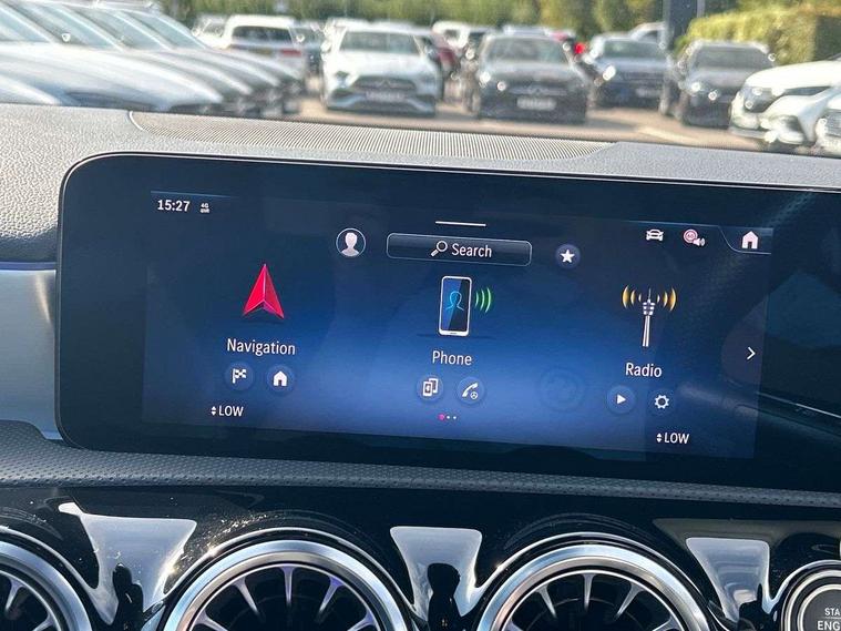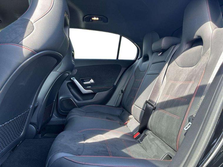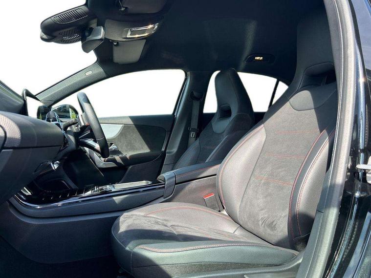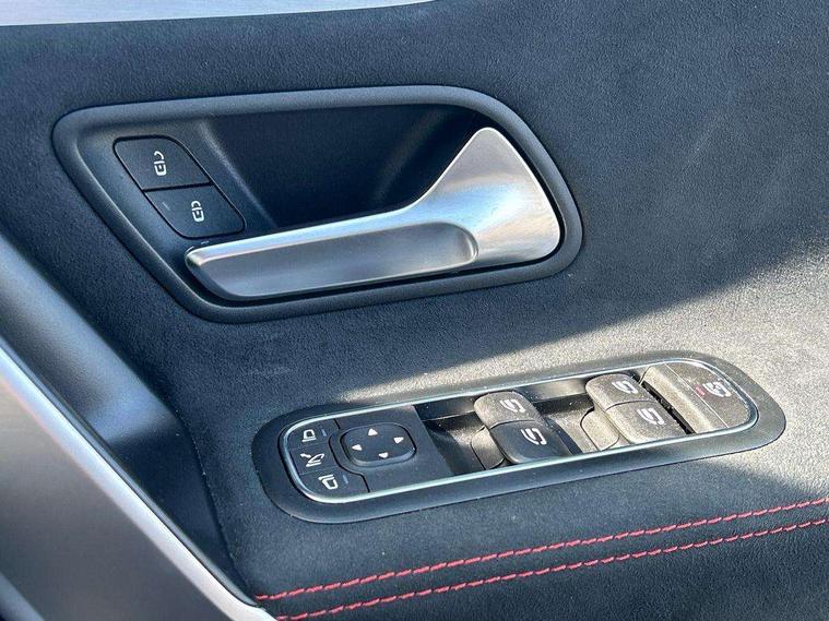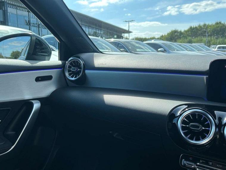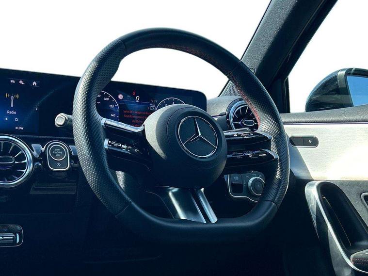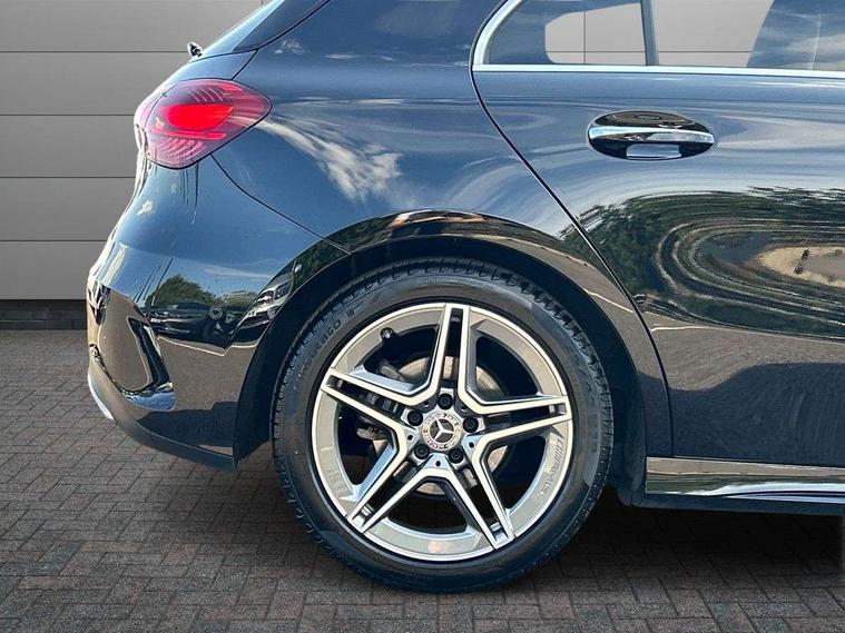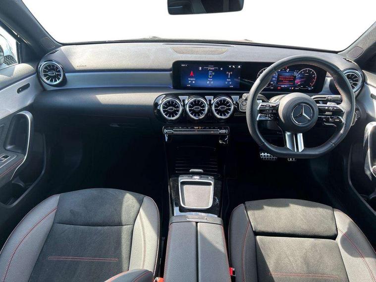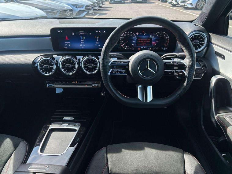 10.25 inch touchscreen central media display, 10.25" Digital instrument cluster display screen, Attention assist, Blind spot assist, Brake pad wear indicator warning light, Car wash mode, Cruise control + speed limiter, Direct steering, Direction indicators with lane change function, Dual bluetooth interfaces, DYNAMIC SELECT with a choice of driving modes (ECO, Comfort, Sport and Individual), Easy pack tailgate hands-free access, ECO start/stop function, Engine start/stop button, Fingerprint scanner, Fluid level warning indicator for fuel, oil, coolant and washer fluid, Fluorescent jacket for driver, Hard-disk navigation, Hey Mercedes Voice activation, Lamp failure indicator, Lane keeping system, Mercedes me connect including emergency call system, accident recovery, breakdown and maintenance management, Mercedes me remote services, Outside temperature gauge, Owners manual in English, Pre-installation of private car share, Preinstallation for Mercedes Benz link, Remote boot closing, Service indicator (ASSYST), Smartphone integration with Apple CarPlay and Android auto, Speed limit assist, Speed sensitive power steering, Tailgate, Trip computer in multifunction display with current consumption indicator, Wireless charging, Lowered comfort suspension, DAB Digital radio, MBUX multimedia system, Mercedes Benz advanced sound system (225 W) with 10 speakers, 1 central speaker, speakers on doors, a tweeter on door, one sub woofer + boost amplifier, 4 Electric Front and Rear windows, Adaptive brake lights, AMG body styling - AMG front apron with front splitter and AMG rear apron and visible exhaust tailpipe trim elements, Body colour bumpers, Body colour door handles with chrome inserts, Body colour side skirt, Body coloured door mirrors, Chrome beltline strips, Diamond radiator grille with pins in fine star pattern, Electric adjustable and heated door mirrors with integrated LED side indicators, Exhaust system with 2 visible tailpipe trim elements and rear apron, Headlamp assist automatic headlamp activation, Heat insulating dark tinted rear and rear side windows, Heated glass rear windscreen + timer control, LED High level third brake light, LED High Performance headlamps including integral LED daytime running lamps and adaptive highbeam assist, LED tail lamp, Privacy glass, Radio aerial, Rain sensing windscreen wipers with two sensitivity settings, Rear fog lights, Rear side wing doors, Rear windscreen wiper, Window line trim strip in chrome, 3 seat bench in 2nd row, 3 Spoke flat bottom leather multi function steering wheel with perforated leather in grip area, 40:20:40 split folding rear seats, Air conditioning - Two zone thermotronic luxury automatic climate control with display, AMG floor mats, Automatic child seat recognition sensor, Black air vents with surround in silver chrome, Black roof lining, Brushed stainless steel sports pedals with rubber studs, Electrically adjustable front memory seats including lumbar support and backrest inclination, Front centre armrest with stowage, Front seat backs luggage nets, Galvanished gear shift paddles on steering wheel, Heated front seats, Height/reach adjustable steering column, Illuminated Mercedes Benz lettering front door sills with changeable cover, Interior lighting - 64 colour Ambient lighting, Interior mirror with reading lamps in black and frameless, Rear armrest with 2 cupholders, Seat occupancy sensor for front passenger seat, Single front passenger seat, Sports seats with integrated headrests, Stowage compartment in centre console with retractable cover, Sunvisors with illuminated vanity mirrors, Twin front cupholders, Light and sight package - A Class, Mirror package - A Class, Parking pack with 180 degree view - A Class, Seat comfort pack - A Class, USB pack plus - A Class, 3 rear 3 point seatbelts, ABS with Brake Assist, Active bonnet, Active brake assist includes forward collision warning system with autonomous braking, Adaptive brake assist with hold function and hill start assist, Black seatbelts, Bonnet with power domes, Childproof locks manually operated for rear doors and electrically operated for rear power windows, Crash responsive emergency lighting, Driver and passenger head and side airbags, Drivers knee airbag, Dual stage driver/passenger airbags, Electronic parking brake, ESP curve dynamic assist, ESP with ASR, Front and rear seatbelt reminder, ISOFIX and top tether child seat fixing points in two outer rear seats, Tyre pressure monitoring system, Warning triangle and first aid kit, Window airbags, Alarm system/interior protection/immobiliser, Guard 360 degree vehicle protection, Keyless entry lock/unlock, Keyless Go, Remote central locking and crash sensor with emergency opening function, Light longitudinal grain aluminium trim, 19" AMG multi-spoke light alloy wheels, aerodynamically optimised, painted in titanium grey with high sheen finish, Summer tyres, Tirefit sealant kit,