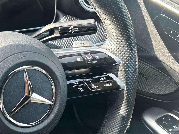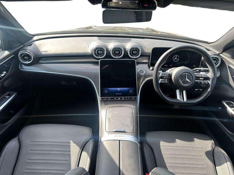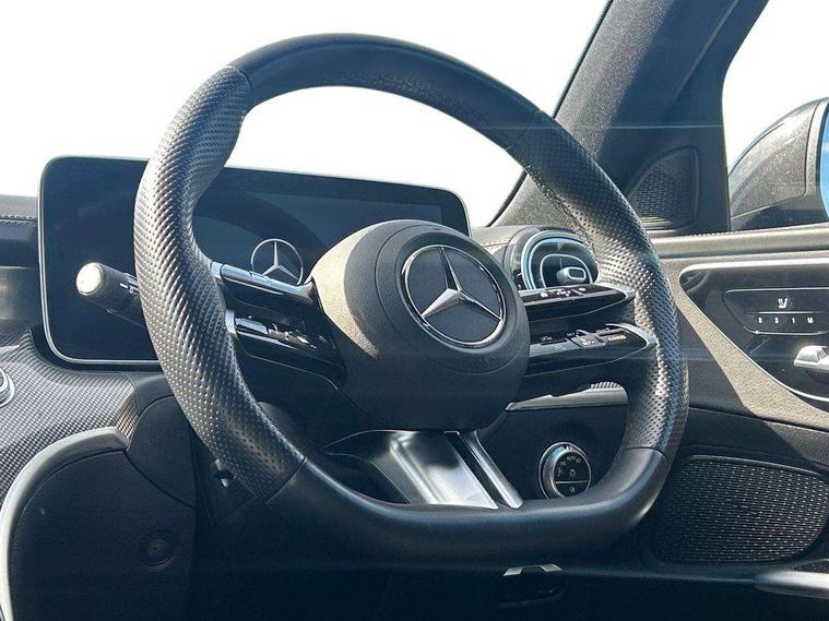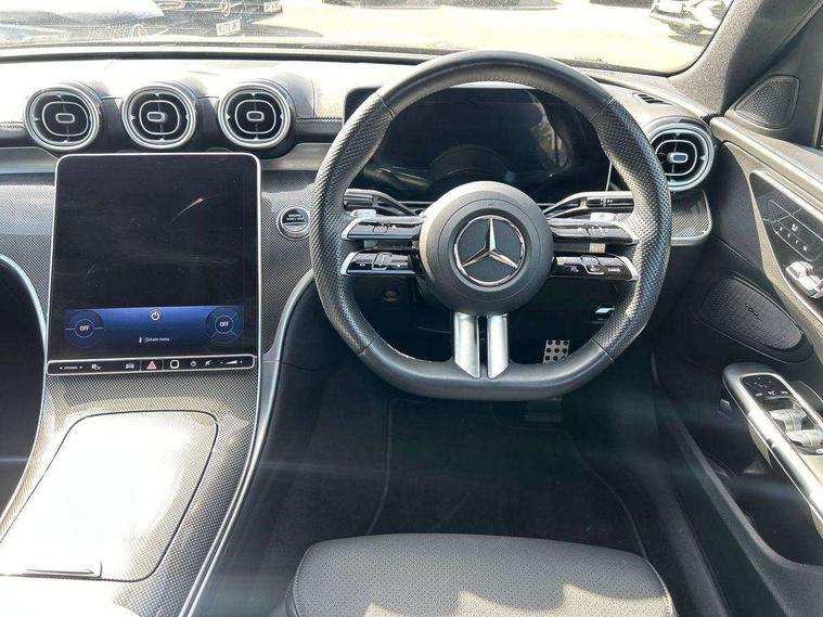 11.9" high resolution multimedia colour display, 12.3" digital instrument cluster display, Active lane keeping assist, Active parking assist with PARKTRONIC, Attention assist, Blind spot assist, Cruise control with speedtronic variable speed limiter, DYNAMIC SELECT with a choice of driving modes (Comfort, ECO, Sport, Sport+, Individual), E-call, Extended MBUX functions, Finger print sensor, Fluorescent jacket for driver, Hard disc navigation, MBUX navigation premium, Mercedes me remote services, Outside temperature gauge, Service indicator (ASSYST), Smartphone integration, Sports direct steer speed sensitive steering, Status display for rear seat belts in instrument cluster, Traffic sign assist, Wireless charging system for mobile devices, 9G TRONIC 9 speed automatic transmission, Petrol Particulate Filter, Sport suspension, DAB Digital radio, MBUX multimedia system, Adaptive brake lights, Adaptive high beam assist, AMG body styling front apron, rear apron and side skirts, AMG Line exterior, Body coloured bumpers, Body coloured door mirrors, Electric windows with one touch opening/closing and obstruction sensors, Electrically adjustable and heated door mirrors, Heat insulating dark tinted glass, LED daytime running lights, LED high performance headlamps, LED Indicators, LED tail lights, LED third brake light, Radiator diamond grille with integrated Mercedes Benz star and louvre silver with chrome pins, Rain sensor with automatic windscreen wiper activation, Rear boot, Rear side wing doors, Two visible exhaust pipes integrated into rear bumper, 3 seat bench in 2nd row, 40:20:40 split folding rear bench seat, Ambient lighting premium, Ambient lighting with projection of brand logo, AMG floor mats, AMG line interior, Artico man-made leather upholstery, Auto Mercedes-Benz child seat recognition sensor, Black roof liner, Double cupholder in centre console, Electrically height/reach adjustable steering column, Folding rear seat backrest, Front and rear head restraints, Gearshift paddles on steering wheel, Heated front seats, Illuminated door sills with Mercedes Benz lettering, Illuminated glove compartment stowage, Multifunction sports steering wheel in nappa leather, Rear top tether child seat ISOFIX attachment, Single front passenger seat, Sports seats, Sunvisors with illuminated vanity mirrors, THERMATIC 2 zone automatic climate control, Interior light package - C Class, Memory package - C Class, Mirror package - C Class, Parking package with reversing camera - C Class, Stowage space pack - C Class, USB package plus - C Class, 3 rear 3 point seatbelts, Active bonnet pedestrian safety measure which detects an impact and raises bonnet, Active brake assist, Adaptive brake system with HOLD function and brake drying in the wet, Anti-lock braking system (ABS), Black seat belts, Brake calipers with Mercedes-Benz lettering + perforated front brake discs, Child proof door locks, Drivers knee airbag, Drivers pelvis airbag, Dual stage driver/passenger airbags, Electric parking brake, Electronic Stability Programme (ESP), Front centre airbag between driver and front passenger seats, Front side airbags, Tyre pressure monitoring system, Warning triangle and first aid kit, Window airbags for driver, front passenger and rear passenger, Antitheft alarm system, Interior monitoring system and Increased antitheft protection, Central locking with interior switch, automatic locking and crash sensor with emergency opening function, Chrome surround electric key, Keyless Go, Urban guard vehicle protection plus, Dashboard, instrument panel and beltlines in ARTICO man made leather in nappa look, Metal structure trim element with centre console in metal structure finish, 18" AMG 5 spoke design aerodynamically optimised alloy wheels painted in tantalite grey with high sheen finish, TIREFIT with tyre inflation compressor,