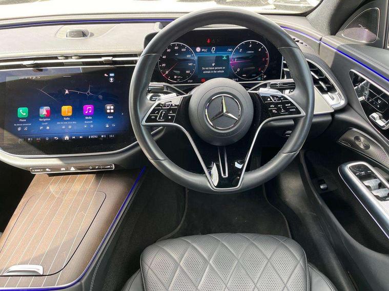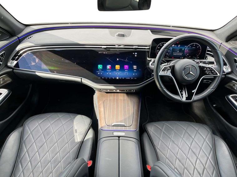 12.3" 3D driver display, 14.4" central media display, 5G Communications module, Attention assist, Augmented reality navigation, Blind spot assist, Brake wear warning display, Direct steer speed sensitive steering, ECO start/stop function, Emergency call assistance, Evasive manoeuvre support, Fluorescent jacket for driver, Hard disc navigation, Head up Display, MBUX Interior assistant, MBUX navigation premium, MBUX voice control, Mercedes connect me, Outside temperature display, Preinstallation for live traffic, Remote bootlid closing, Remote Services Premium, Selfie and video camera, Service indicator (ASSYST), Status display for rear seat belts in instrument cluster, Trip computer in multifunction display showing current fuel consumption, Wireless charging, Wireless smartphone integration with Apple CarPlay and Android auto, 48V Mild hybrid technology, 66 litre fuel tank, 9G TRONIC automatic transmission, Agility control suspension with selective damping and lowering, Bluetec emission control, Diesel particulate filter, Integrated starter generator Gen 2, Residual engine heat utilisation, Burmester 4D premium sound system, DAB Digital radio, Preinstallation for MBUX Entertainment Plus, Sound visualisation, 3rd brake light, Acoustic glass, Adaptive brake lights, Aerial integrated in rear window, Auto dimming driver's door mirror, Auto dimming rear view mirror, Black radiator grille illuminated with Mercedes-Benz start pattern, Digital air vent control, Electric folding door mirrors, Electric windows with one touch opening/closing and obstruction sensors, Electrically adjustable and heated door mirrors, Exclusive bodystyling including classic bonnet mounted Mercedes Benz star, Heat insulating privacy glass, LED daytime running lights, LED digital light including projection functions with adaptive highbeam assist plus, Panoramic sliding sunroof, Pre-installation for roof rail systems, Rear boot, Rear side wing doors, Surround lighting with logo projection, 3 seat bench in 2nd row, 4 way lumbar support, Active ambient lighting, AMG brushed stainless steel sports pedals with rubber studs, Automatic child seat recognition sensor, Central stowage compartment with USB socket for use with Android Auto and Apple CarPlay, Climatised front seats, Comfort seats, Courtesy lights in rear grab handles with reading light functionality, Exclusive interior, Folding rear seat backrest, Front centre armrest with stowage compartment, Glove compartment - lockable, air conditioned and illuminated, Head restraints for driver and front passenger (four-way adjustability) and in rear (two-way), Heated front seats, Illuminated door sills, Instrument panel and door beltlines in artico nappa leather, Multifunction steering wheel in nappa leather, Nappa leather upholstery, Roof liner in black fabric, Seat occupancy sensor for front passenger seat, Single front passenger seat, Sunvisors with illuminated vanity mirrors, Thermotronic 4 zone climate control, Velour floor mats, Energizing package - E Class, Keyless Go comfort package - E Class, Memory package - E Class, Parking package with 360 degree camera - E Class, USB plus package - E Class, 3x3 point rear seatbelts, Active bonnet pedestrian safety measure which detects an impact and raises bonnet, Adaptive brake system with HOLD function and brake drying in the wet, Anti-lock braking system (ABS), Automatic front passenger airbag deactivation, Central airbag, Childproof locks manually operated for rear doors and electrically operated for rear power windows, Driver and adaptive front passenger airbags, Electronic parking brake, Electronic Stability Programme, Hill start assist, ISOFIX child seat attachment points two outer rear seats, Knee airbags, Pedestrian protection, Pre-Safe anticipatory safety system, Tyre pressure monitoring system, Warning triangle and first aid kit, Window airbags, Alarm system with interior monitoring, Central locking with interior switch, automatic locking and crash sensor with emergency opening function, Dashcam, Digital vehicle key, Guard 360 degree vehicle protection plus, Increased anti theft protection, Urban guard vehicle protection plus, Open pore brown maple wood with aluminium lines centre console trim, 21" Exclusive multispoke alloy wheels, Noise reduced tyres, Summer tyres, Tirefit,