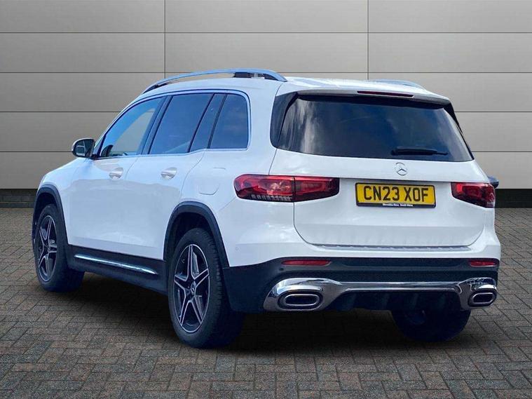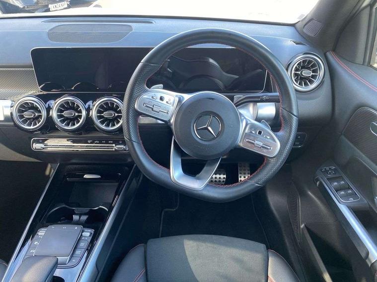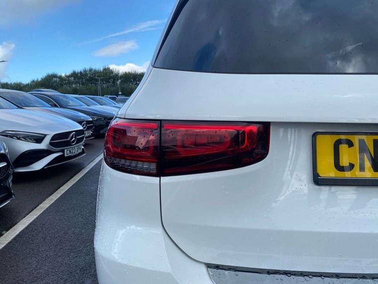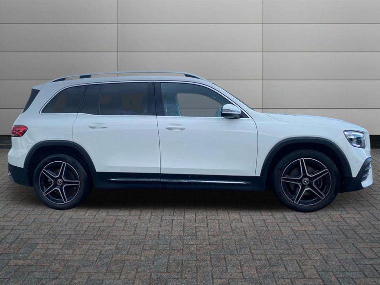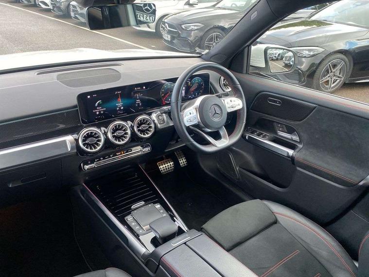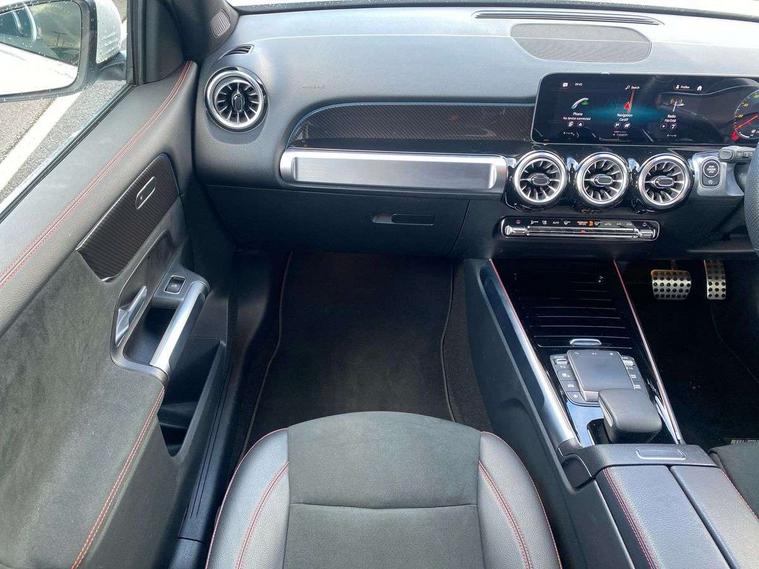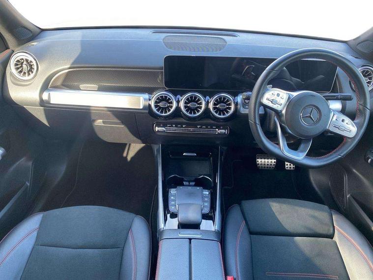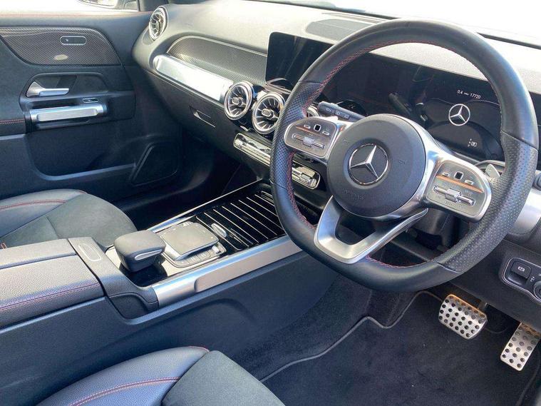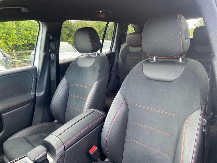 10.25" Digital instrument cluster display screen, 10.25" Digital media screen display, Active lane keeping assist, Attention assist - Monitors steering behaviour and long journey fatigue, Brake pad wear indicator warning light, Car wash mode, Cruise control with limiter, DYNAMIC SELECT with a choice of driving modes (ECO, Comfort, Sport and Individual), ECO start/stop function, Fluid level warning indicator for fuel, oil, coolant and washer fluid, Hard disk navigation, Hey Mercedes Voice activation, Lamp failure indicator, Mercedes me connect including emergency call system, accident recovery, breakdown and maintenance management, Mercedes me remote services, Outside temperature gauge, Owners manual and service booklet in English, Parameter steering system, Pre-installation of private car share, Preinstallation for parking damage notification, Radio aerial integrated into front and rear windshields, Service indicator (ASSYST), Speed limit assist, Trip computer in multifunction display with current consumption indicator, Comfort suspension, Rear axle multi-link, DAB digital radio tuner, MBUX multimedia system with DAB digital radio and touchpad including satellite navigation, Mercedes Benz sound system (100 W) with 6 speakers, Pre installation for Mercedes Benz Link, USB (type C) port in front stowage compartment, USB (type C) ports (2) in stowage compartment, Adaptive brake lights, Aerial for GPS, AMG bodystyling door panels black grained with chrome plated inserts, AMG bodystyling front apron with chrome splitter, AMG bodystyling rear apron with diffuser optics and chrome trim element, AMG specific front and rear bumper including underride guard in high gloss chrome, Beltline strips and weather strip in chrome, Body coloured bumpers, Body coloured door handles, Body coloured door mirror caps, Electric adjustable and heated door mirrors with integrated LED side indicators, Exhaust system with dual flow exhaust pipes (non-functional), Front and rear electric windows, Headlamp assist automatic headlamp activation, Heated glass rear windscreen + timer control, High level LED third brake light, Interior mirror with black reading lamps and frameless, LED high performance headlamps with integrated LED daytime running lights, LED tail lamp, Polished aluminium roof rails, Privacy glass with dark tinting on rear side windows and rear window, Radiator grille with pins in chrome and single louvre with chrome insert, Rain sensor windscreen wipers, Rear fog lamp, Rear side wing doors, Rear wiper, Two visible tailpipe trim elements exhaust, 3 seat bench in 2nd row, 3 spoke multifunction sport steering wheel in nappa leather, Air conditioning - Two zone thermotronic luxury automatic climate control with display, AMG sports pedals with brushed stainless steel surfaces and black rubber studs, Artico man-made leather/Microcut microfibre upholstery with red contrast stitching, Automatic child seat recognition sensor, Black floor mats with AMG lettering, Black roof lining, Fore/aft adjustment rear seats, Freight packaging with tie-down hooks, Front centre armrest with stowage, Front door sills with illuminated changeable cover, Front passenger grab handle with brushed side silver chrome, Front sports seats with adjustable head restraints, Galvanished gear shift paddles on steering wheel, Heated front seats, Height/reach adjustable steering column, Interior lighting - 64 colour Ambient lighting, Luggage net on driver/front passenger seat backrest, Net in front passenger footwell, Rear armrest with two integral cup holders for drinks, Rear seat easy entry, Single front passenger seat, Stowage compartment in centre console, Stowage compartment with retractable cover, Third row of seats for two people on rear seat, Touchpad on center console, Twin front cup holders, Two outer rear seat isofix and top tether child seat fixing points, Interior lighting with light and sight pack - GLB, Mirror pack - GLB, Parking pack - GLB, Seat comfort package - GLB, 3 rear 3 point seatbelts, Active bonnet pedestrain safety measure which detects an impact and raises bonnet by 65mm, Active brake assist includes forward collision warning system with autonomous braking, Adaptive brake assist with hold function and hill start assist, Airbags - kneebag for driver, Anti-lock braking system (ABS) with brake assist, Childproof locks manually operated for rear doors and electrically operated for rear power windows, Crash responsive emergency lighting, Curve dynamic assist, Driver and front passenger head and sidebags, Driver and front passenger windowbags, Dual stage driver and front passenger airbags, Electronic parking brake, Electronic stability programme with acceleration skid control, Front and rear seatbelt reminder, Front brake callipers with Mercedes Benz lettering, Front passenger seat occupancy sensor, Tyre pressure monitoring system, Warning triangle and first aid kit, Guard 360 degree vehicle protection - Anti theft alarm system, tow away protection with visual, acoustic warning and alarm, Interior monitoring system, KEYLESS-GO starting function, Remote central locking and crash sensor with emergency opening function, Thatcham category 1 alarm system with immobiliser and interior protection, Vehicle key with decorative surround in chrome, Black air vents with chrome surround, Carbon structure trim, 19" AMG 5 twin spoke light alloy wheels painted in high gloss black with high sheen finish, Summer tyres, Tirefit tyre sealant kit,