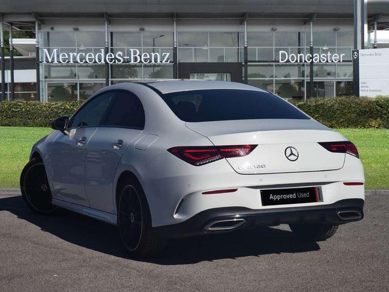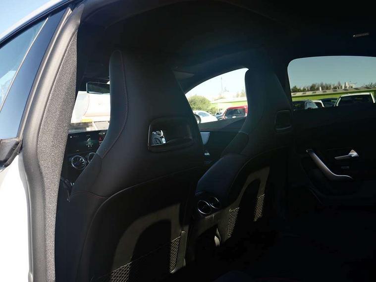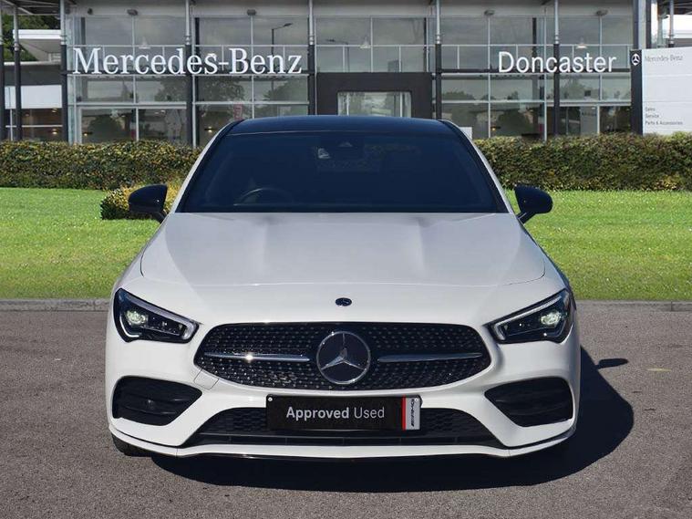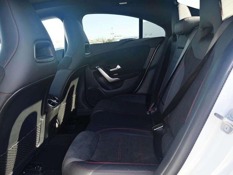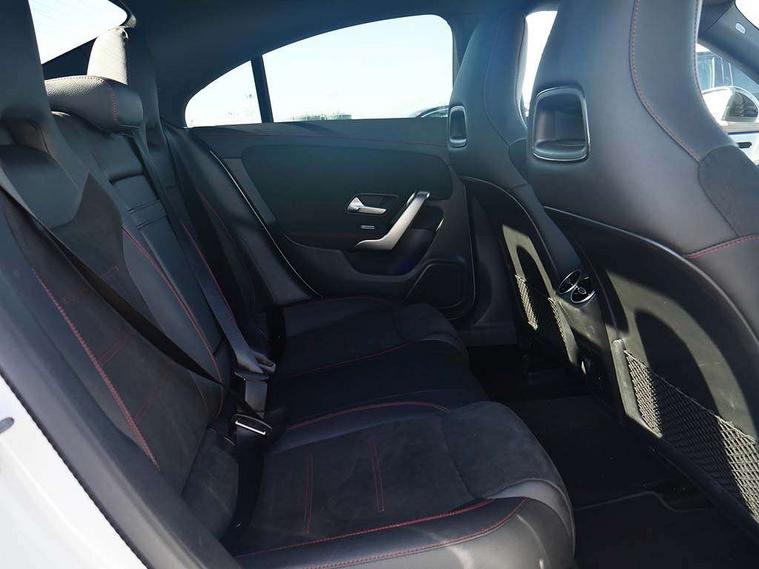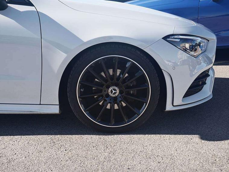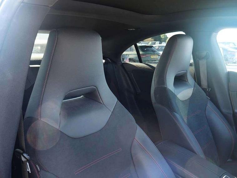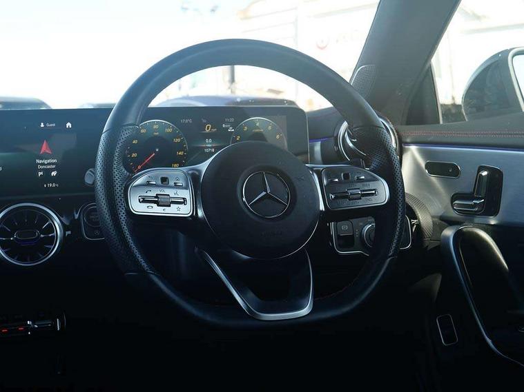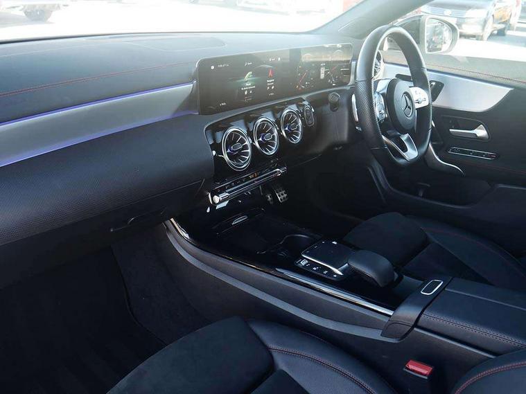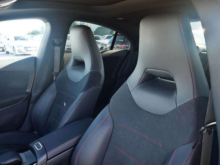 10.25 inch Instrument display with digital cockpit, 10.25 inch touchscreen central media display, Active lane keeping assist, Attention assist - Monitors steering behaviour and long journey fatigue, Bluetooth connection, Car wash mode, Cruise control with limiter, Direct steer system, DYNAMIC SELECT with a choice of driving modes (ECO, Comfort, Sport and Individual), ECO start/stop function, Fluid level warning indicator for fuel, oil, coolant and washer fluid, Hard-disk navigation, Hey Mercedes Voice activation, Lamp failure indicator, MBUX augmented reality for navigation, Mercedes me connect including emergency call system, accident recovery, breakdown and maintenance management, Mercedes me remote services, Outside temperature gauge, Owners manual in English, Pre-installation of private car share, Radio aerial integrated into front and rear windshields, Service indicator (ASSYST), Smartphone integration with Apple CarPlay and Android auto, Traffic sign assist, Trip computer in multifunction display with current consumption indicator, Wireless charging in the front centre console, Comfort suspension with ride height lowering, Rear axle multi-link, DAB digital radio tuner, MBUX multimedia system, Mercedes Benz advanced sound system (225 W) with 10 speakers, 1 central speaker, speakers on doors, a tweeter on door, one sub woofer + boost amplifier, Pre installation for Mercedes Benz Link, Adaptive brake lights, AMG body styling with AMG front apron and rear apron and visible exhaust tailpipe in chrome trim elements, Body colour door handles, Electric panoramic sunroof with automatic tilt and convenience closing fuinctions, rain sensor auto closing and electronic roller sunblind, Electric windows, Electrically adjustable and heated door mirrors with integrated LED indicators, Exhaust system with 2 Visible tailpipe trim elements and rear apron with trim in chrome, Hand free access, Headlamp assist automatic headlamp activation, Heated glass rear windscreen + timer control, High gloss beltline strips, High level LED third brake light, Integrated LED daytime running lights, Interior mirror with black reading lamps and frameless, LED tail lamp, Multibeam LED headlamps with adaptive highbeam assist plus, Privacy glass with dark tinting on rear side windows and rear window, Radiator grille with Mercedes-Benz pattern in chrome and central Mercedes star, single louvre in high-gloss black with chrome inserts, Rain sensing windscreen wipers with two sensitivity settings, Rear boot, Rear fog lamp, Rear side wing doors, Variable front intermittent wipers, 3 seat bench in 2nd row, 3 twin spoke flattened multifunction steering wheel in nappa leather - horizontal twin spoke in high gloss black, vertical twin spoke in silver chrome, 40:20:40 split folding rear seat backrests, Air conditioning - Two zone thermotronic luxury automatic climate control with display, Air vents with surround in silver chrome, Automatic child seat recognition sensor, Black roof lining, Brushed stainless steel sports pedals with rubber studs, Electrically adjustable front memory seats including 4 way lumbar support, Floor mats with stitched AMG lettering, Fluorescent jacket, Front centre armrest with stowage, Galvanished gear shift paddles in silver chrome, Heated front seats, Illuminated front door sills with Mercedes Benz lettering and changeable cover, Interior lighting - 64 colour Ambient lighting, Luggage net on driver/front passenger seat backrest, Manually height and reach adjustable steering column, Rear armrest with two integral cup holders for drinks, Rear head restraints, Single front passenger seat, Sport seats with fixed head restraints, Stowage compartment in centre console with retractable cover, Sunvisors with illuminated vanity mirrors, Twin front cupholders, Two outer rear seat isofix and top tether child seat fixing points, Keyless go comfort pack - CLA, Light and sight pack - CLA, Mirror pack - CLA, Night package - CLA, Parking pack with 360 degree camera - CLA, Seat comfort pack - CLA, USB package plus - CLA, Active bonnet pedestrain safety measure which detects an impact and raises bonnet by 65mm, Adaptive brake assist with hold function and hill start assist, Anti lock braking system (ABS) with brake assist, Black seat belts, Bonnet with power domes, Brake calipers with Mercedes-Benz lettering, Brake pad wear warning indicator, Childproof locks manually operated for rear doors and electrically operated for rear power windows, Crash responsive emergency lighting, Driver and front passenger head and sidebags, Driver and front passenger windowbags, Drivers knee airbag, Dual stage driver and front passenger airbags, Electric parking brake, Electronic stability programme with acceleration skid control, ESP curve dynamic assist, Exit warning, Front and rear seatbelt reminder, Front passenger seat occupancy sensor, Perforated front brake discs, Sports braking system, Three point rear seat belts, Tyre pressure monitoring system, Warning triangle and first aid kit, Alarm system with immobiliser and interior protection -Thatcham category 1, Guard 360 deg vehicle protection - tow away protection with visual, acoustic warning, interior monitoring, preinstallation for parking damage, Remote central locking and crash sensor with emergency opening function, Light aluminium with longitudinal grain interior trim, 19" AMG multi-spoke black painted light alloy wheels with high sheen rim finish, Summer tyres, Tirefit tyre sealant kit,