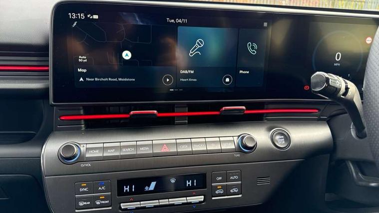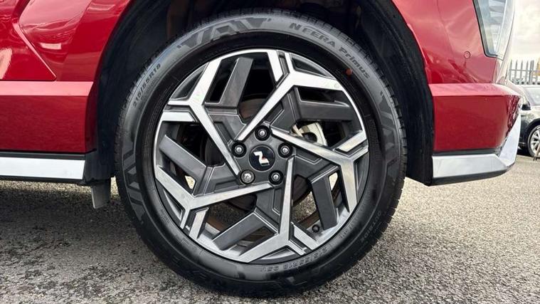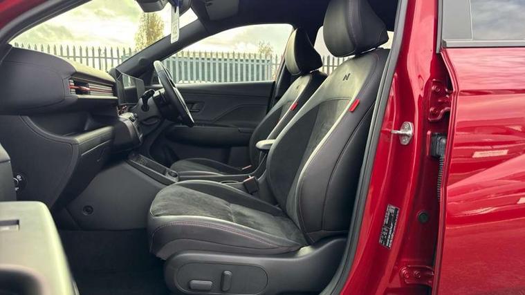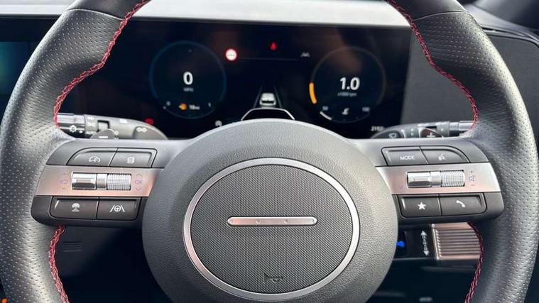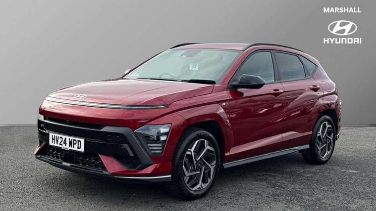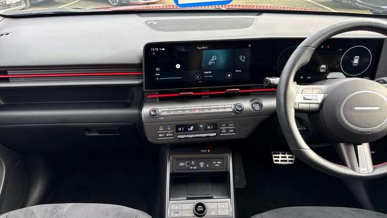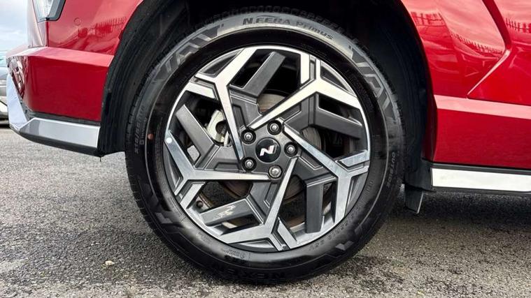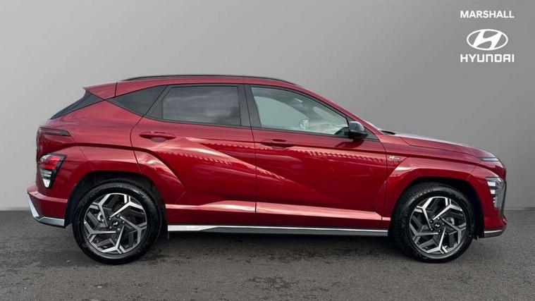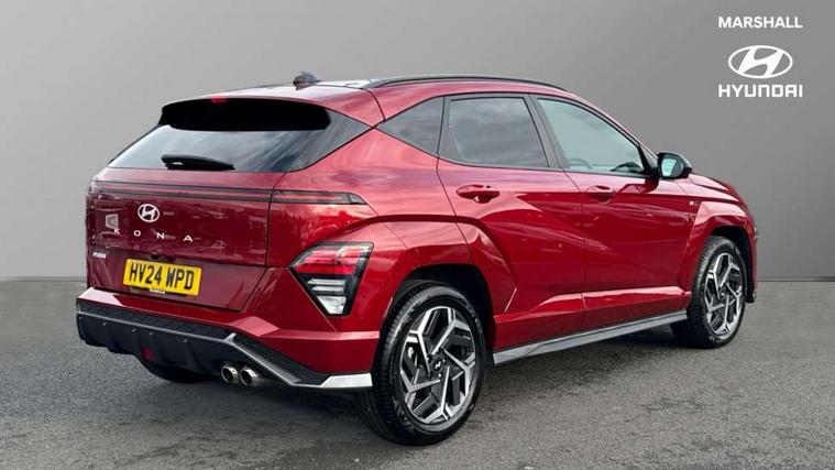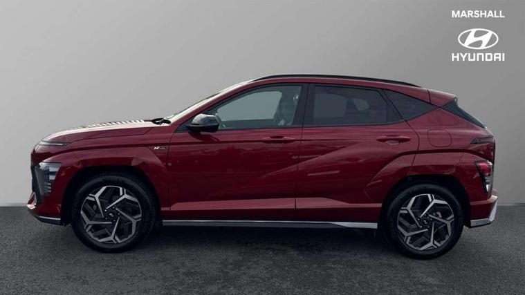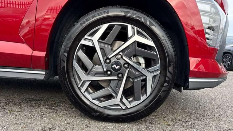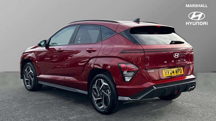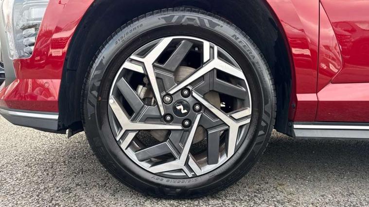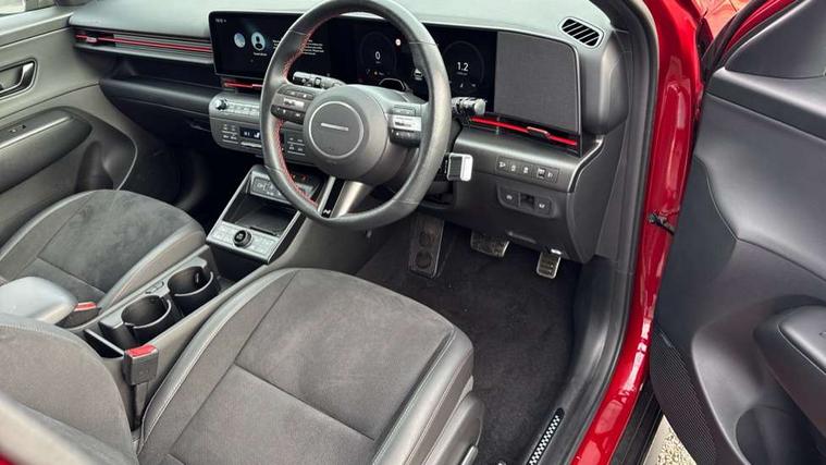 12.3" touchscreen centre console display satellite navigation with bluelink, live services and mapcare, Blind spot collision avoidance assist, Blind spot view monitor, Bluetooth connectivity with voice recognition, Digital clock, Driver status monitor (DSM), Driver supervision instrument cluster with 12.3" LCD display, eCall emergency call system, Feature on demand - Enabled, Forward collision avoidance assist (FCA 1.5) - Car, pededstrian, cycle and junction turning, Front parking sensor, HDA - Highway Drive Assist Level 1.5, Height adjustable power tailgate, Intelligent speed limit assist, Lane follow assist, Lane keep assist, Leading vehicle departure alert (LVDA), Parking Collision Avoidance Assist-Reverse (PCA-R), Parking distance warning - side, Parking system with rear camera and guidance system, PAS, Rear cross traffic collision avoidance (RCCA), Rear parking sensor, Roadside assistance, Safe exit warning (SEW), Smart cruise control with stop and go functionality, Surround view monitor, Windscreen washer fluid sensor and warning indicator, Wireless phone charging pad, Wireless Smartphone Integration includes Apple CarPlay and Android auto, 2 front USB C and 2 rear USB C charging points, Bose Premium Audio system with 7 premium speakers + subwoofer, DAB Digital radio, Steering wheel audio, phone and cruise controls, Auto dimming rear view mirror, Automatic headlights with dusk sensor, Automatic windscreen wipers with rain sensor, Body colour bumpers, Body colour exterior door handles, Body coloured wheel arch inserts, Door mirror LED indicator lights, Electric front windows with anti-trap mechanism and one touch control, Electric rear windows, Electrically adjustable and heated door mirrors, Gloss black door mirrors, Horizon centre LED DRL, LED projector headlights, LED upper and lower rear lights, Power folding door mirrors, Privacy glass - Rear windows and tailgate, Rear roof spoiler with integrated LED brake light, Rear side wing doors, Rear wiper, Roof rails, Solar glass with front door glass and windscreen, Tinted glass in front and rear doors, Windscreen auto defog function, 12V power outlet in front console, 2 zone climate control, 3 seat bench in 2nd row, 40/20/40 split folding rear seat, Adjustable head restraints, Aluminium pedals, Ambient lighting, Driver and passenger front seat pockets, Driver's seat electric adjustments, Driver's seat lumbar support, Driver/passenger sunvisors and illuminated vanity mirrors, Floor mats, Front passenger's seat electric adjustments, Heated front seats, Heated rear seats, Heated steering wheel, Height/reach adjustable steering column, Isofix rear child seat fastenings, Leather wrapped steering wheel, LED centre interior light, LED front interior light, Luggage compartment LED lighting, Luggage net, Luggage shelf, Metal paint effect interior door handles, N Line Alcantara/leather upholstery, Parcel shelf, Rear centre armrest, Rear centre console with air vents, Shift by wire SBW, Single front passenger seat, Ventilated front seats, Vertical adjustment rear head restraints, N Line exterior design pack - Kona, Trailer wiring package - Kona, Airbag - front, front side, curtain and centre front airbag, Anti-lock brake system (ABS), Childproof rear door locks, Downhill brake control, EBD + Brake Assist, Electric parking brake, Electronic stability control, Fasten seatbelt reminder, Fixed 3 point for second row centre passenger seatbelt, Front seatbelt pretensioners, Height adjustable front seatbelts, Hill start assist control (HAC), Passenger airbag deactivate switch, Rear seat alert, Traction control, Tyre pressure monitoring system, Alarm/immobiliser, Deadlocks, Folding key, Locking wheel nuts, Remote central locking, Smart key with keyless entry and engine start/stop button, Five year annual vehicle health checks, Temporary mobility kit (TMK),