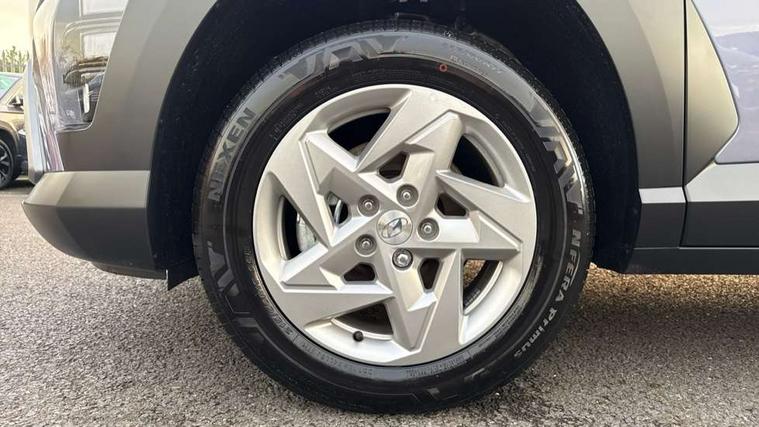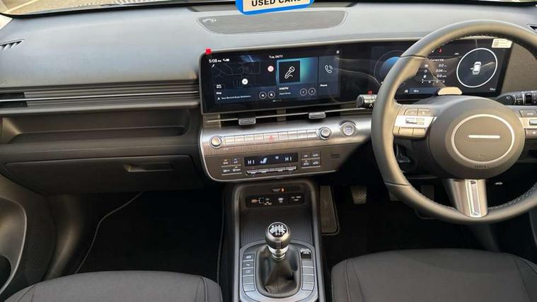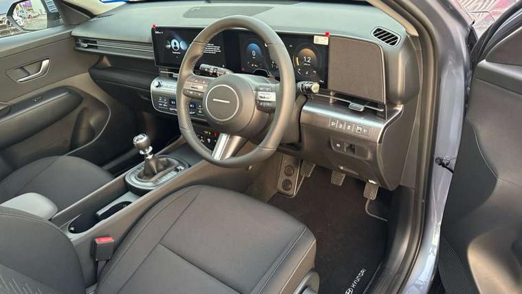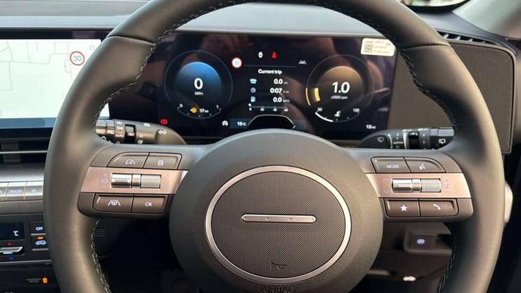 12.25" digital instrument cluster, 12.3" touchscreen centre console display satellite navigation with bluelink, live services and mapcare, Bluetooth connectivity with voice recognition, Cruise control, Driver status monitor (DSM), Driver supervision instrument cluster with 12.3" LCD display, eCall emergency call system, Feature on demand - Enabled, Forward collision avoidance assist (FCA 1.5) - Car, pededstrian, cycle and junction turning, Front parking sensor, Intelligent speed limit assist, Lane follow assist, Lane keep assist, Leading vehicle departure alert (LVDA), Parking system with rear camera and guidance system, PAS, Rear parking sensor, Rear view camera with dynamic guidelines, Roadside assistance, Wireless Smartphone Integration includes Apple CarPlay and Android auto, 2 front USB C and 2 rear USB C charging points, DAB Digital radio, Speakers - Front, rear and tweeters, Steering wheel audio, phone and cruise controls, Auto dimming rear view mirror, Automatic headlights with dusk sensor, Automatic windscreen wipers with rain sensor, Black painted wheel arch inserts, Body colour exterior door handles, Body coloured door mirrors, Door mirror LED indicator lights, Electric front windows with anti-trap mechanism and one touch control, Electric rear windows, Electrically adjustable and heated door mirrors, Full LED MFR headlights, LED daytime running lights, LED taillights, LED upper and lower rear lights, Power folding door mirrors, Rear roof spoiler with integrated LED brake light, Rear side wing doors, Rear skid plate - silver, Rear wiper, Roof rails, Tinted glass in front and rear doors, Windscreen auto defog function, 12V power outlet in front console, 2 zone climate control, 3 seat bench in 2nd row, Adjustable head restraints, Cloth upholstery, Driver and passenger front seat pockets, Driver's seat lumbar support, Driver/passenger manual seat height adjustment, Driver/passenger sunvisors and illuminated vanity mirrors, Floor mats, Height/reach adjustable steering column, Leather steering wheel, Leather wrapped steering wheel and gear knob, LED centre interior light, LED front interior light, Luggage compartment LED lighting, Luggage shelf, Metal paint effect interior door handles, Rear centre armrest with cupholders, Single front passenger seat, Vertical adjustment rear head restraints, Trailer wiring package - Kona, Airbag - front, front side, curtain and centre front airbag, Anti-lock brake system (ABS), Childproof rear door locks, Downhill brake control, Electric parking brake, Electronic stability control, Fixed 3 point for second row centre passenger seatbelt, Hill start assist control (HAC), Rear seat alert, Tyre pressure monitoring system, Alarm/immobiliser, Rear occupant alert, Remote central locking, Smart key with keyless entry and start/stop button, Five year annual vehicle health checks, 17" Alloy wheels, Temporary mobility kit (TMK),