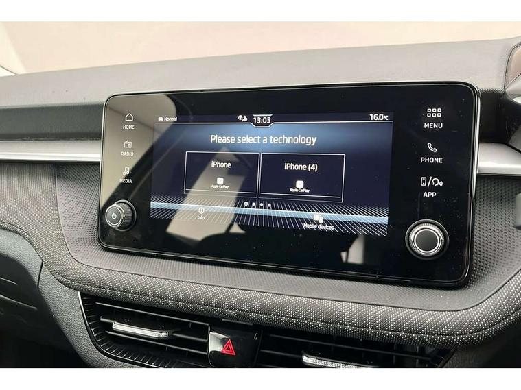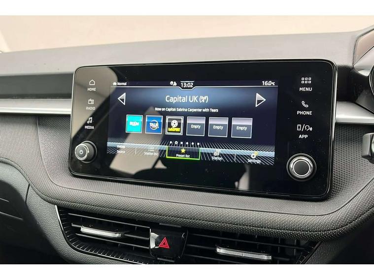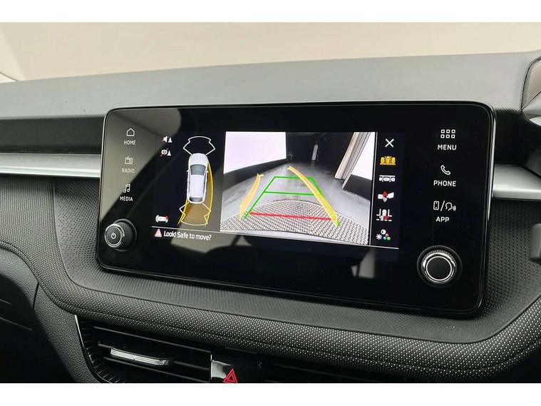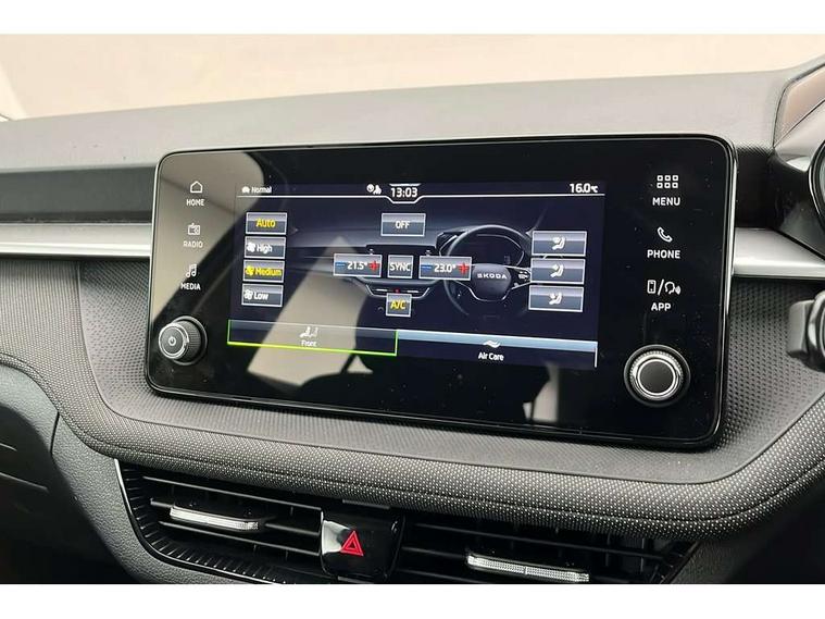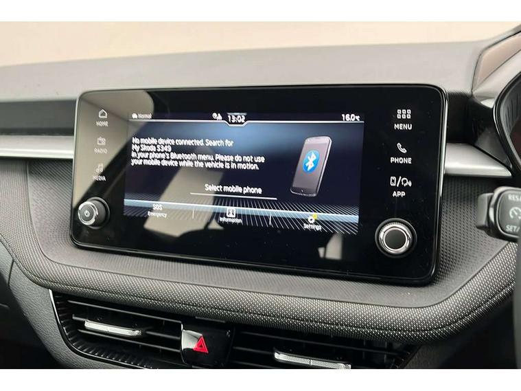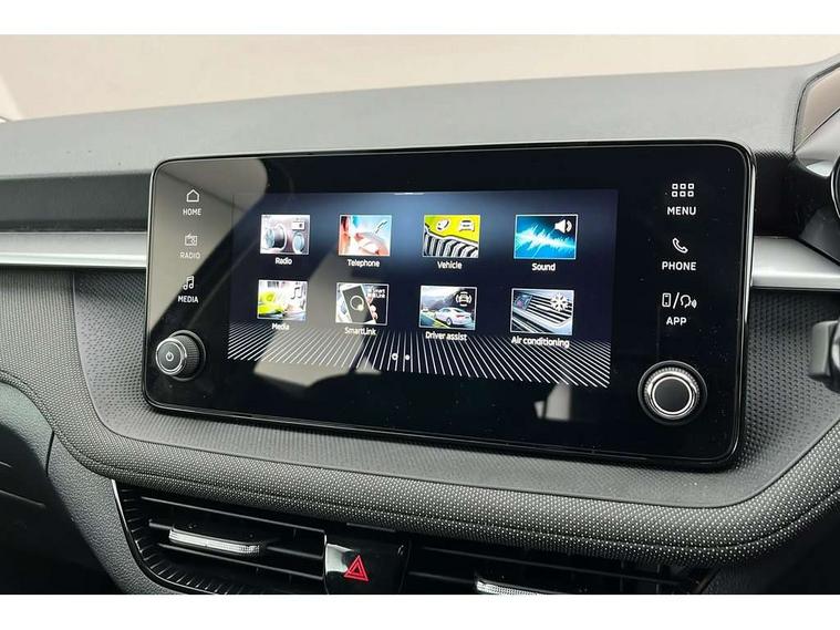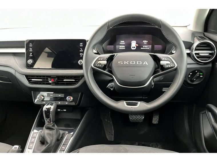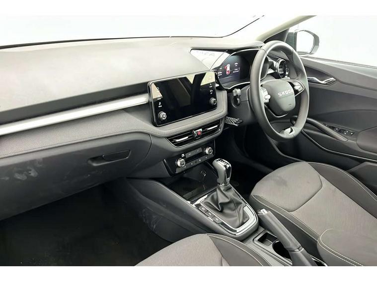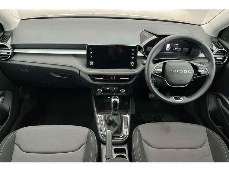 8" Digital instrument display, Advanced driver attention and drowsiness monitor, Bluetooth connection, Electromechanical power steering, Exterior temperature gauge, Service interval indicator, Traffic sign recognition, Wireless SmartLink for Apple CarPlay and Android Auto, 6 Speakers (4 in front and 2 in rear), 8.25" Skoda infotainment touchscreen display, Auxiliary socket for external MP3 player, DAB digital radio reception, Auto dimming rear view mirror, Body colour door mirrors, Body coloured bumpers, Door mirror integrated indicators, Front and rear electric windows, Front window wiper intermittent control, Headlight range control - Automatic, Ice scraper in fuel cap, LED 3rd brake light, LED daytime running lights with coming and leaving home feature, LED rear lights, Rear LED fog light, Rear side wing doors, Rear window wiper with washing nozzles, Roof mounted spoiler, SKODA tailgate lettering in chrome, Unique dark chrome design logo on alloy wheels, 2 reading lights in front and 2 reading lights in rear, 3 rear headrests, Backrest split and folding, Central console with removable cup holder and storage box, Chrome handbrake release button, Dual zone air conditioning with climatronic electronic control, Fabric upholstery, Front centre armrest, Gearshift knob/handle in leather, Grain satin black interior door handles, Hand brake lever handle in leather, Height adjustable front headrests, Height adjustable front seats, Height adjustable steering wheel, ISOFIX and TopTether anchorage points to the outer rear seats, ISOFIX and TopTether on the front passenger seat, Luggage compartment lighting, Manually adjustable lumbar support in front seats, Pollen filter, Rear seat bench unsplit, Single front passenger seat, Skoda lettering on steering wheel, Storm grey headlining, Sun visors with mirror and airbag label on passenger side, Textile floor mats, Ticket holder, Umbrella in drivers door, 3-point height adjustable front seats belts with pretensioner and force limiter, Automatic warning lights in case of crash, Driver and passengers airbag with switch off function, e-Call+, ESC including ABS, MSR, ASR, EDS, HBA and XDS, Front and rear seat belt warning, FRONT ASSIST (AEB City and AEB Inter Urban), Front side airbags, Head airbags, Hill hold control, One tone horn, Pedestrian protection, Three rear 3-points safety seat belts with pretensioner and force limiter including stop function for outer rear seat belts, Tyre pressure monitoring system, Anti-theft alarm system including immobiliser, interior monitoring, backup horn, and towing protection, Central locking with radio remote control, interior controls, SAFE function and 2 foldable keys, Black painted air vents, Grain satin black central console cover, Metallic grey upper decorative trim, Satin black door and side trim panel in front, Textile Kota grey lower decorative inserts, Anti-theft wheel bolts protection, Super-low rolling resistance tyres,