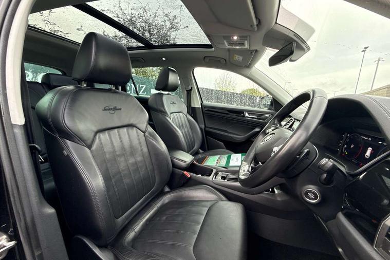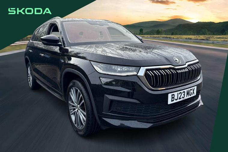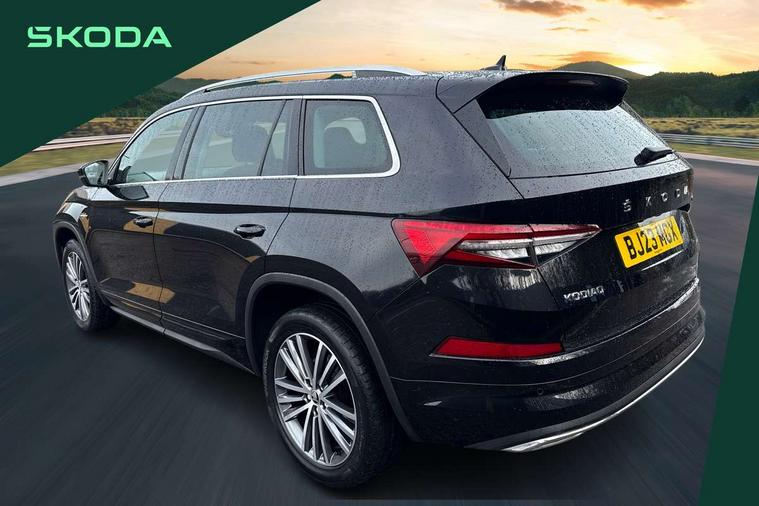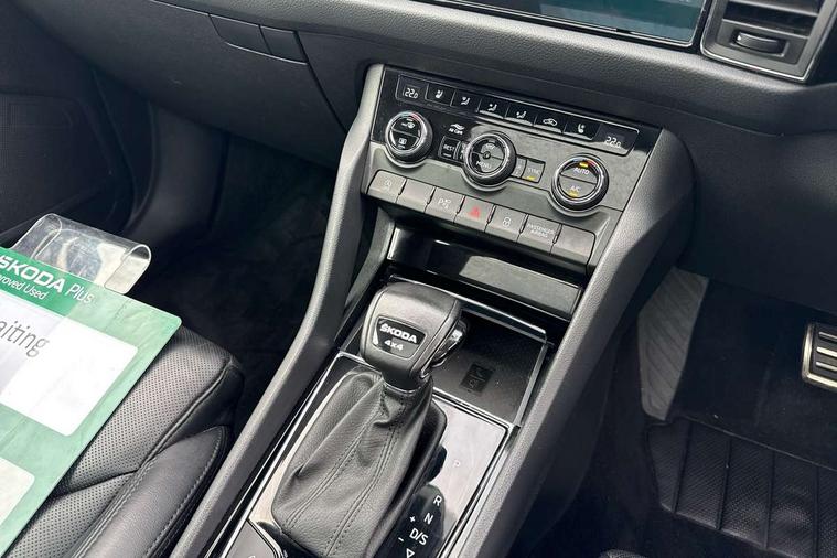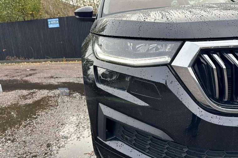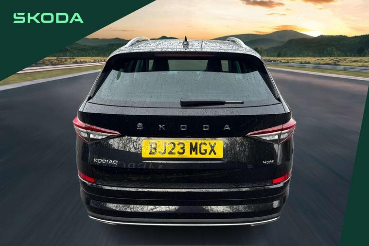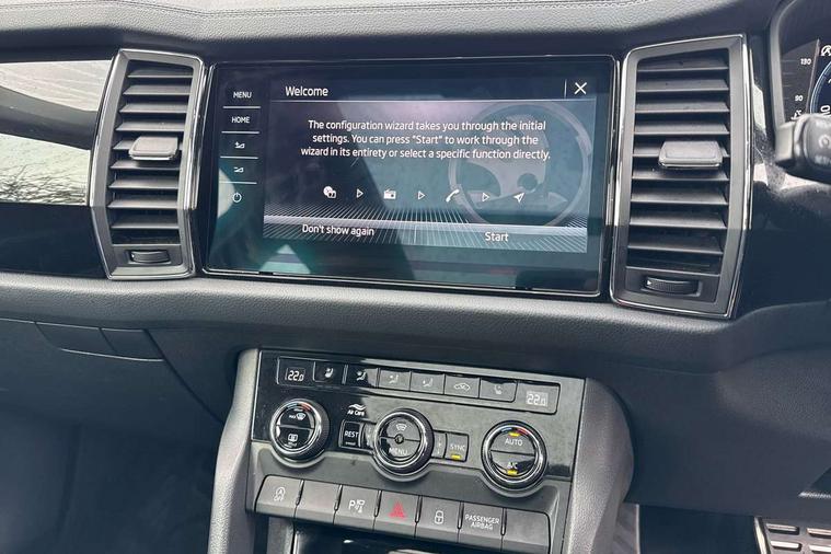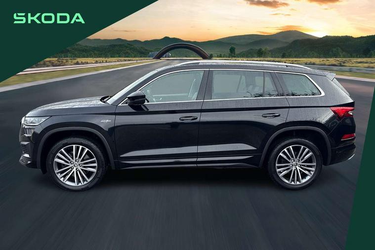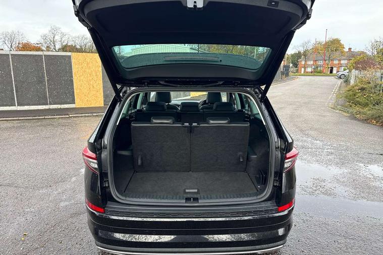 Area view, Blind spot detection system, Bluetooth system, Columbus satellite navigation with 9.2" touchscreen, integrated Wi-Fi, web radio, Digital voice enhancement, e call+, ECO Stop/start function, Exterior temperature indicator, Progressive steering, Smartlink wireless for apple carplay and wired for android auto, Speed limiter, Tailgate unlocking from outside, USB C Port x 2 in front centre console, Virtual Cockpit - 10.25" digital display, Wireless charging, Canton sound system, DAB Digital radio, Aero front windscreen wipers with intermittent function, Aero rear window wiper, Auto dimming rear view mirror, Black wheel arch surrounds, Body colour bumpers, Body colour door mirrors and handles, Body colour door panels, Chrome front grille, Chrome roof rails with chrome window surround, Electric adjustable/heated/folding door mirrors, driver side auto dimming with boarding sports and memory function, Electric front and rear windows, Extended rear spoiler with finlets in gloss black, Front fog lights, Full LED matrix headlights with AFS (adaptive front light system), cornering function and AWL (all weather lighting system), Headlight washers, Heated rear window, Invisible tailpipe, L&K front and rear bumpers including lower rear chrome strip, LED daytime running lights, LED rear fog light, LED third brake light in rear spoiler, Light assistant (coming/leaving home/tunnel light), Off-road style lower front bumper element, Panoramic sunroof, Privacy glass, Rain and light sensors, Rear LED lights (high functionality) with welcome effect and dynamic indicators, Rear side wing doors, Safety reflectors on front and rear doors, Window control switches with black trim, Without engine designation, 12V socket in boot, 2 rails with 2 hooks, 2 seat bench in 3rd row, 3 seat bench in 2nd row, 4 foldable roof handles with rear coat hooks, 60:40 foldable rear seat with sliding adjustment and backrest angle adjustment, Aluminium pedals, Bottle holders in door panel in the 1.5 litre front and 1 litre rear, Cargo storage compartments, Chrome headlight control button, Chrome interior door handles, Coat hooks on B pillar, Covered storage compartment on driver side, Decorative door sill covers, Front centre armrest with storage compartment, cup holder and 12V socket, Front courtesy lights, Gear shift lever with chrome frame and black gloss insert, Grey stitching in front and rear armrests and door armrests + door inserts, Height adjustable front headrests, Illuminated and cooled glovebox, Illuminated luggage compartment, Isofix child seat fittings in outer rear seats with top tether, Manually adjustable steering column, Net programme in boot (1x horizontal Net, 2x vertical Nets), Overhead glasses storage compartment, Pollen filter, Rear centre armrest with cupholders, Single front passenger seat, Sliding trunk cover, Small Bags on the inner sides of the front backrests, Sunvisors with illuminated vanity mirrors, Three rear height adjustable headrests, Ticket holder on A Pillar, Umbrella in door panel, Variable boot floor, LED Interior light pack - Kodiaq, Auto door release and activation of warning lights in the event of an accident, Child locks on rear doors, Driver and front passenger airbag with knee airbag and front passenger airbag deactivation, Electronic parking brake with hill start assist, Emergency rear braking signal, ESC (incl. ABS+MSR+ASR+EDS+HBA+DSR+RBS+MKB), Front assist with autonomous emergency braking, Front side airbags with curtain airbags, Fuel cut off safety device, Height adjustable front 3 point seatbelts + pretensioners, Hill hold control, Rear disc brakes, Safety vest holder in door, Seat belt reminder for all seats, Three point rear seat belts, Two tone horn, Tyre pressure monitor, Alarm with interior monitoring and tilt sensor with safe function, Anti-theft wheel bolts, Immobiliser, Keyless entry and start system (KESSY), Remote central locking with 2 keys, Grey stitching in dashboard, Piano black decorative inserts, Plaquette L&K front fenders, Temporary spare wheel (space saver),