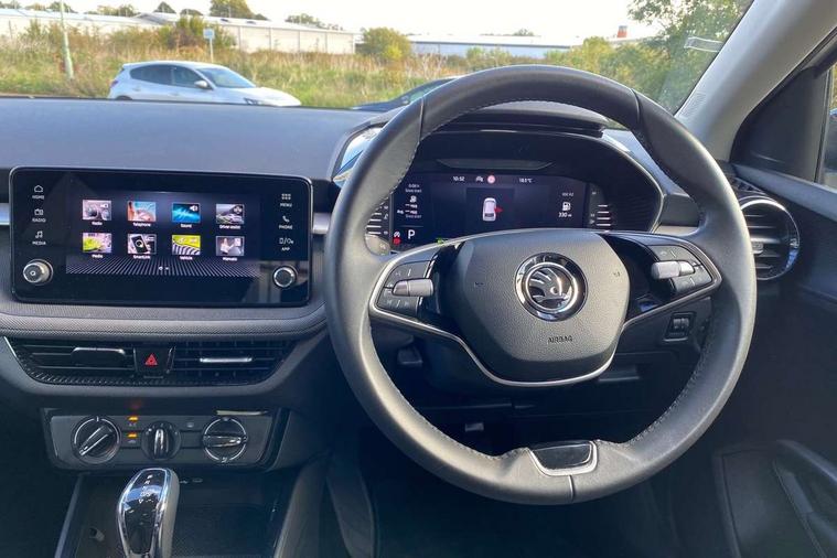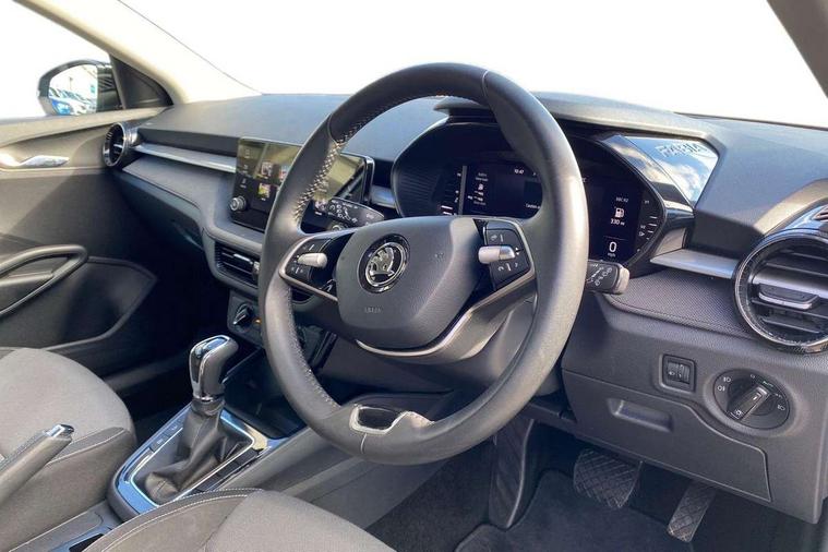 Advanced driver attention and drowsiness monitor, Bluetooth connection, Electromechanical power steering, Exterior temperature gauge, Service interval indicator, Traffic sign recognition, Virtual cockpit with 10.25" colour display, Wireless SmartLink for Apple CarPlay and Android Auto, 6 Speakers (4 in front and 2 in rear), Auxiliary socket for external MP3 player, DAB digital radio reception, Body coloured bumpers, Dimming rear view mirror with black frame, Door mirror integrated indicators, Front and rear electric windows, Front window wiper intermittent control, Headlight range control - Automatic, Ice scraper in fuel cap, LED daytime running lights with coming and leaving home feature, LED rear lights, Privacy glass, Rear LED fog light, Rear side wing doors, Rear window wiper with washing nozzles, Roof mounted spoiler, SKODA tailgate lettering in chrome, Third brake light, 2 reading lights in front and 2 reading lights in rear, 3 rear headrests, Backrest split and folding, Central console with removable cup holder and storage box, Chrome handbrake release button, Fabric upholstery, Front centre armrest, Gearshift knob/handle in leather, Grain satin black interior door handles, Hand brake lever handle in leather, Height adjustable front headrests, Height adjustable steering wheel, ISOFIX and TopTether anchorage points to the outer rear seats, ISOFIX and TopTether on the front passenger seat, Luggage compartment lighting, Manually adjustable lumbar support in front seats, Pollen filter, Rear seat bench unsplit, Single front passenger seat, Storm grey headlining, Sun visors with mirror and airbag label on passenger side, Textile floor mats, Ticket holder, Umbrella in drivers door, 3-point height adjustable front seats belts with pretensioner and force limiter, Automatic warning lights in case of crash, Driver and passengers airbag with switch off function, e-Call+, ESC including ABS, MSR, ASR, EDS, HBA and XDS, Front and rear seat belt warning, FRONT ASSIST (AEB City and AEB Inter Urban), Front side airbags, Head airbags, Hill hold control, One tone horn, Pedestrian protection, Three rear 3-points safety seat belts with pretensioner and force limiter including stop function for outer rear seat belts, Tyre pressure monitoring system, Anti-theft alarm system including immobiliser, interior monitoring, backup horn, and towing protection, Central locking with radio remote control, interior controls, SAFE function and 2 foldable keys, Colour Edition air vents, Grain satin black central console cover, Metallic grey upper decorative trim, Satin black door and side trim panel in front, Textile Kota grey lower decorative inserts, Anti-theft wheel bolts protection, Super-low rolling resistance tyres,