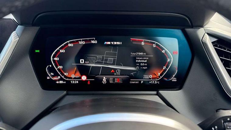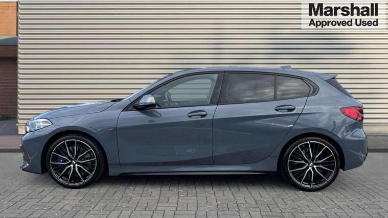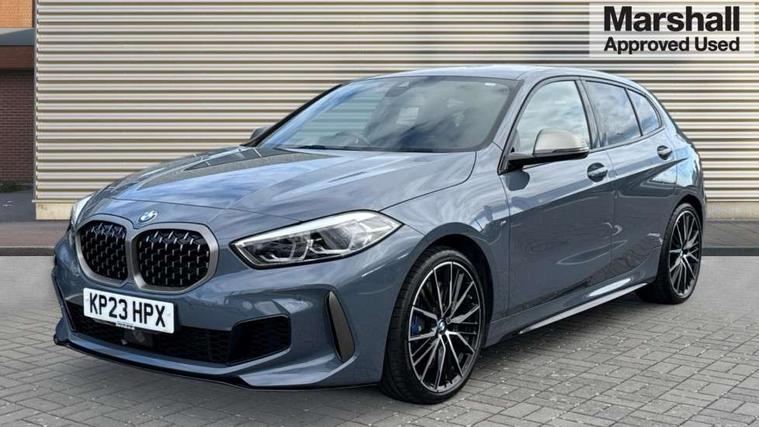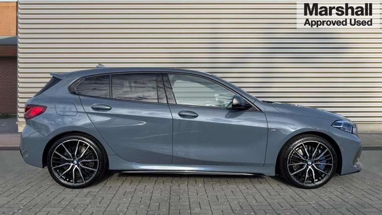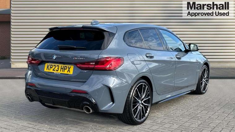 Active guard plus, Attentiveness assist, BMW ConnectedDrive online services, BMW Teleservices, Check Control warning system for monitoring of lights and door/luggage compartment open warning, Cruise control with speed limiter, Eco pro mode, Electric power steering, Electro hydraulically controlled multi-plate clutch transfers drive to rear axle and with power take-off device located on the front differential., Energy efficient operating strategy, Front axle single joint with specific axle kinematics to minimise drive influences on steering + provide increased rigidity agile driving behaviour, Gearshift time display in manual mode, Integrated owners handbook, Lane departure warning system, M Sports steering with M135i xDrive specific settings, Oil sensor for level and grade, On board computer, Optimum shift indicator, Personal Profile, Pull away assistant, Rigidly mounted rear subframe - Multi link construction with separate spring / damper configuration and excellent driving characteristics, Speed limit Info including no-overtaking indicator, Sporty fast gear shifting in sport mode, Aluminium lightweight construction, Anti roll bar front and rear, Balancer shaft, Double VANOS, Drive Performance Control, Eight speed sport automatic transmission with gearshift paddle switches, Electronic differential lock, Electronic selector lever, Engine cover with M performance designation, High precision injection, Larger fuel tank capacity (50 litres), Launch control, M135i specific heavily de-throttled engine intake air guide, M135i specific high-performance cooling package, M135i specific larger turbocharger with integrated divert-air valve, Petrol Particulate Filter, Twin tube gas filled shock absorbers with degressive characteristic curve, VALVETRONIC engine management, Variable, stepless and infinitely adjustable distribution of drive torque between the front and rear axles, xDrive intelligent all wheel drive with M135i specific reinforced components, DAB Digital radio, Auto dimming rear view mirror, Automatic headlight beam throw control, Automatic windscreen wipers and automatic headlight, Body colour door handles, Body colour roof trims, Cerium grey exterior mirror caps, Direction indicator side lights in exterior mirrors, Electrically adjustable exterior mirror with mirror adjustment switch on drivers armrest and aspheric on driver side, convex on passenger side, Exhaust tailpipe, Cerium Grey with bevelled finish - twin, round 100mm, left and right split, Fading support, Folding side mirrors with auto dimming/folding wing mirrors with auto dimming, Follow me home headlights, Front and rear bumper system with replaceable deformation elements, Front and rear electric windows with open and close fingertip control, anti trap facility and comfort closing, Front door sill finishers with M135i designation, Green tinted heat protection glazing, High gloss shadowline window frame, Recess cover mirror frames and B/C pillar embelisher trim, High level third brake light, Integrated front windscreen with washer jets, Kidney grille frame in Cerium Grey with Mesh design, LED daytime running lights, LED eyebrow turn indicators, LED front fog lights, Lightweight engineering, M logo designation side in cerium grey, M Performance exhaust system with valve control and minimised exhaust back pressure, M Performance specific setup, M Sport spoiler, Matt black air guide grilles, Matt black wheel arch trim, Model designation on electric bootlid includes xDrive designation for M135i xDrive, Nearside reverse light in rear light cluster, Preparation for high beam assistant, Rear fog lights, Rear side wing doors, Rear window wiper, Reinforced crank drive, new pistons and adapted con rods, Shark fin antenna, Trailer stabilisation logic, Visible VIN plate, Welcome lighting, 12V power socket in front centre console with blanking plug, 3 rear seat head restraints, 3 seat bench in 2nd row, 3 spoke sports leather steering wheel with black leather and stitching, pearl chrome decorative finish, specific M Badge, Anthracite headlining, Black boot net with lashing eyes, Cargo function on 2nd seat row, Child seat ISOFIX attachment for two outer rear seats and front passenger seat with anchorage points, Conditioned based service, Driver and front passenger backrest net on rear, Driver and front passenger seat heating, Driver side folding compartment in instrument panel, Folding rear clothes hook, Four grab handles integrated in roof lining, Front and rear door pockets with bottle holders, Front and rear side armrest integrated into door trim, Front armrest, Front M sports seats, Glove compartment, Height adjustable front head restraints, Luggage compartment for bag hooks on left and right, foldable luggage compartment liner and four lashing eyelets, Manual adjust steering wheel, Multi-function controls for steering wheel, Single front passenger seat, Storage compartment in centre console, Storage compartment in luggage compartment, Stowage of the parcel shelf in luggage compartment trim, Sun visors with vanity mirrors and insert tab, Two front centre console cupholders, Two zone automatic air conditioning, Type C two USB ports in rear centre console, Velour floor mats, Additional interior lighting pack - 1 Series M135i, BMW live cockpit professional pack- 1 Series, Connected pack professional - 1 Series, Interior lights pack - 1 Series, M Sport exterior styling aerodynamics pack - 1 Series 135i, 2 tone horn, 3 point seatbelts on all seats, front pyrotechnic belt tensioners, stopper and belt force limiters, rear coded belt buckles, Airbags - Front driver/passenger, front and rear curtain head protection, front side, manual deactivation of front passenger airbag, Anti lock braking system (ABS) with brake assist, BMW emergency call, Brake drying, Braking readiness, Child proof locking system in rear door, City braking function, Comfort modes, Cornering brake control, Crash sensor activating of airbags, Unlocking doors, hazard warning 