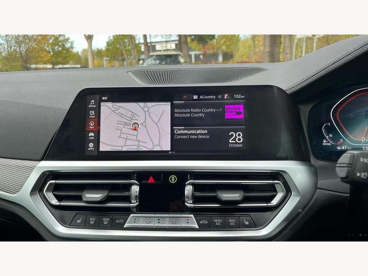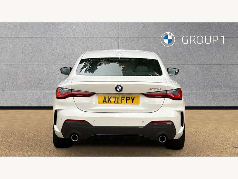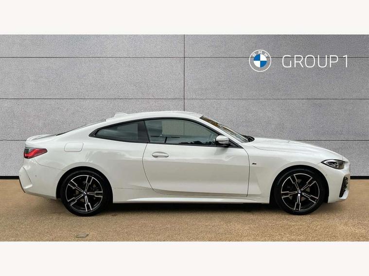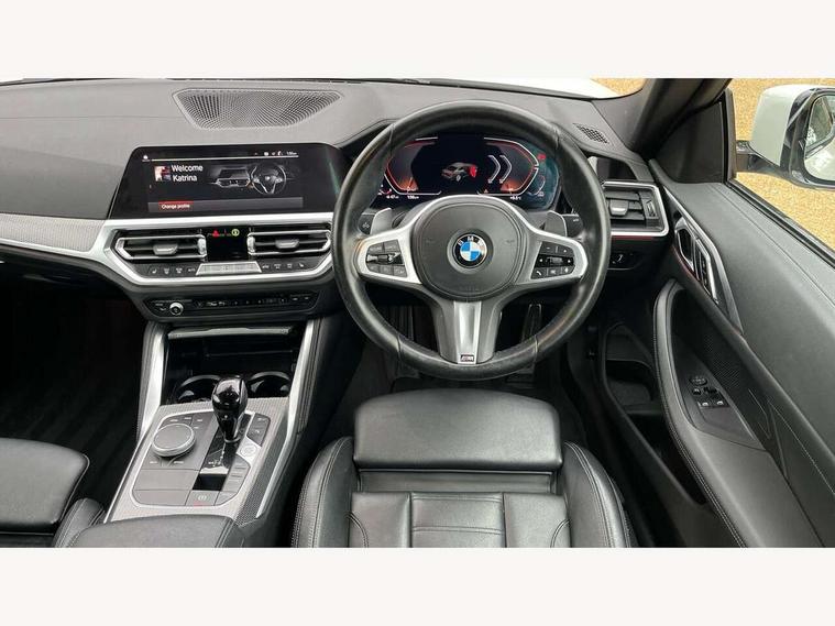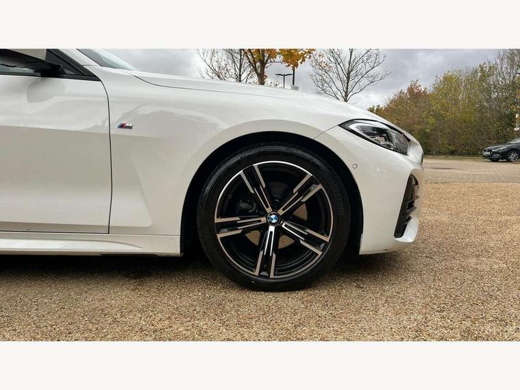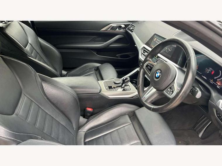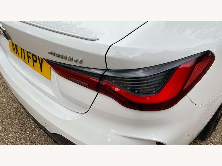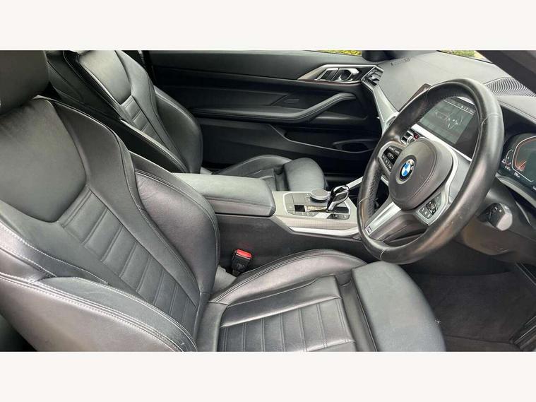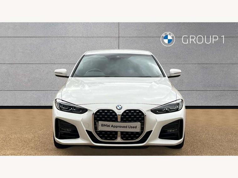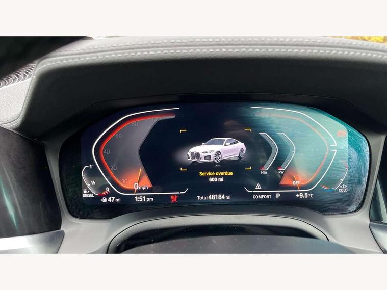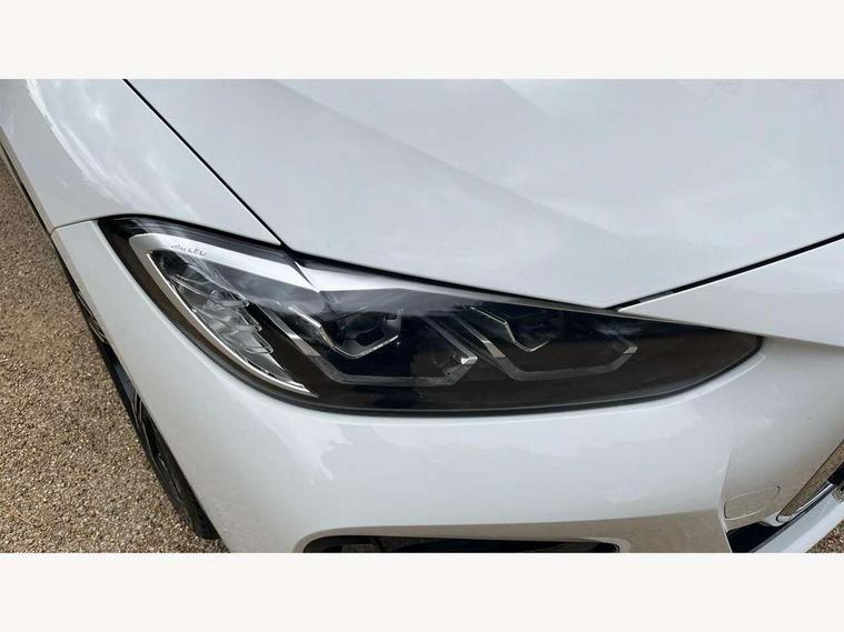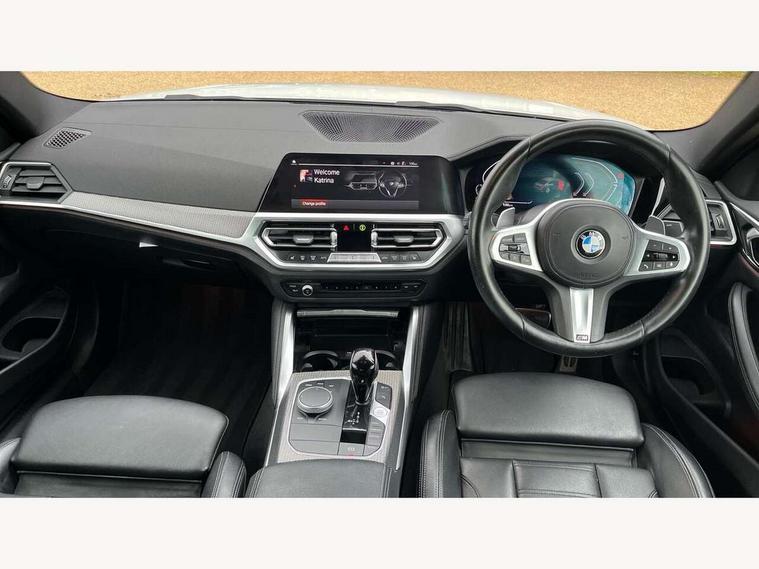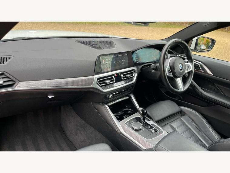 Active guard plus, Attentiveness assist, Auto start-stop, Bluetooth hands free facility with USB audio interface with audio streaming, BMW ConnectedDrive online services, BMW iDrive controller on centre console, BMW Live Cockpit Professional Nav with 12.3" instrument display + 10.25" display, Intelligent Voice Assist, BMW OS 7, HDD, 2USB, 4G LTE connect, BMW service history, BMW Teleservices, Brake pad wear indicator in front and rear, Check Control warning system for monitoring of lights and door/luggage compartment open warning, Condition based service, Cruise control with brake assist, Electric power steering with Servotronic steering optimised at all speed ranges, Gearshift time display in manual mode, Instrument cluster with speedometer with mph readout, tachometer, fuel gauge and oil temperature gauge, Integrated owners handbook, Oil sensor for level and grade, warning by check control system, On board computer - average speed, fuel consumption, outside temp display with acoustic warning, clock/date, service interval, odometer/trip meter, Optimum shift indicator, Reverse Assistant functionality for BMW Live Cockpit Professional Nav, Touch control functionality for BMW Live Cockpit Professional Nav, Variable sport steering, 48V Mild hybrid technology, 8 speed automatic steptronic transmission with gearshift paddles, Balanced 50/50 weight distribution, Diesel particulate filter, Drive performance control - ECO PRO, comfort and sport modes, Incorrect fuelling protection, Low centre of gravity, M sport suspension, Stroke dependent dampers, DAB tuner, Electronic service booklet, 3rd brake light, Acoustic glazing, Automatic headlight beam throw control with load dependent regulating reaction, dynamic compensation of braking dive and acceleration squat, Automatic windscreen wipers and automatic headlight, Automatically dimming electrochromatic rear view mirror, BMW emblem on engine compartment lid and tailgate, BMW kidney grille with mesh grille front side of the nuggets in matt aluminium and frame in chrome high gloss, Body colour fuel filler flap, Body colour M sport rear spoiler, Body colour roof fin, Brushed aluminium inserts in the front door sill finishers with BMW designation, Daytime running lights, Dynamic brake lights, Electric windows - front and rear, with open/close fingertip control, anti trap facility and comfort closing function all round, Exhaust tailpipe - split left and right, Exterior mirrors - electrically folding with anti-dazzle, Fading support, Front and rear bumper system, Front apron plastic in body colour, Green tinted heat protection glazing, High gloss shadow line exterior trim, Illuminated bow type door handles in body colour drivers side with door lock, Interior rear view electrochromatic mirror with automatic anti dazzle function, LED front fog lights, Licence plate panel integrated into front bumper and tailgate, Lightweight engineering, M designation on front side panels, left and right, Model designation on right side of tailgate, One piece front bumper cover including towing eye cover in body colour, Preparation for high beam assistant, Rear boot, Side frame decorative moulding black matt, Two part LED tailights in L-shape with components in smoked glass, brake light, LED turn indicator and rear fog light, Visible VIN plate, Welcome lights in interior and door handle area, Widened track and increased camber values for max transverse dynamics, agility and steering precision, Window recess cover black high gloss, Windscreen wipers with integrated washing jets, 12V power socket in front centre console, 2 front cupholder in centre console with clamping elements and matt black inlay, 2 Rear seat headrests, 2 seat bench in second row, 3 spoke M sport leather multifunction steering wheel, 3 zone automatic air conditioning, 4 pieces lashing eyelets in luggage compartment, 40:20:40 split folding rear seat and rear centre armrest with two cupholders, Ambient lighting with welcome carpet light, Anthracite headlining, Armrest integrated in front and rear door trim + front centre console armrest, Four grab handles integrated in roof lining, Front and rear door exit lighting (left / right), Front and rear door pockets, Front and rear footwell lights, Front and rear reading lights, Front headrests, Front passenger seat, Front seat backrest width adjustment, Front sport seats, Heated driver and front passenger seats, Height adjustable mechanically and infinitely variable steering column, Illuminated armrest storage compartment, Illuminated glove compartment with separate small compartment, Luggage compartment light, Make-up mirror lights, Storage compartment in rear centre console, Sunvisors with vanity mirrors and ticket pocket, Toolkit located in luggage compartment, Velour front floor mats, Vernasca leather upholstery, Connected professional package - 4 Series, M sport exterior styling pack - 4 Series, Park assist pack - 4 Series, 2 x 3-point rear seatbelts, Battery safety cut-off, BMW emergency call, Brake energy regeneration, Braking pre-tensioning, Child seat ISOFIX attachment for the two outer rear seats, Coasting in idle in ECO PRO mode, Cornering brake control (CBC), Crash sensor activating of airbags, Unlocking doors, hazard warning lights, interior light, safety battery terminal, Driver and front passenger side airbags, integrated in the door side seat backrest bolsters for all seat variants, Driver/Front Passenger airbags, Dry braking, Dynamic brake control, Dynamic stability control + (DSC+) - Anti-lock Braking System (ABS) with brake assist and cornering brake control + Automatic Stability Control (ASC), Dynamic Traction Control - DTC, Electric parking brake including automatic hold function and automatic release of the parking brake when driving off, Electronic differential lock control (EDLC), Front and rear ventilated brake disc, Front passenger manual airbag deactivation, Head airbags for all 4 outer seats, Hill start assistant, Seat belt security che