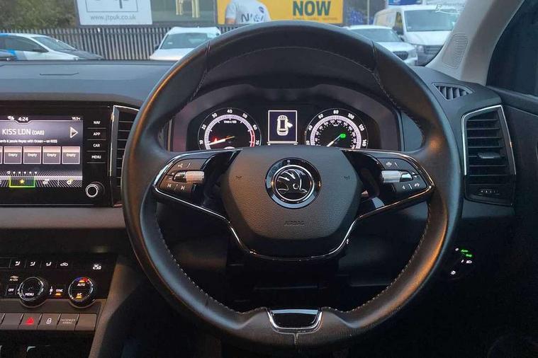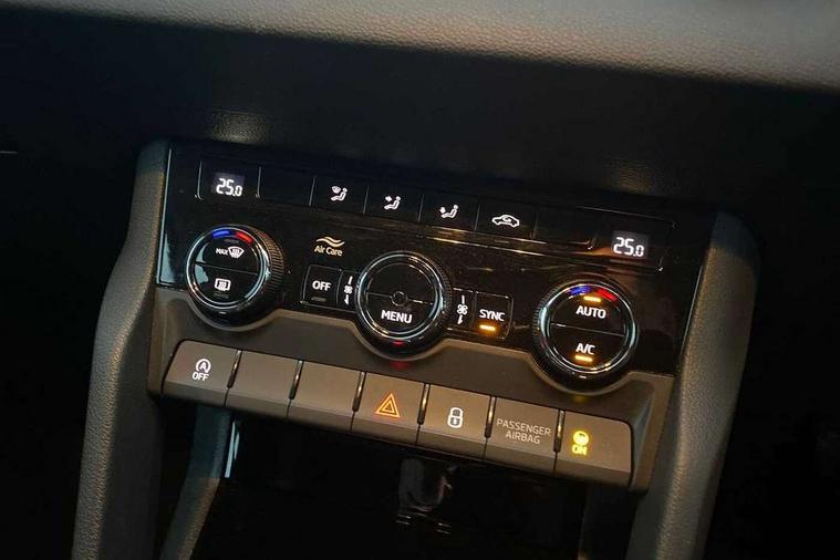 Care connect, Driver alert system, Driver fatigue sensor, Driver profile selection, Electro-mechanical PAS, Outside temperature gauge, Service interval indicator, SmartLink + wireless for Apple and wired for Android, Start/stop system with regenerative braking, USB C Port x 2 in front centre console, WLAN, DAB radio with Bluetooth, USB connection, Acoustic glass, Aero front windscreen wipers with intermittent function, Automatic headlight control system, Black electric window control buttons, Body colour door mirrors and handles, Body coloured bumpers, Electric front and rear windows with child proof lock, Electrically adjustable heated folding and auto dimming door mirrors, Heated rear windscreen, LED rear lights with high functionality, Light assistant (coming/leaving home/tunnel light), Privacy glass, Safety reflectors on front doors, Third brake light, 1.5 litre bottle holders in driver and front passenger door panels, 12V socket in boot, 12v socket in front centre armrest with storage compartment and rear air vents, 2 Folding hooks and nets in boot, 2 Front readings lights for driver and passenger, 3 rear height adjustable headrests, 4 foldable roof handles with rear coat hooks, 4 lashing points on luggage floor, Backrest release, Cargo elements in boot, Chrome inner door handles, Driver and passenger seats height adjust, Folding tables on the front seat backrests, Front head restraints, Front seat and rear pockets, Height adjustable front three point seats belts with tensioners, Height/reach adjust steering wheel, Ice scraper, Illuminated and cooled glovebox, Illuminated luggage compartment, Isofix child seat preparation outer rear, Manual lumbar support for front seats, Net programme in boot, Pen holder, Pollen filter, Rear boot cover, Rear reading lights, Rear seats fixed folding and divided 60:40, Safety vest holder, Seatbelt reminder signalisation and pretensioner for all seats, Storage box in upper central dashboard closed, Sunvisors with illuminated vanity mirrors, Umbrella under passenger seat, Airbags - Front side, head, knee and curtain, Automatic door unlocking in case of crash, Automatic fuel cut off in case of crash, Driver airbag, Electronic parking brake with auto hold function, Emergency rear braking signal, ESC including ABS, MSR, ASR, EDS, HBA, DSR, RBS, MKB and traction control, Front assist radar scanning of the space in front of the car with automatic braking, Hill hold control, Passenger airbag with switch-off function, Pedestrian monitor, Three point seatbelts rear, Two tone horn, Tyre pressure display, Tyre pressure monitor, Alarm with interior monitoring, back up horn and tilt sensor with safe function, Electronic engine immobiliser, Remote central locking with 2 remote folding keys, Chrome framed air vents, Storage on wheel cover,