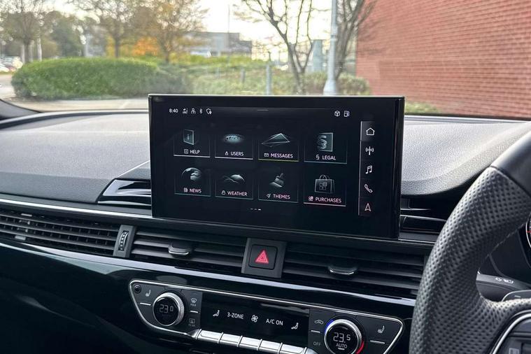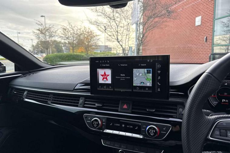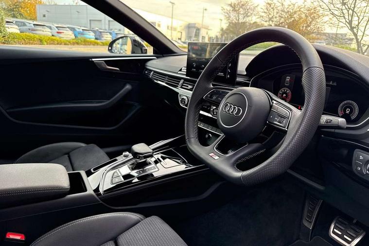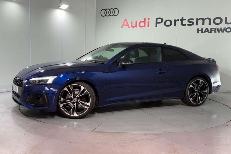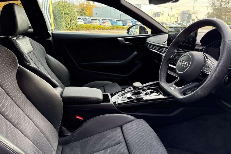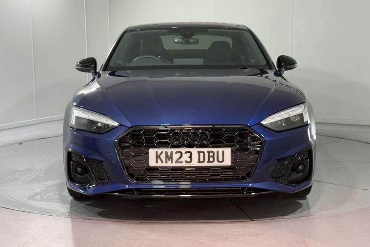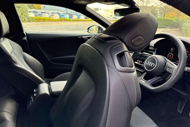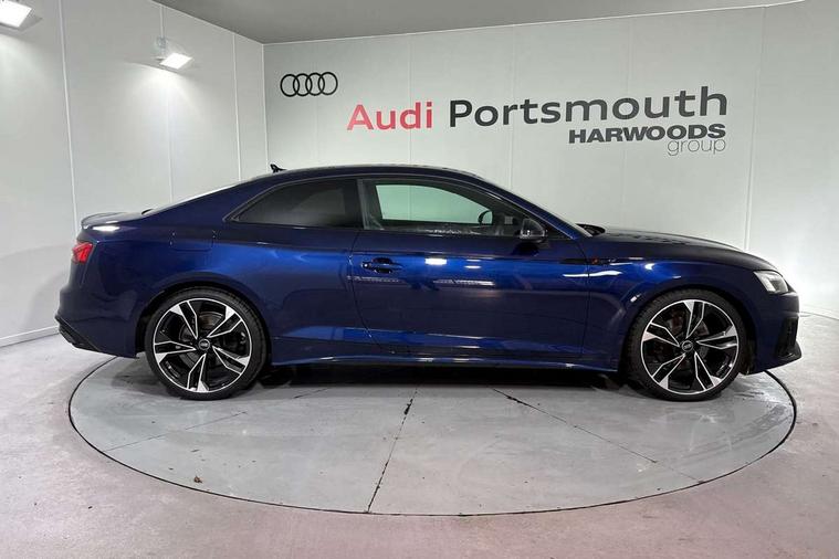 Audi connect safety and service (e-call), Audi connect with Amazon Alexa Integration, Audi drive select (Auto, Comfort, Dynamic and Individual), Audi parking system plus with front and rear sensors, Audi smartphone interface, Audi virtual cockpit - 12.3" full colour digital instrument cluster, vehicle/engine speed, Radio/media information+Driver assistance systems, Automatic start-stop system with coasting functionality and efficiency programme, Bluetooth interface, Electric boot lid release, Electro-mechanical power steering, Email, calendar and text messages displayed via MMI, MMI nav+ with MMI touch - 10.1" high resolution MMI display, touch sensitive, 3D map, route/country info, dynamic route guide, personal route assist, Rear view camera, Service interval indicator, Voice control system, Sports suspension lowered by 23mm, 8 passive loudspeakers, CD player, DAB digital radio reception, Two additional USB ports for rear passenger in rear centre console, Two SDXC card slots, Audi Beam uses LEDs to project the Audi logo, Audi matrix LED headlights with LED rear lights + dynamic front and rear indicators, Auto dimming door mirrors, Auto dimming rear view mirror, Black door mirror housings, Body colour door handles, Body colour front spoiler lip, Body colour side sill trim, Electric adjustable heated door mirrors, Electric folding door mirrors, Electric front windows, Exhaust tailpipe trims in dark chrome, Front and rear bumpers with side skirts, Front fog lights, Honeycomb structure radiator grille in grained matt black, Kerb-view function for passenger side, LED daytime running lights, LED side indicator lights integrated into door mirrors, LED third brake light, Privacy glass, Rain and light sensors, Rear boot, Rear diffuser in matt anthracite black with trim strip in matt aluminium silver, Rear side wing doors, S model rear spoiler in black, Side air inlets in grained matt black with matt aluminium silver inlay, Variable front intermittent wipers, Windscreen with acoustic glazing, 2 seat bench in 2nd row, 4 way electric lumbar support for driver and front passenger, 40/20/40 split folding 2 seater rear seat bench with rear centre armrest, Adjustable steering column, Black cloth headlining, Black perforated leather gearknob, Contrast stitching on seats, steering wheel and gear lever gaiter, Deluxe 3 zone electronic climate control, Front centre armrest, Front head restraints, Front/rear floor mats, Heated front seats, Illuminated door sill trim with S logo, ISOFIX child seat mounting and top tether, Luggage compartment mat, Manual seat adjustment, Rear headrests, Single front passenger seat, Stainless steel pedals, Sunvisors with vanity mirrors, Black styling pack - A5 Coupe/Sportback, LED interior light pack - A5/RS5, 2 x 3-point rear seatbelts, 6 airbags - Driver, front passenger, curtain and side airbags, Electromechanical parking brake, Electronic Stabilisation Control (ESC) including ABS, ASR and EDL, Front passenger airbag deactivation, Height adjustable front seatbelts, Hill hold assist, Multi collision brake assist, Pop-up bonnet for pedestrian protection, Pre sense city, Seatbelt monitoring, Tyre pressure warning, Variable restraint system, Warning triangle and first aid kit, Anti theft alarm system, Anti theft wheel bolts, Immobiliser, Keyless Go, Remote central locking, Piano black finish inlay, 20" 5 twin spoke polygon design alloy wheels in gloss anthracite black and gloss turned finish, Tool kit, Tyre repair kit,