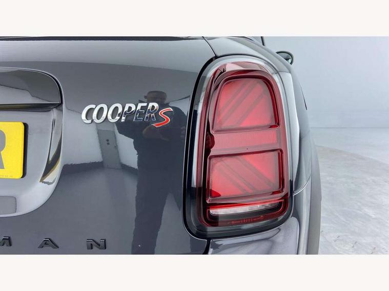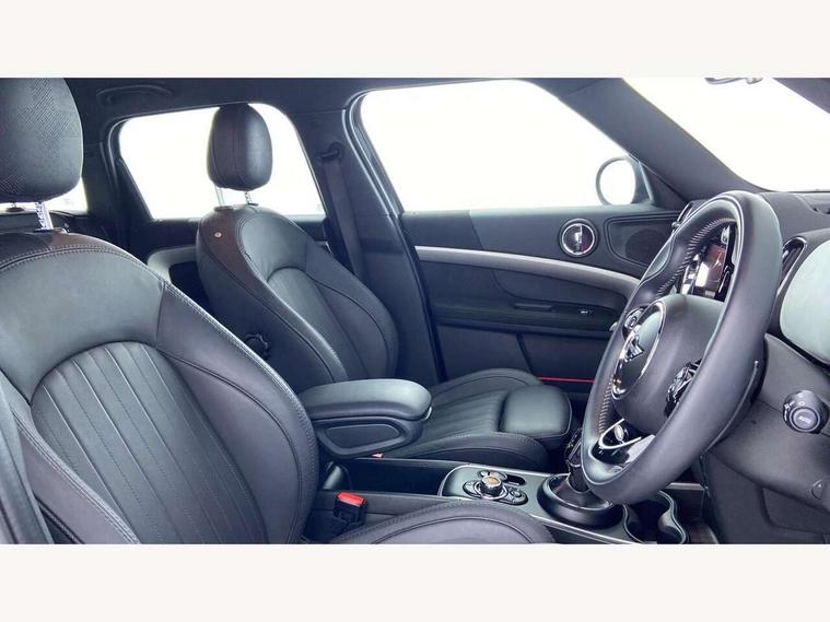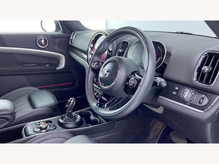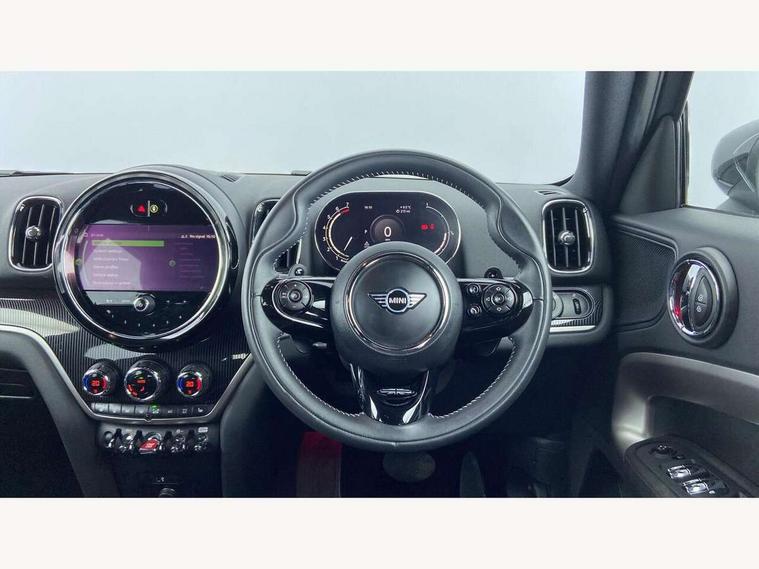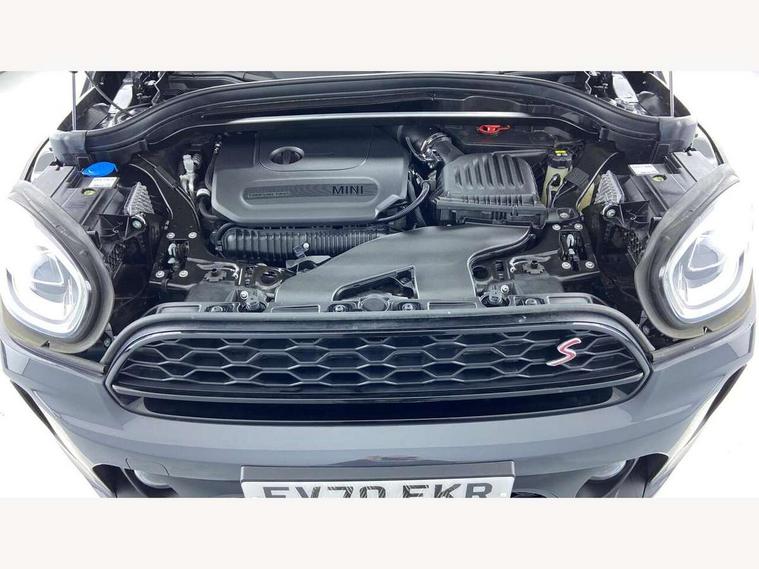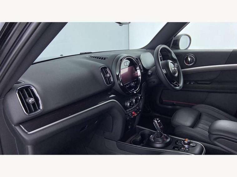 Active Guard incl speed limiting and lane departure functions with auto steering, and front collision warning with brake intervention, Automatic start/stop function with brake energy recuperation, Digital cockpit, Electro-mechanical speed dependant steering assistance, Instrument cluster, MINI Driving Modes - centre toggle switch to control driving setting (sport, mid and green), Mini E-call, MINI TeleServices, On board computer, Rear parking distance control, Double Vanos system, Fully variable valve control, High precision injection, Performance Control, Steptronic sport transmission with double clutch and steering wheel paddles, FM tuner and DAB digital radio, Bonnet scoop, Chrome border honeycomb structure radiator grille with S badge, Chrome fuel filler cap, Chrome line exterior, Day time driving lights, Dynamic brake lights, Electric windows, Heated rear window, Heated windscreen washer jets, LED fog lights, LED Headlights, Metal door sill strips with Cooper S imprint, Model logo, Model logo on Tailgate, Rain sensor with auto headlights, Rear fog lights, Rear window wiper, Side scuttle panel with integrated indicator, Split rear doors, Sun/heat protection glass, Twin exhaust tailpipe, White indicator lenses, 12V Accessory socket in centre console, 360L luggage compartment capacity, 4 lashing eyes in luggage compartment, 40:20:40 split folding rear seats, Chrome interior highlights, Colour line - Carbon black, Cupholders, English handbook, Front headrests, Glove compartment, Height and length steering column adjustment, Interior lighting with 12 basic colours selectable via toggle switch in roof, Isofix rear child seat preparation, Leather gearshift lever and handbrake gaiters, LED reading lights, vanity mirror lights, front foot well light and spotlight on front seats, Manual air conditioning, MINI Yours fine walk nappa leather steering wheel with contrast stitching in silver and MINI Yours badge, Multifunction steering wheel, Passenger seat height adjuster, Rear headrests, Storage compartments in doors, Sunvisors with vanity mirrors, Excitement pack - Countryman, Navigation pack - Countryman, 2 tone horn, 3 point seatbelts on all seats, 6 Airbags - front, side, head and seat belt tensioners, Anti-lock braking system (ABS), DSC - Dynamic Stability Control, Electronic handbrake, Front and rear disc brakes, Hill start assist, Tyre pressure monitoring system, Alarm system with tilt sensor, monitoring doors, bonnet interior and tailgate, Auto drive away locking, Deadlocking function, Electronic vehicle immobiliser, Locking wheel bolts, Start/stop toggle with keyless go, Chrome line interior, Tool kit,
