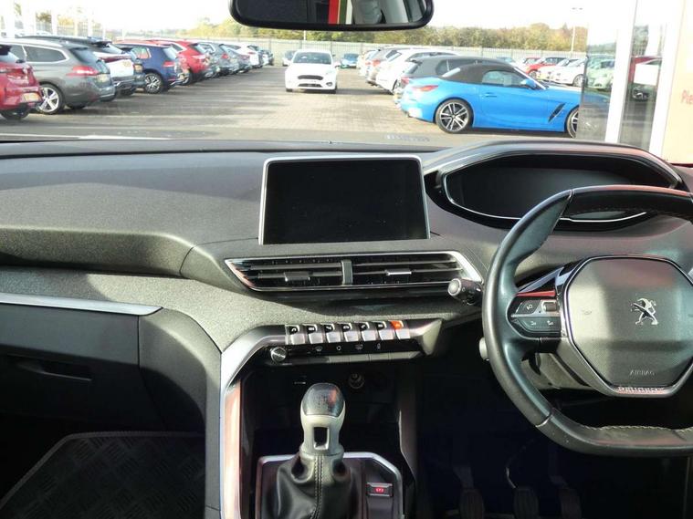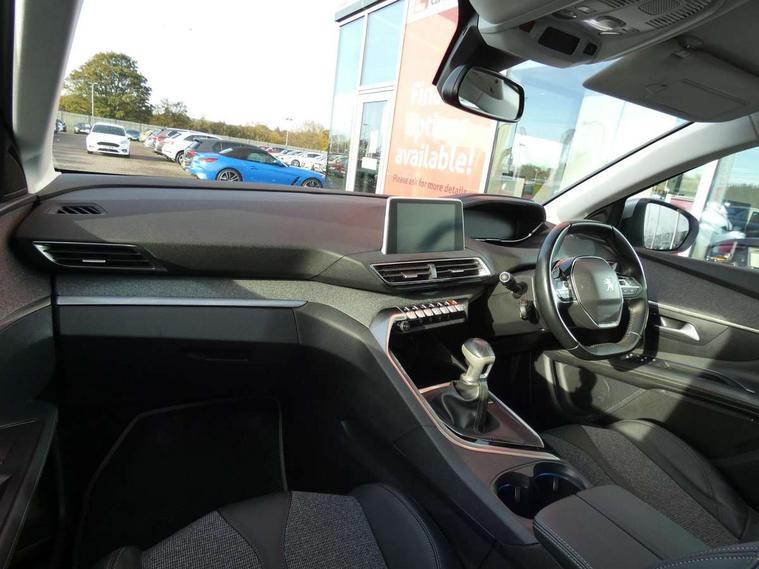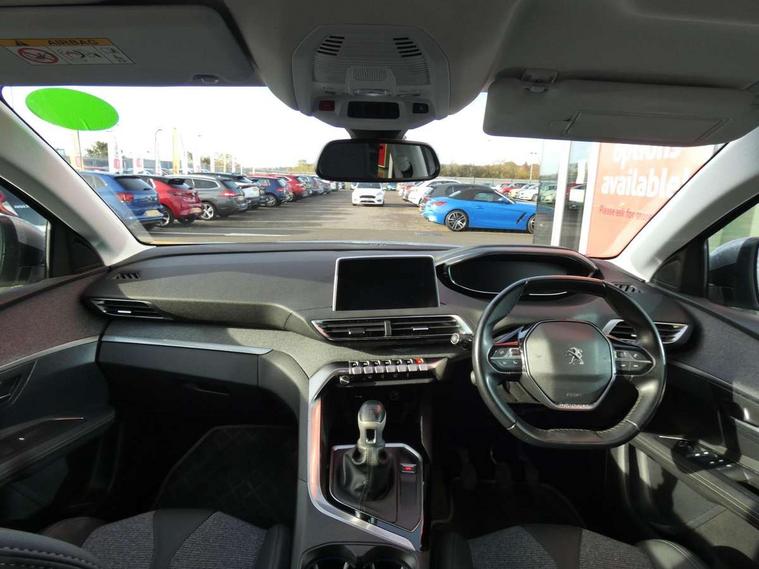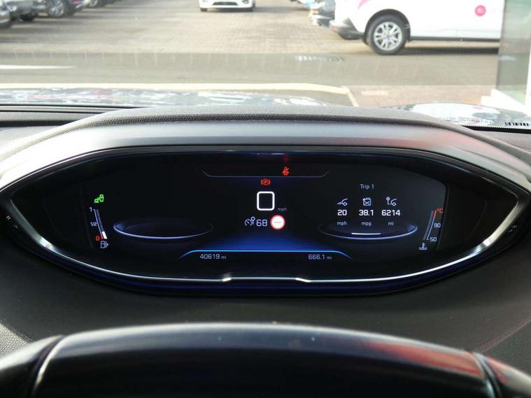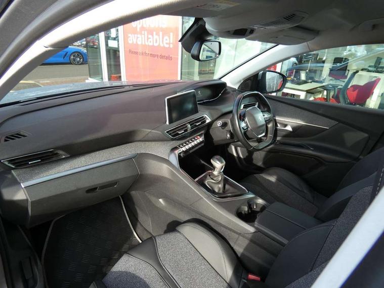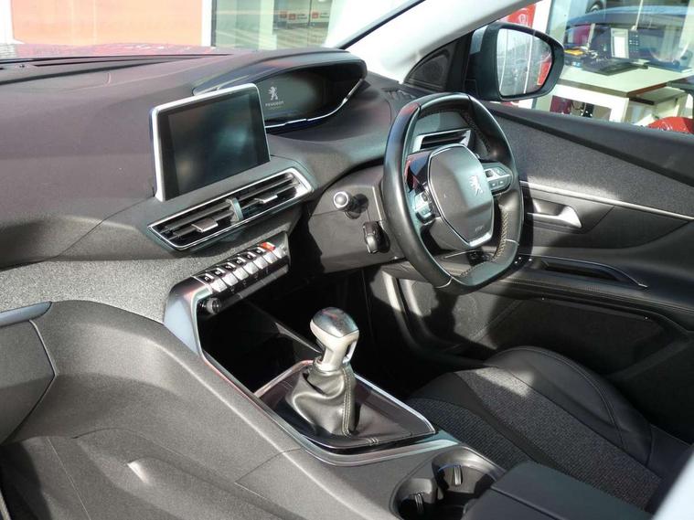 'Lights On' Reminder warning buzzer, 3D connected navigation + voice control + Peugeot connect SOS and assistance, Bluetooth telephone facility, Digital clock, Exterior temperature indicator with ice warning, Front and rear parking sensors, Lane departure warning system, Mirror screen with mirror link, apple carplay and android auto, Multi function trip computer, PEUGEOT i-Cockpit with 8.0" capacitive touchscreen in centre console, PEUGEOT i-Cockpit with compact sports steering wheel, PEUGEOT i-Cockpit with configurable 12.3" Head-up digital instrument panel, Speed limit recognition and recommendation, Dynamic stability control and electronic anti-skid system, DAB Digital radio, Steering column mounted multifunction controls, USB socket, 2 X Rear number plate lights, Aluminium longitudinal roof bars, Automatic hazard light activation upon heavy brake application, Automatic triggered rear windscreen wiper in reverse gear, Black and chrome front wing trim, Black bumper protection plate, Black rubber side window trim, Body colour door handles, Body colour door mirror shells, Body colour rear spoiler with stainless steel edging trim, Body coloured bumpers, Body protectors (bottom of front and rear bumpers + wheel arches + protection at bottom of doors) in black, Chrome bumper inserts, Chrome front fog light trim, Chrome radiator grille and surround, Chrome rear bumper facia, Dark tinted rear side windows + tailgate window, Door mirror mounted LED courtesy approach lights, Electric operated/heated door mirrors, Front windscreen wiper with magic wash cleaning system, Gloss black finish B and C pillar, Gloss black rear cluster connecting strip, Gloss black windscreen surround, Halogen headlights, Headlights left on audible warning, Heated rear windscreen with integrated antenna, LED daytime running lights, LED sequential scrolling front indicators, LED side indicator lights integrated into door mirrors, Lion grey front bumper scuff plate, One touch electric front/rear windows with pinch protection, Power folding door mirrors with blind spot detection indicator and auto dipping function in reverse gear, Radiator grille in chrome edge trim and facets, Rear LED Peugeot signature 'Claw Effect' lights, Stainless steel roof arches, 1/3 to 2/3 split folding rear seats, 12V Sockets in dashboard, rear cabin and load area, 2 cupholders in front centre console, 2 rear reading spotlights, 2x Rear coat hooks, 3x Isofix child seat fittings in the front passenger and outer rear seats, 4 Grab handles retractable and damped, 4 Lashing eyes in boot, Blue ambient lighting for connecting zone, Blue ambient lighting to front door panels, central storage and cupholders, Blue ambient lighting to head up instrument panel, Centre front armrest with butterfly wing opening and illuminated storage compartment, Driver and front passenger seat height adjustment, Driver seat manual adjustment, Dual zone automatic climate control, Electric power steering with reach and rake adjustable steering column, Fixing rings 4 in load compartment, Flocked glovebox interior, Fold flat front passenger seat with picnic table, Footwell illumination, Front headrests, Front interior light with 2 reading spotlights and rear interior light with timer, Front seat back map pockets, Gear shift indicator, Height adjustable headrests, Illuminated glovebox, Illuminated vanity mirrors, Mistral full grain leather steering wheel, Rear armrest with ski flap and two cup holders, Rear centre console ventilation system, Rear headrests, Reclining front seats, Roof LED interior lighting, Roof lining - Salin light grey, Satin chrome dashboard trim, Satin chrome digital instrument panel and touchscreen trim, Satin chrome front door panel recess trim, Satin chrome gear lever, Satin chrome interior door handles, Satin chrome scorpion's tail and toggle switch trim, Seatbelt not fastened audible and visual alert for front seats, Seatbelt unfastened on the move audible and visual alert for front and rear seats, Two position boot floor, Safety pack - 3008, Safety Plus Pack - 3008, Visibility pack - 3008, 3x Rear three-point retractable seatbelts with force limiters in the outer rear seats, Adaptive driver and front passenger airbags with passenger airbag deactivation function, Anti-lock braking system with electronic braking distribution and emergency braking assistance, Auto city emergency braking, Driver and front passenger side airbags, Driver SMART airbag, Electric child locking functionality on rear windows and doors, Electric parking brake, ESP with ASR, Front and rear curtain airbags, Front optimised safety headrests and 3 x rear retractable headrests with height adjustable, Front passenger SMART airbag with deactivate switch, Front three point retractable seatbelts with pre tensioners and force limiters, Front ventilated disc brakes and rear disc brakes, Height adjustable front seatbelts, Hill start assist, Tyre pressure sensor, Anti theft alarm, Automatic door lock/re-lock after 30 seconds, Central locking button on dash, Deadlocks, Electronic immobiliser, Locking wheel bolts, Remote control central locking with two plip keys, Brumeo fabric Dashboard, front and rear door panel finish, Satin chrome dash trim, Satin chrome instrument dial surrounds,