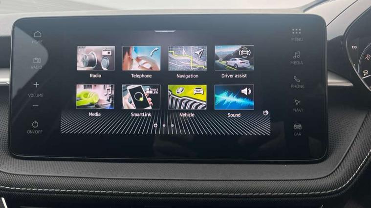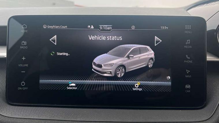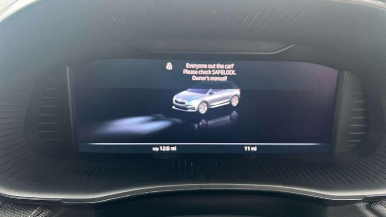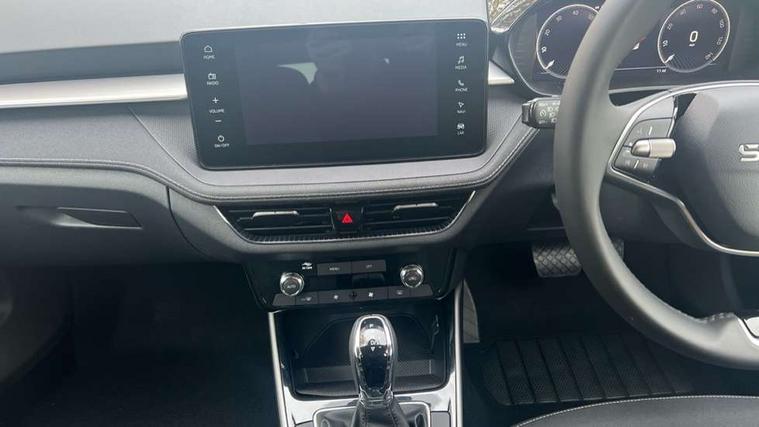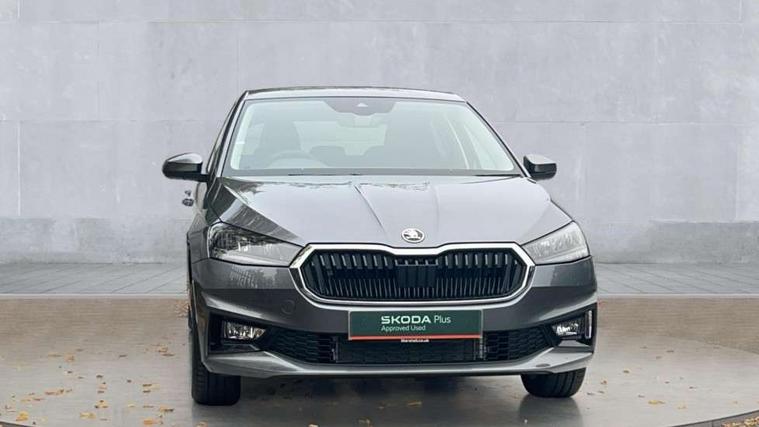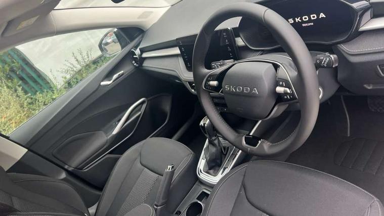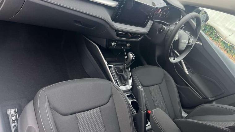 Advanced driver attention and drowsiness monitor, Bluetooth connection, Driver alert system, Electromechanical power steering, Exterior temperature gauge, Service interval indicator, Traffic sign recognition, Virtual cockpit with 10.25" colour display, Wireless SmartLink for Apple CarPlay and Android Auto, 6 Speakers (4 in front and 2 in rear), 9.2" colour display skoda navigation system with voice control and web radio, Auxiliary socket for external MP3 player, DAB digital radio reception, Auto dimming rear view mirror, Body colour door mirrors, Body coloured bumpers, Chrome window surround, Door mirror integrated indicators, Front and rear electric windows, Front window wiper intermittent control, Headlight range control - Automatic, Ice scraper in fuel cap, LED 3rd brake light, LED daytime running lights with coming and leaving home feature, LED rear lights, Privacy glass, Rear LED fog light, Rear side wing doors, Rear window wiper with washing nozzles, Roof mounted spoiler, SKODA tailgate lettering in chrome, Unique dark chrome design logo on alloy wheels, 2 LED reading lights in front and rear, 3 rear headrests, Backrest split and folding, Central console with fixed cup holder and storage box, Chrome handbrake release button, Comfort seats, Door sills with fabia badging, Dual zone air conditioning with climatronic electronic control, Fabric upholstery, Front centre armrest, Gearshift knob/handle in leather, Grain satin black interior door handles, Hand brake lever handle in leather, Height adjustable front headrests, Height adjustable front seats, Height adjustable steering wheel, ISOFIX and TopTether anchorage points to the outer rear seats, ISOFIX and TopTether on the front passenger seat, Luggage compartment lighting, Manually adjustable lumbar support in front seats, Pollen filter, Rear seat bench unsplit, Single front passenger seat, Skoda lettering on steering wheel, Storm grey headlining, Sun visors with mirror and airbag label on passenger side, Textile floor mats, Ticket holder, Umbrella in drivers door, Ambient lighting pack - Fabia Hatchback, 3-point height adjustable front seats belts with pretensioner and force limiter, Automatic warning lights in case of crash, Driver and passengers airbag with switch off function, e-Call+, ESC including ABS, MSR, ASR, EDS, HBA and XDS, Front and rear seat belt warning, FRONT ASSIST (AEB City and AEB Inter Urban), Front side airbags, Head airbags, Hill hold control, One tone horn, Pedestrian protection, Three rear 3-points safety seat belts with pretensioner and force limiter including stop function for outer rear seat belts, Tyre pressure monitoring system, Anti-theft alarm system including immobiliser, interior monitoring, backup horn, and towing protection, Central locking with radio remote control, interior controls, SAFE function and 2 foldable keys, Chrome edged air vents, Grain satin black central console cover, Metallic grey upper decorative trim, Satin black door and side trim panel in front, Textile microsuede grey lower decorative trim with art grey stitching, Anti-theft wheel bolts protection, Super-low rolling resistance tyres,