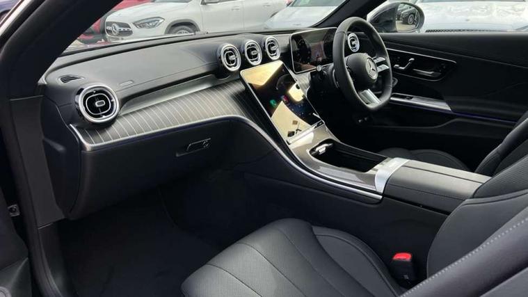 5G Communications module, Acoustic presence indicator, Active lane keeping assist, Bluetooth connection, Car wash mode, DYNAMIC SELECT with a choice of driving modes (ECO, Comfort, Sport, Sport+ and Individual), eCall emergency call system, Fingerprint scanner, Fluorescent jacket for driver, Fully digital 12.3" driver display screen, Hard-disk navigation, Head up Display, Hey Mercedes Voice activation, MBUX navigation premium, PAS, Passive person presence reminder, Portrait format 11.9" touchscreen central display with driver orientation, Smartphone integration with Apple CarPlay and Android auto, Traffic sign assist, Wireless charging system for mobile devices in the front, 50 litre fuel tank, 9G TRONIC plus automatic transmission, AC charging, Charging cable for domestic socket, 5 m, straight, Comfort suspension, Integrated starter generator Gen 2, Mode 3 charging cable for wallbox and public charging stations with 5m upto 11kW, Self levelling suspension, Sporty engine sound system, Burmester 3D surround sound system with sound personalisation, Digital radio, MBUX extended functions, MBUX multimedia system, Ambient lighting with projection of brand logo, AMG bodystyling, AMG Line exterior, Auto headlights, Electric windows, Heat insulating dark tinted glass, LED 3rd brake light, LED Day time running light, LED digital light with adaptive highbeam assist plus, Panoramic sliding sunroof, Rain sensor windscreen wipers, Rear boot, Variable front intermittent wipers, 2 individual rear seats, 2 rear head restraints, Ambient lighting premium, AMG floor mats, AMG line interior, Belt feeder, Black fabric roof liner, Climatised multicontour front seats, Folding rear seat backrests, Front headrests, Heated front seats, Illuminated door sill panels with Mercedes Benz lettering, Instrument panel and beltlines in ARTICO manmade leather in nappa look, Leather upholstery, Multifunction sports steering wheel in nappa leather, Power height and reach adjustable steering column, Single front passenger seat, THERMATIC automatic climate control, Energizing plus package with air balance pack - CLE, Interior light pack - CLE, Keyless-Go comfort package - CLE, Memory seat pack - CLE, Mirror pack - CLE, Parking package with 360 degree camera - CLE, Stowage space package - CLE, USB package plus - CLE, Anti-lock braking system (ABS), Braking system with larger brake discs on the front axle, Centre airbag, Dual front airbags, Electric parking brake, Electronic Stability Programme (ESP), Front and rear seatbelt reminder, Hill start assist, Pedestrian protection, Tyre pressure monitoring system, Anti theft alarm system, Guard 360 degree vehicle protection plus, Increased anti-theft protection, Interior monitoring system, Black open-pore aluminium lines wood trim with mixed fabric look metal finish centre console, 19" AMG multi spoke light alloy wheels painted in black with high sheen finish, Tirefit,