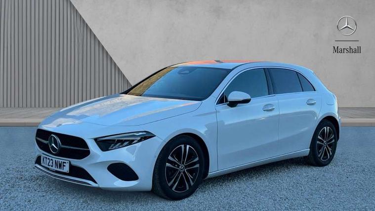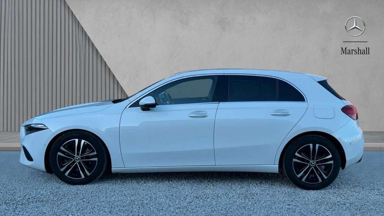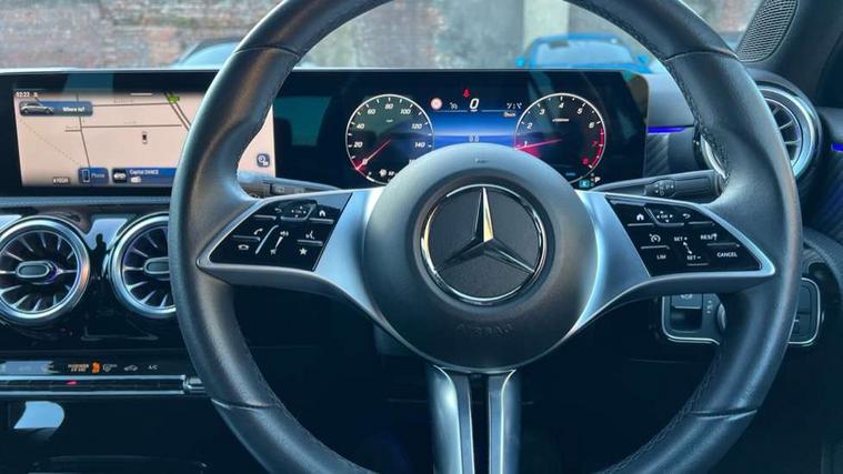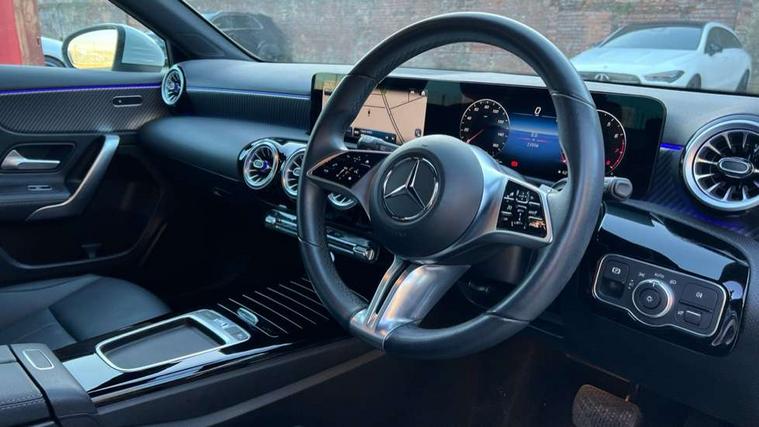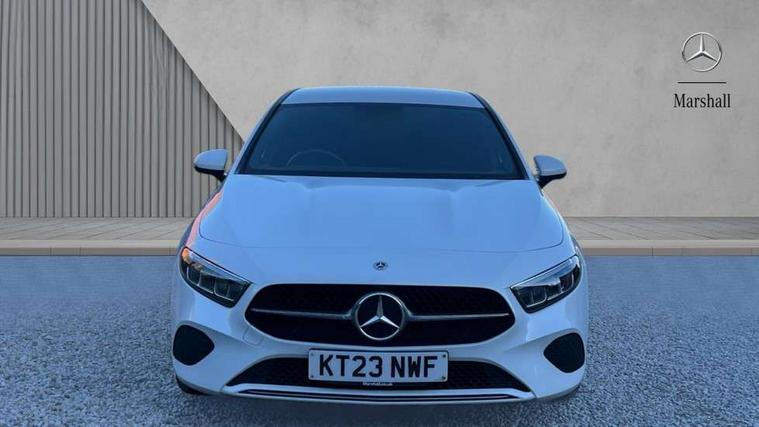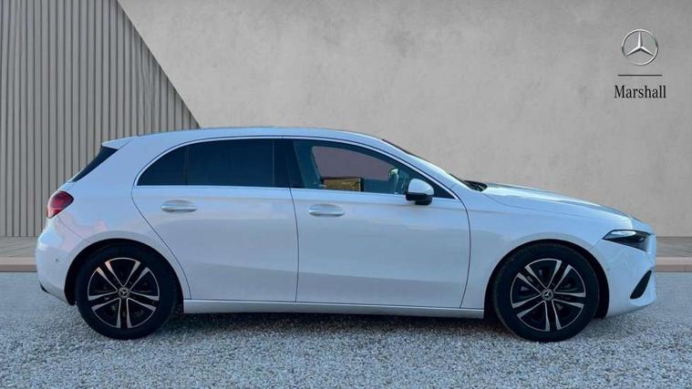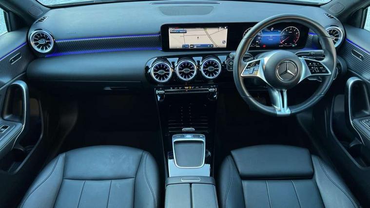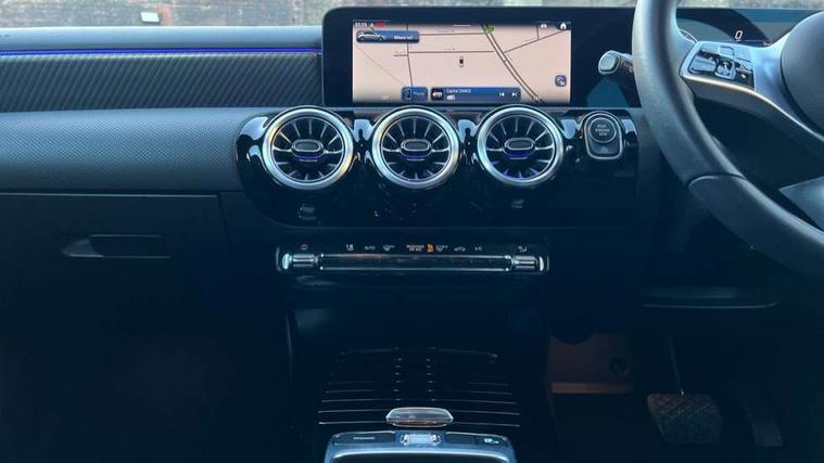 10.25 inch touchscreen central media display, 10.25" Digital instrument cluster display screen, Attention assist, Brake pad wear indicator warning light, Car wash mode, Cruise control + speed limiter, Direct steering, Direction indicators with lane change function, Dual bluetooth interfaces, DYNAMIC SELECT with a choice of driving modes (ECO, Comfort, Sport and Individual), Easy pack tailgate hands-free access, ECO start/stop function, Engine start/stop button, Fluid level warning indicator for fuel, oil, coolant and washer fluid, Hard-disk navigation, Hey Mercedes Voice activation, Lamp failure indicator, Lane keeping system, Mercedes me connect including emergency call system, accident recovery, breakdown management and maintenance, Mercedes me remote services, Outside temperature gauge, Owners manual in English, Pre-installation of private car share, Preinstallation for Mercedes Benz link, Remote boot closing, Service indicator (ASSYST), Smartphone integration with Apple CarPlay and Android auto, Speed limit assist, Speed sensitive power steering, Trip computer in multifunction display with current consumption indicator, Wireless charging, Lowered comfort suspension, DAB Digital radio, MBUX multimedia system, Mercedes Benz sound system (100 W) with 6 speakers, 4 Electric Front and Rear windows, Adaptive brake lights, Body colour bumpers, Body colour door handles with chrome inserts, Body colour side skirt, Body coloured door mirrors, Chrome beltline strips, Diamond radiator grille with pins in fine star pattern, Electric adjustable and heated door mirrors with integrated LED side indicators, Exhaust system with 2 visible tailpipe trim elements and rear apron, Headlamp assist automatic headlamp activation, Heat insulating dark tinted rear and rear side windows, Heated glass rear windscreen + timer control, LED High level third brake light, LED High Performance headlamps including integral LED daytime running lamps and adaptive highbeam assist, LED tail lamp, Privacy glass, Radio aerial, Rain sensing windscreen wipers with two sensitivity settings, Rear fog lights, Rear side wing doors, Rear windscreen wiper, Window line trim strip in chrome, 3 seat bench in 2nd row, 3 Spoke leather multi function steering wheel, 4 way lumbar support, 40:20:40 split folding rear seats, Air conditioning - One zone thermatic automatic climate control with automatically controlled air distribution, Artico man-made leather upholstery, Automatic child seat recognition sensor, Black air vents with surround in silver chrome, Black roof lining, Front centre armrest with stowage, Front comfort seats with adjustable head restraints, Front door sills with Mercedes Benz lettering, Front seat backs luggage nets, Gearshift paddles on steering wheel, Heated front seats, Height/reach adjustable steering column, Interior lighting - 64 colour Ambient lighting, Interior mirror with reading lamps in black and frameless, ISOFIX and top tether child seat fixing points in two outer rear seats, Rear armrest with 2 cupholders, Rear head restraints, Seat occupancy sensor for front passenger seat, Single front passenger seat, Stowage compartment in centre console with retractable cover, Sunvisors with illuminated vanity mirrors, Twin front cupholders, Velour floor mats, Light and sight pack - A Class, Mirror package - A Class, Parking pack - A Class, Seat comfort pack - A Class, USB pack plus - A Class, 3 rear 3 point seatbelts, ABS with Brake Assist, Active bonnet, Active brake assist includes forward collision warning system with autonomous braking, Adaptive brake assist with hold function and hill start assist, Black seatbelts, Bonnet with power domes, Childproof locks manually operated for rear doors and electrically operated for rear power windows, Crash responsive emergency lighting, Driver and passenger head and side airbags, Drivers knee airbag, Dual stage driver/passenger airbags, Electronic parking brake, ESP curve dynamic assist, ESP with ASR, Front and rear seatbelt reminder, Tyre pressure monitoring system, Warning triangle and first aid kit, Window airbags, Alarm system/interior protection/immobiliser, Guard 360 degree vehicle protection, Keyless entry lock/unlock, Keyless Go, Remote central locking and crash sensor with emergency opening function, Dark carbon fibre interior trim, 17" 5 spoke light alloy wheels, aerodynamically optimised, painted in black with high sheen finish, Summer tyres, Tirefit sealant kit,