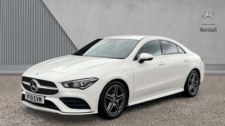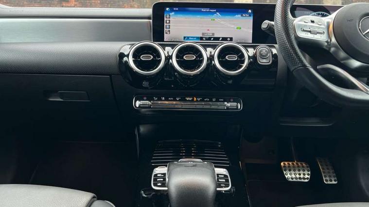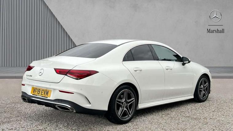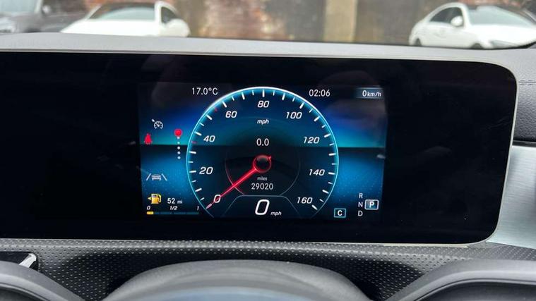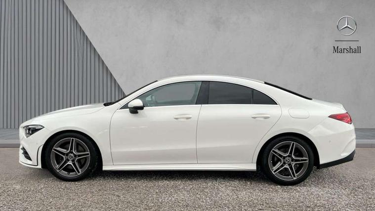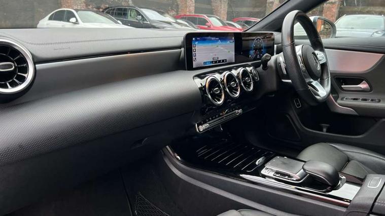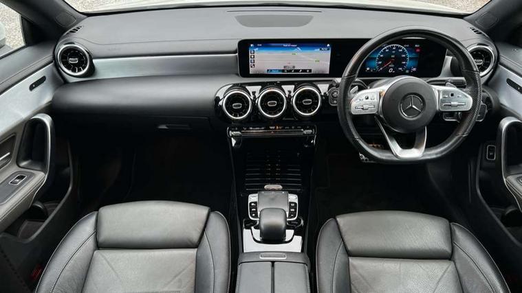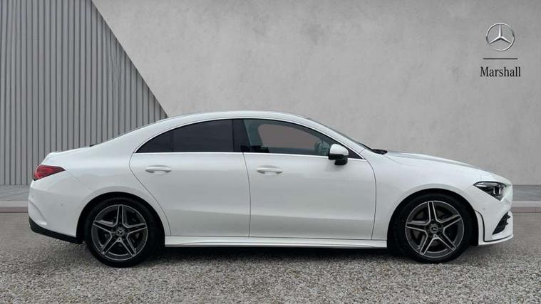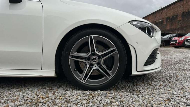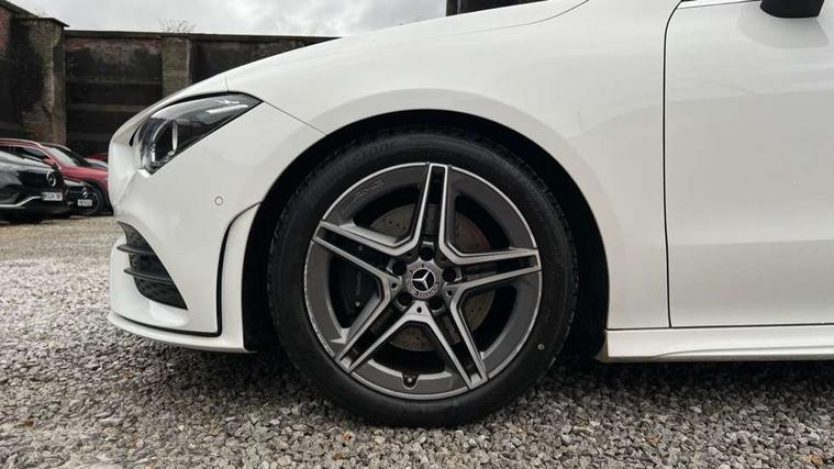 10.25" media display, 180 degree reversing camera, 7 inch display in instrument panel, Active lane keeping assist, Active park assist with parktronic system, Attention assist - Monitors steering behaviour and long journey fatigue, Cruise control + speed limiter, Direct steering, DYNAMIC SELECT with a choice of driving modes (ECO, Comfort, Sport, Sport+ and Individual), ECO start/stop function, Fluid level warning indicator for fuel, oil, coolant and washer fluid, Front and rear parking sensors, Hard-disk navigation, Hey Mercedes Voice activation, Lamp failure indicator, Outside temperature gauge, Pre-installation for private car sharing, Preinstallation for Mercedes Benz link, Radio aerial integrated into front and rear windshields, Service indicator (ASSYST), Smartphone integration, Trip computer in multifunction display with current consumption indicator, Wireless charging, Lowered comfort suspension, Rear axle multi-link, DAB digital radio tuner, MBUX multimedia system with DAB digital radio and touchpad including satellite navigation, Rear stowage compartment with 1 front centre console, 2 x USB ports (type C), Active radiator shutters open for cooling air and close when not needed to improve aerodynamics and fuel efficiency, Adaptive brake lights, AMG body styling front apron, rear apron and side skirts, Beltline strips and weather strip in chrome, Body colour bumpers, Body colour door handles with chrome inserts, Diamond radiator grille pins in chrome with silver painted louvres and chrome insert, Electric windows, Electrically adjustable and heated door mirrors with integrated LED indicators, Exhaust system - Twin trapezoidal tailpipes in polished stainless steel, Headlamp assist automatic headlamp activation, Heated glass rear windscreen + timer control, High level LED third brake light, LED high performance headlamps with integrated LED daytime running lights, LED tail lamp, Privacy glass, Rain sensing windscreen wipers with two sensitivity settings, Rear fog lamp, 3 spoke flattened bottom nappa leather multifunction steering wheel with perforated leather in grip area, 40:20:40 split folding rear seat backrests, Air conditioning - Two zone thermotronic luxury automatic climate control with display, Air vents with surround in silver chrome, Ambient lamp and signal, Automatic child seat recognition sensor, Black roof lining, Brushed stainless steel sports pedals with rubber studs, Cup holder and stowage compartment lighting, Floor mats with AMG lettering, Freight packaging with tie-down hooks, Front and rear Handle recess/closing handle light in left and right, Front centre armrest with stowage, Front door sills with Mercedes Benz lettering, Front footwell lights, Front reading lamps in left and right console downlighter, Front seat cushion length adjustment, Front signal exit lamp in left and right, Front vanity light in left and right, Galvanished gear shift paddles on steering wheel, Heated front seats, Illuminated glove compartment stowage, Luggage net on driver/front passenger seat backrest, Manually adjustable front seats, Manually height and reach adjustable steering column, Oddments tray lighting, Rear interior lamp, Rear reading lamp in support plate in left and right, Spectacles compartment for driver, Sport seats with fixed head restraints, Stowage compartment in centre console with retractable cover, Sunvisors with illuminated vanity mirrors, Touchpad illumination, Touchpad on center console, Twin front cupholders, Two outer rear seat isofix and top tether child seat fixing points, Light and sight pack - CLA, Mirror pack - CLA, Seat comfort pack - CLA, Active bonnet pedestrain safety measure which detects an impact and raises bonnet by 65mm, Active brake assist includes forward collision warning system with autonomous braking, Adaptive brake assist with hold function and hill start assist, Anti-lock braking system (ABS) with brake assist, Brake pad wear warning indicator, Childproof locks manually operated for rear doors and electrically operated for rear power windows, Crash responsive emergency lighting, Driver and front passenger head and sidebags, Driver and front passenger windowbags, Drivers knee airbag, Dual stage driver and front passenger airbags, Electric parking brake, Electronic stability programme with acceleration skid control, ESP curve dynamic assist, Front and rear seatbelt reminder, Front brake callipers with Mercedes Benz lettering, Front passenger seat occupancy sensor, Three point rear seat belts, Tyre pressure monitoring system, Warning triangle and first aid kit, Alarm system with immobiliser and interior protection -Thatcham category 1, Keyless Go starting function, Remote central locking and crash sensor with emergency opening function, Light aluminium with longitudinal grain interior trim, 18" 5 twin spoke design alloy wheels painted in titanium grey with high sheen finish, Summer tyres, Tirefit tyre sealant kit,