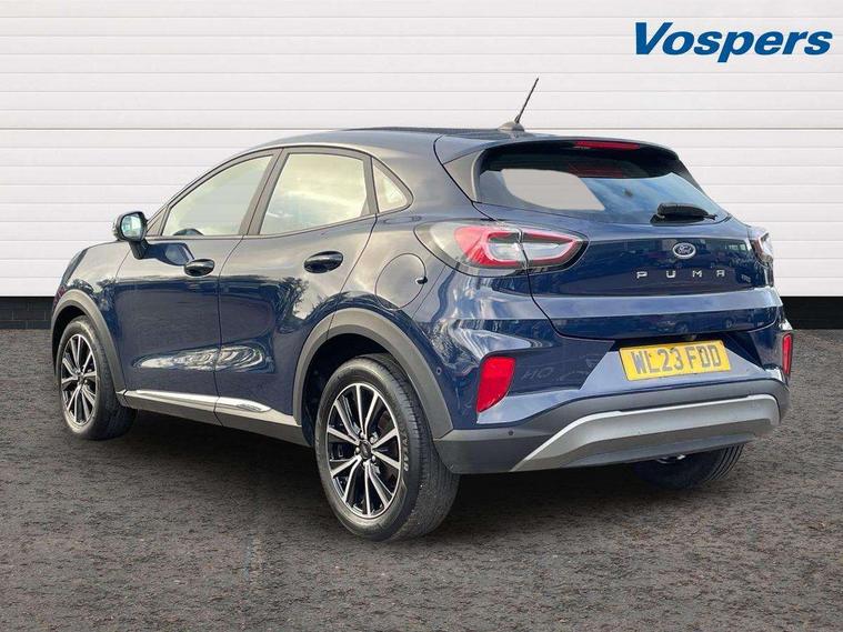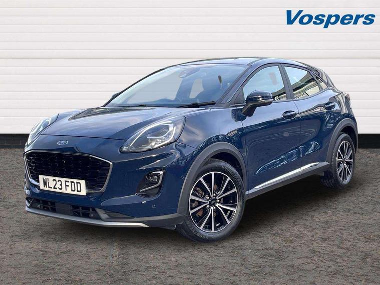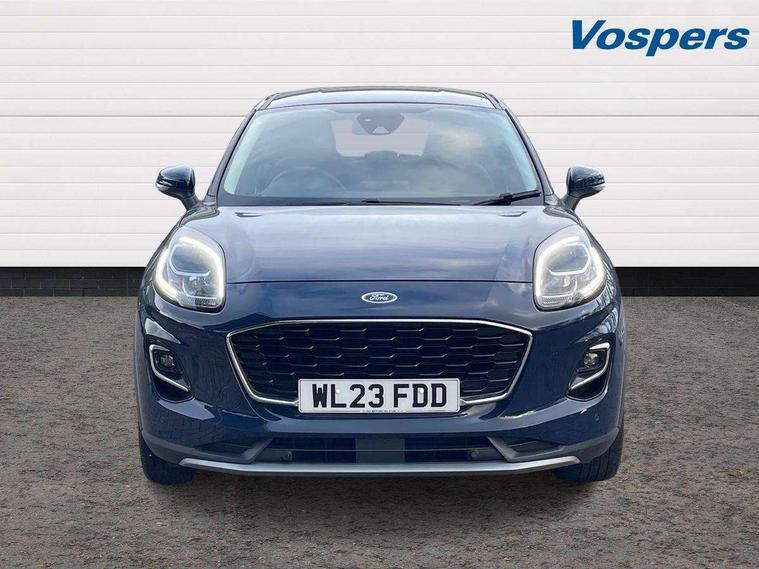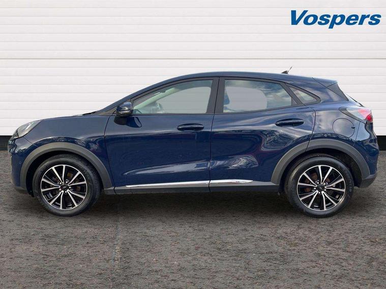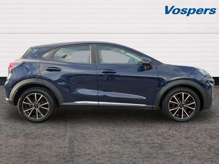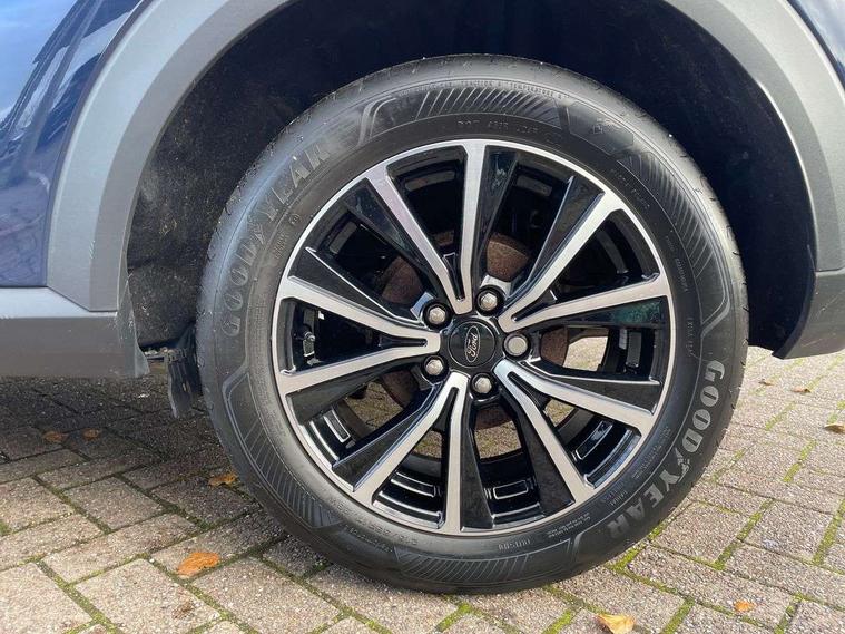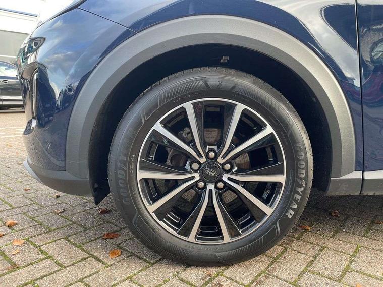 Driver impairment monitor, Emergency call service, Ford easy fuel, Lane keeping aid with lane departure warning, Power assist steering, Power start button, Rear parking sensor, Selectable drive modes(Normal, sport, Eco, trail, slippery), Speed sign recognition, Standard suspension, Automatic headlights with auto high beam, Automatic rain sensing wipers, Body colour rear spoiler, LED rear lamps, Power foldable heated door mirrors with puddle lamps, Projector headlamps with LED day time running lights and front fog lamps, Quickclear heated windscreen, Rear side wing doors, Rear wiper, Third brake light, 3 seat bench in 2nd row, Centre console with armrest and stowage, Electronic automatic temperature control (EATC), Ford megabox extended bootspace, Front and rear head restraints, Front floor mats, Manual 2 way passenger seat adjustment, Manual 4 way driver seat adjust with lumbar adjustment, Sensico leather steering wheel/gear knob/handbrake, Single front passenger seat, Titanium cloth upholstery, Ford SYNC 3 navigation pack - Puma, 3 rear seatbelts, Child safety lock, Electronic stability control (ESC) and hill start assist, Pedestrian/cyclist detection & post-collision braking, Pre collision assist system, Tyre pressure monitoring system (TPMS), Thatcham alarm, 17" 10 spoke absolute black machined finish alloy wheel,