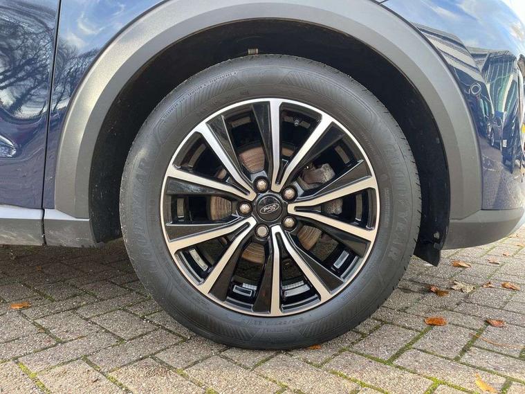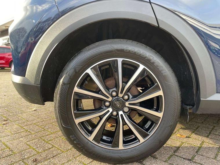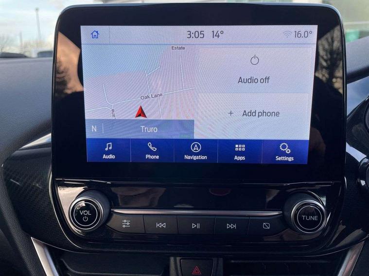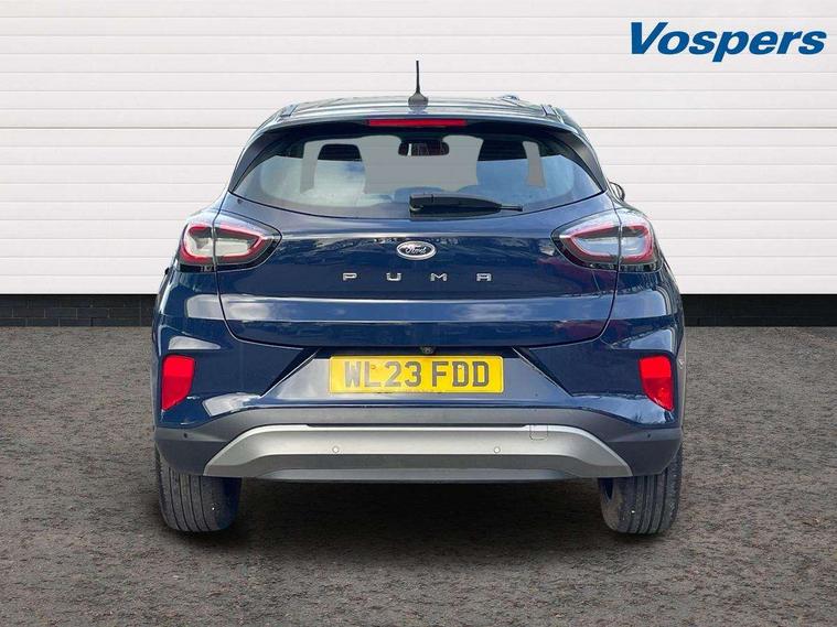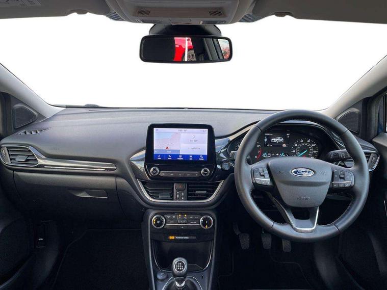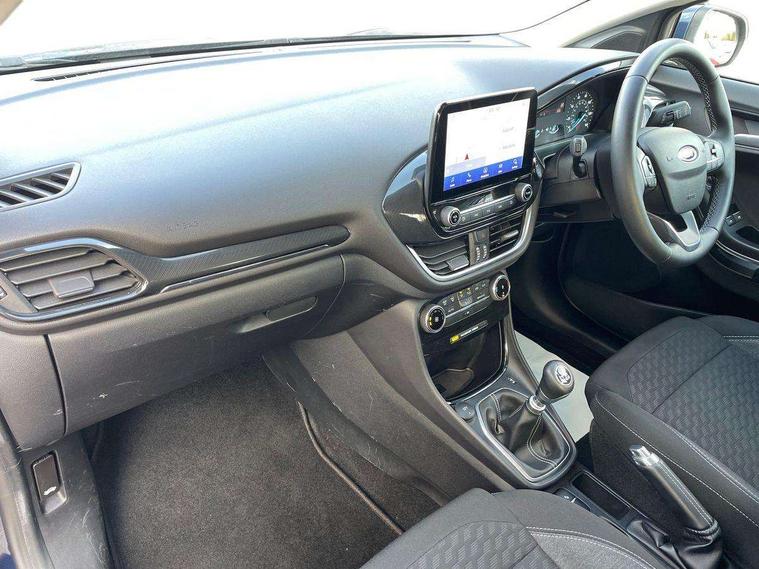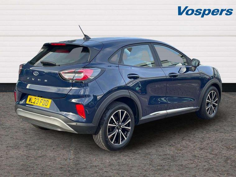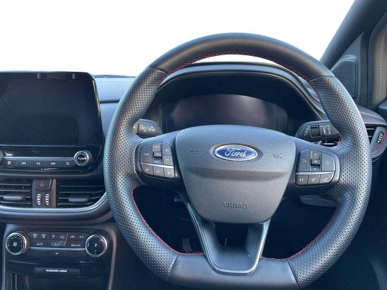 Driver impairment monitor, Emergency call service, Ford easy fuel, Lane keeping aid with lane departure warning, Power assist steering, Power start button, Rear parking sensor, Selectable drive modes(Normal, sport, Eco, trail, slippery), Speed sign recognition, Standard suspension, Automatic headlights with auto high beam, Automatic rain sensing wipers, Body colour rear spoiler, LED rear lamps, Power foldable heated door mirrors with puddle lamps, Projector headlamps with LED day time running lights and front fog lamps, Quickclear heated windscreen, Rear side wing doors, Rear wiper, Third brake light, 3 seat bench in 2nd row, Centre console with armrest and stowage, Electronic automatic temperature control (EATC), Ford megabox extended bootspace, Front and rear head restraints, Front floor mats, Manual 2 way passenger seat adjustment, Manual 4 way driver seat adjust with lumbar adjustment, Sensico leather steering wheel/gear knob/handbrake, Single front passenger seat, Titanium cloth upholstery, Ford SYNC 3 navigation pack - Puma, 3 rear seatbelts, Child safety lock, Electronic stability control (ESC) and hill start assist, Pedestrian/cyclist detection & post-collision braking, Pre collision assist system, Tyre pressure monitoring system (TPMS), Thatcham alarm, 17" 10 spoke absolute black machined finish alloy wheel,