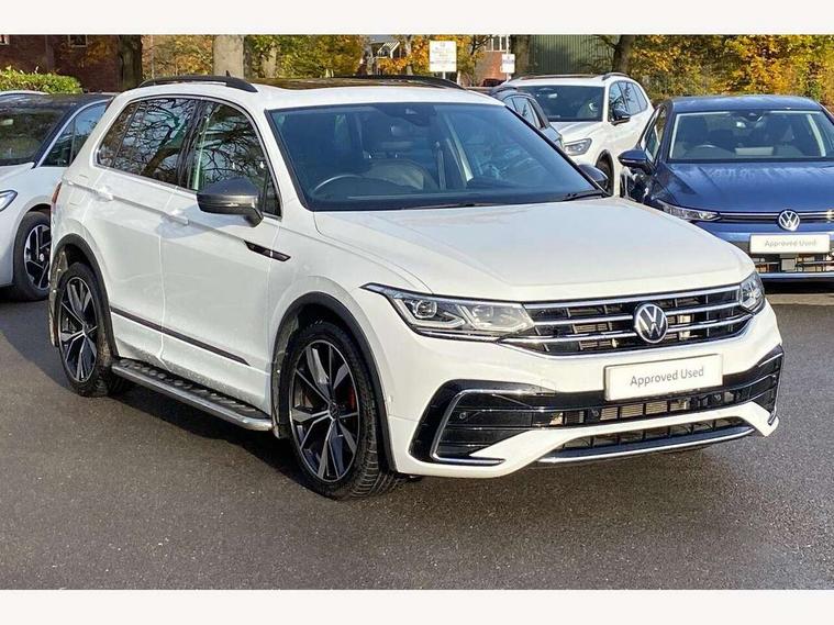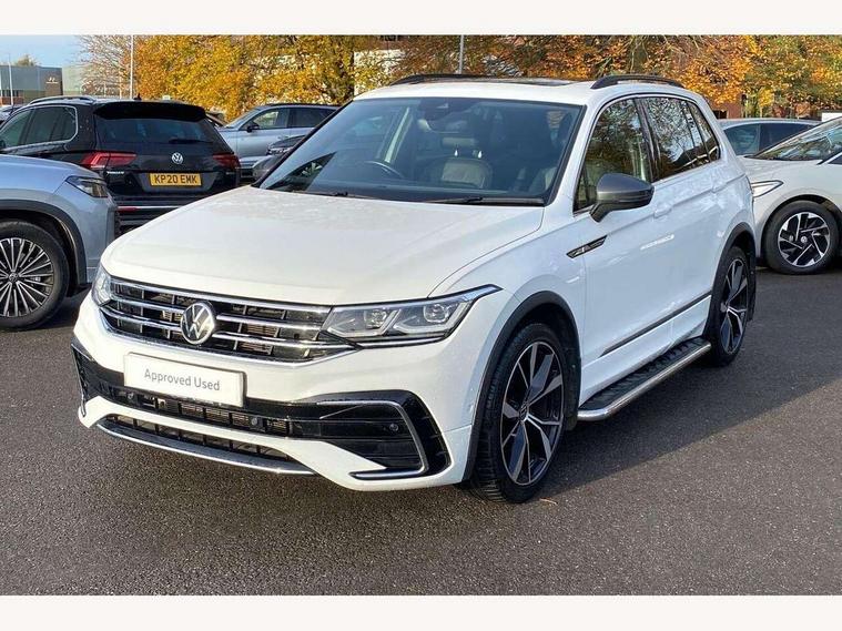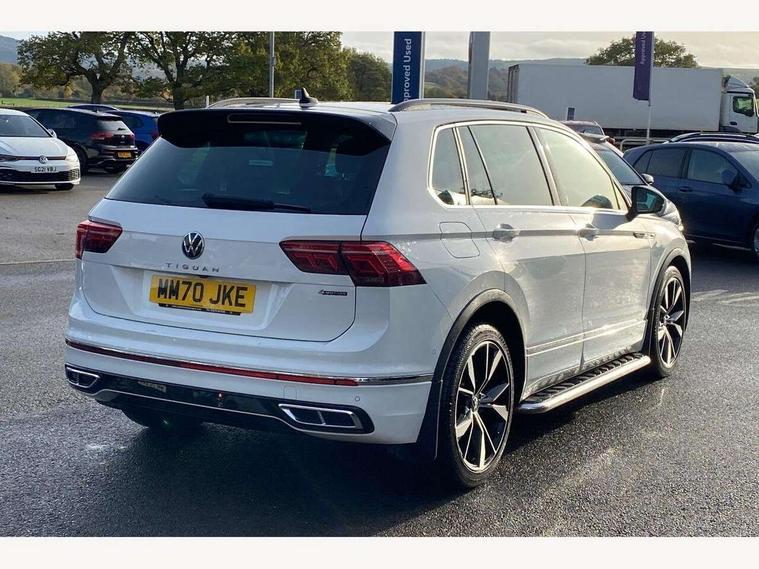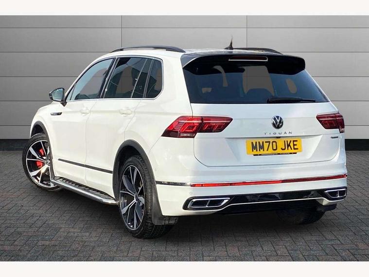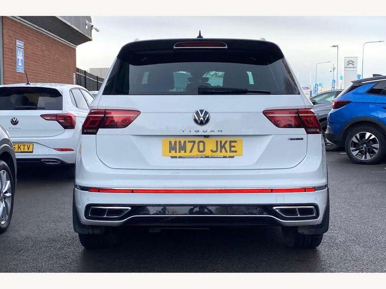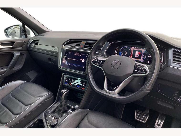 Adaptive cruise control ACC stop and go including speed limiter, App-Connect incl. App-Connect Wireless for Apple CarPlay and Android Auto, Bluetooth phone integration system, Digital Cockpit Pro - Active info display, Distance control assist, Driver alert system, Driver profile selection, Dynamic road sign display, eCall emergency call system, Electromechanical speed sensitive power steering, Front/rear Parking distance control, Lane keeping system Lane Assist, Lights on warning, Multifunction front facing camera, Outside temperature display, Premium multifunction display with multi colour display, Service interval indicator, Start/stop system with regenerative braking, Tailgate/trunk lid unlocking from outside, Warning sound and light for doors and tailgate open, Battery regeneration during braking, Diesel particulate filter, Misfuel prevention device for diesel engine, XDS electronic differential lock for improved traction and handling, 2 USB-C ports in the front, 1 USB-C charging socket on the center console in the rear, Diversity antenna for FM reception, Radio, SD card slot, Simultaneous pairing of 2 compatible mobile devices, SMS functionality - read, compose and send SMS messages using touch-screen display, Title and cover art display, Auto dimming interior rear view mirror, Automatic headlight control system, Black roof rails, Body colour door handles, Body coloured bumpers in R Line style, Chrome moldings on the side windows, Coming/leaving home lighting function, Dynamic headlight range control, Front and rear electric windows, Heated rear window, High level 3rd brake light, Laminated safety glass windshield, heat and sound insulating, LED rear number plate lights, License plate carrier in front and rear, Poor weather light and cornering light, Power adjustable, folding and heated door mirrors with surround lighting, front passenger exterior mirror lowering function, Privacy glass for rear side windows and rear window, R Line body kit, R Line side sills, Rain sensor windscreen wipers, Rear exhaust tailpipe, Rear fog lamp, Rear spoiler in R style, Rear windscreen washer and wiper with interval delay, Side and rear windows in heat insulating glass, Trailer Stability Programme, Unique R Line badging, Windscreen wipers/ intermittent wipe + 4 position delay, 12V outlet in center console rear and in luggage compartment, 12V outlet in front and tray, 2 cup holders in front, 2 LED front reading lights, 2 LED rear reading lights, 3 rear headrests, 4 load lashing points, 40:20:40 split folding rear seats, Air Care Climatronic 3 zone automatic climate control with enhanced air filter and controls in the rear, Backrest release for left front seat, Black headlining, Brushed stainless steel pedals and footrest, Carpet mats in front and rear with decorative stitching in Gray, Door and side trim panel in foam film, insert in leatherette, Driver + front passenger lumbar support, Front footwell illumination, Front seats head restraints (x-adjustment), Height adjustable front seats, Height/reach adjust steering wheel, Instrument lighting white adjustable panel illumination, Interior light with delay, Isofix Preparation 2 Rear child seats, Leather gear knob, Leather wrapped multifunction steering wheel with paddle shift, Lockable cooled glovebox, Luggage compartment lighting, Rear bench seat asymetrically split folding, longitudinally movable and folding with load-through hatch and center armrest, Remote unlocking for rear seat backrest, Removable luggage cover, Safety optimised front head restraints, Sliding/reclining rear seats, Standard rear seat release, Storage compartment in driver's door, Storage compartment in passenger's door, Storage compartment in rear doors, Storage compartments in luggage area left and right, Storage tray on dashboard, Sun visors with illuminated vanity mirrors, Tool kit, Top front comfort seats, Variable boot floor, height adjustable and removable, Ambience pack - Tiguan R Line, Driver assistance pack plus - Tiguan Auto, 3 point seat belt for centre rear seats, 3 point seat belts with seat belt pretensioners for the outer rear seats, Active bonnet, Curtain airbags for front and rear passengers, Driver/Front Passenger airbags, Drivers knee airbag, Electronic parking brake with auto hold, Electronic Stability Control with driver steering recommendation, ABS, ASR, EDL, EDTC and trailer stabilization, Front assist with autonomous emergency braking (for Adaptive Cruise Control ACC up to 130 mph), Front disc brakes, Front passenger airbag deactivation, Front side airbags, Height adjustable front 3 point seatbelts + pretensioners, Hill hold control, Pedestrian monitoring system, Rear disc brakes, Rigid safety cell with front and rear crumple zones, Two tone horn, Warning sound and light for front seat belts if unfastened, Warning triangle, Anti theft alarm system with interior monitoring, backup horn and towing protection, Anti theft wheel bolts, Electronic engine immobiliser, 20" Misano black with diamond turned surface alloy wheels with Airstop tyres,