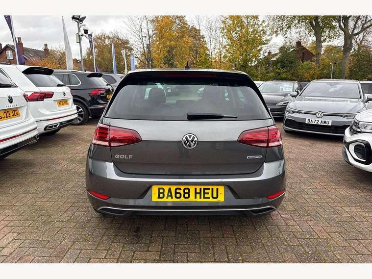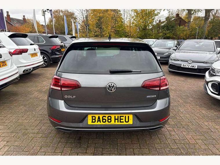 'Lights On' Reminder warning buzzer, 8" colour touch screen, ACC - Adaptive cruise control with front assist, forward collision warning, distance monitoring, city emergency brake and speed limiter, App-Connect, Bluetooth telephone and audio connection for compatible devices, Brake pad wear indicator warning light, Drive mode selector, Driver alert system, Driver profile selection, Front assist, radar sensor controlled distance monitor, city emergency braking + predictive pedestrian protection, Front assistant collision mitigation, Instrument cluster in white, Multifunction computer with visual gear change recommendation for fuel consumption, Power assisted speed sensitive electro-mechanical steering, Speedo, rev counter, electronic odometer, trip, service interval display, exterior temperature and fuel gauge, Stop/start system, Ultrasonic front and rear optical and audible parking sensors, Warning buzzer and light for front seatbelts unfastened, Battery regeneration during braking, XDS electronic differential lock, 8 speakers, Composition media system, DAB Digital radio receiver, MP3/WMA compatability, SMS Functionality, USB and SD card connectivity, Aerodynamic black radiator grille with chrome trimmed insert, Automatic coming/leaving home lighting function, Automatic dimming rear view mirror/rain sensor, Black rear diffuser, Body colour bumpers, Body colour door handles, Body colour door mirrors with integrated indicators, Electric front windows, Electric rear windows, Electrically adjustable and heated door mirrors, Glavanised body, Heated rear windscreen, High level 3rd brake light incorporating LED Technology, Range adjustable headlights via infotainment system with LED daytime running lights, Rear number plate lights incorporating LED technology, Rear window aerial, Rear window wash/wipe with intermittent wipe, Reflectors in all doors, Remote electrically foldable door mirrors, door mirror puddle lights and reverse activated kerb-view adjustment on passengers door mirror, Tailgate with integrated rear roof spoiler, Windscreen wipers/ intermittent wipe + 4 position delay, 12V socket in luggage compartment, 3 rear headrests, 4 load lashing points in luggage compartment, 60/40 split folding rear seat backrest, Bag hook in luggage compartment x 2, Cooled glovebox, Dust/pollen filter, Front and rear reading lights incorporating LED technology, Front centre armrest with storage compartment and two rear air vents, Front seat back storage pockets, Grab handles front x 2, rear x 2 with integrated coat hooks, Height and reach adjustable steering wheel, Illuminated vanity mirrors, Instrument lighting white adjustable panel illumination, Interior light delay, Isofix preparation for 2 rear child seats, Load through provision with rear centre armrest and cupholders x2, Luggage compartment light, Multifunction leather steering wheel with leather trimmed gear knob, Overhead storage box, Pearl grey headlining, Storage box in luggage compartment, Storage compartment in roof console with cover, Storage compartments in front doors, Storage compartments in rear doors, Stowable luggage compartment cover, Sun visors, Three spoke multi-function leather trimmed steering wheel and gearknob, Variable boot floor, height adjustable and removable, Mirror pack - Golf, 3 rear three point seatbelts, Airbags - Driver's and front passenger's, curtain airbag, Driver's knee, front side impact and passenger's airbag deactivation switch, Anti-lock Braking System (ABS) with Hydraulic Brake Assist (HBA), Automatic post collision braking system, Child locks on rear doors, Driver/Passenger optimised head restraints, Electronic parking brake with auto hold, Electronic stability control (ESC) including Electronic differential lock (EDL) and ASR (Traction control) with deactivation via infotainment system, Pre crash preventive occupant protection, Three point height adjustable front seatbelts with tensioners, Tyre pressure loss indicator, Alarm with interior protection, Electronic engine immobiliser, Remote central locking with 2 remote folding keys, Brushed dark silver decorative inserts in dash and door panels, Chrome plated air vent surround, Chrome-plated light switch surround, Polar night black centre console, Steel space saver spare wheel,