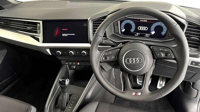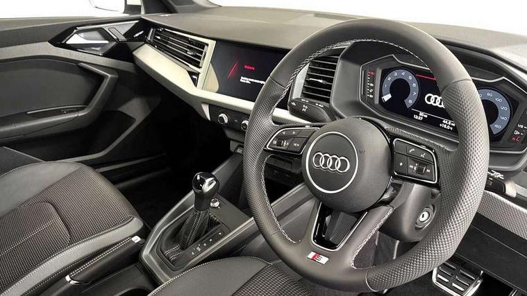 10.25" Digital instrument cluster display classis style instrument dials + speed, odometer, time, outside temperature, telephone menu + fuel level warning, Advanced driver attention and drowsiness monitor, Audi connect emergency call and service, Audi drive select, Audi remote connect and control, Audi smartphone interface, Bluetooth interface, Camera based traffic sign recognition, Cruise control, Driver's information system, Electromechanical power steering, Lane departure warning system, Rear parking sensor, Service interval indicator, Speed limiter, Start stop system with recuperation, Voice control system, Washer fluid level indicator, Sports suspension, 2 x USB type C connection points, 6 loudspeakers, DAB Digital radio, MMI radio plus with 10.1" colour MMI display screen and MMI touch, Auto dimming rear view mirror, Body coloured door mirrors, Door sill trims with aluminium inlays and S line logo in front, Electric front and rear windows, Electrically adjustable, heated, folding door mirrors with integrated LED side indicator, Front side air inlets in grained matt black and C frame in anthracite black, Headlight cleaning system, Heat insulating glass windscreen and side windows, Heated rear windscreen, High level LED brake light, LED daytime running lights, LED headlights with range control LED rear lights + dynamic rear indicators, Light and rain sensors, Privacy glass, Radiator grille and rear diffuser in matt anthracite black, Radiator protective grille frame in matt aluminium silver, Rear fog lights, Rear side wing doors, Rear wiper, S line badges on front wings, Side front spoiler lips in grained matt black, 12V socket in centre console with two cup holders, 3 rear seats with headrests, 3 seat bench in 2nd row, 3 spoke leather multi-function plus steering wheel features S badging and grips in perforated leather with contrast stitching, 40:60 Split folding rear seat or fully collapsed, Black cloth headlining, Front and rear velour black floor mats with contrast stitching in fine silver, Front head restraints, Front passenger seat, Height and reach adjustable steering wheel, Interior lighting includes roof module, front and rear reading lights and right luggage compartment lighting, ISOFIX child seat mounting for front passenger and outer rear seats including top tether attachment point of outer rear seats, Leather gear knob with aluminium trim, Leather handbrake grip, Manual air conditioning, Manual height adjustable for driver and front passenger seat, Manually adjustable lumbar support in front seats, Stainless steel pedals, Ambient lighting package - A1, Luggage compartment pack - A1, S line exterior styling pack - A1 Sportback, 3x3 point rear seatbelts, Audi pre-sense front with pedestrain and cyclist recognition, Brake assist function, Driver and front passenger airbag with front side and head airbags, Electronic Stability Control including ABS, EBD, ASR and EDL, Front passenger airbag deactivation switch, Hill hold assist, Manual rear child locks, Seatbelt height adjustment for front seats, Seatbelt monitoring, Tyre pressure loss indicator, Warning triangle and first aid kit, Anti theft alarm, Anti theft wheel bolts, Immobiliser, Remote control key with safelock, Aluminium trim for control switches, air vents and digital instrument cluster, Black dashboard, Silver grey inlays polygon structure in diamond paint finish, Structured grey accent surfaces insert of air vents, interior door handle recesses and centre console in quartz paint finish,