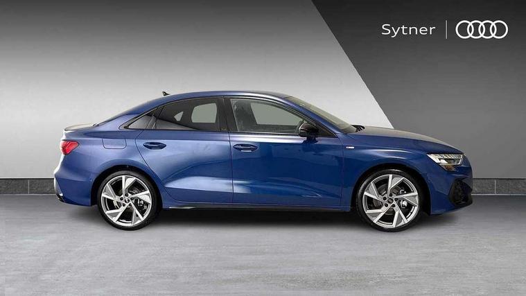 Adjustable speed limiter, Audi drive select, Audi smartphone interface with app store includes wireless Apple carplay, Android auto and Amazon alexa integration, Audi virtual cockpit plus - 12.3" full HD resolution dynamic digital instrument cluster, Automatic start/stop system with recuperation, Bluetooth interface, Camera based traffic sign recognition, Collision avoidance assistant, Cruise control, Distraction and Fatigue warning, e-Call (emergency call), Electromechanical power speed sensitive steering, Emergency assist, Lane departure warning system, MMI Navigation Plus with high resolution 10.1" colour touch screen display, Park Assist with parking system Plus, Service indicator, Trip computer, Voice control system with natural language interaction, Sports suspension, Audi Phonebox light with wireless charging, Audi sound system - 10 loudspeakers including centre loudspeaker and subwoofer, DAB Digital radio, USB ports with charging function in the rear, Acoustic glass windscreen, All weather light, Anthracite grey Audi rings (front and rear), Audi beam uses LEDs to project the Audi logo onto the ground as you exit your A3, Auto dimming frameless rear view mirror, Automatic dynamic range control, Black accents front and rear bumpers, Black accents in the area of the Audi single frame grille, Black accents window trims strips, Dipped beam, main beam, position light and turning light, Electrically adjustable/heated/folding/auto dimming door mirrors with integrated LED indications + kerb view function for passenger side, Exterior model badging, Front and rear side air inlets in grained matt black with dark liquid chrome frame, Front electric windows, Heat insulating glass windscreen, Illuminated door sills with aluminium inserts at the front with S logo, Intersection light, LED 3rd brake light, LED brake lights, LED daytime running x3, LED headlights with LED rear lights and dynamic rear indicators, LED rear number plate lights, LED reverse light, LED tail lights, Light and rain sensors, Manoeuvring light, Motorway light, Privacy glass - dark tinted rear window, rear door and side windows, Rear boot, Rear diffuser and grill in grained matt black with inlay in dark liquid chrome, Rear electric windows, Rear side wing doors, Static Cornering lights, 12V socket and storage compartment in front centre console, 3 seat bench in 2nd row, 3 spoke flat bottomed leather multifunction sport steering wheel with gear shift paddles, 3-zone deluxe automatic air conditioning, 4 way electrically adjustable lumbar support for driver and front passenger, 40/20/40 split folding rear seat bench, Black cloth headlining, Black front and rear floor mats, Front and rear centre armrest in artificial leather with contrasting stitching on armrests and instrument panel, Front and rear headrests, Heated front seats, Height and reach adjustable steering wheel, Manual boot compartment lid, Manually adjustable front seats, Rear centre armrest with cupholder, S badging on the steering wheel, Seat side bolsters, Single front passenger seat, Stainless steel pedals and front footrest in black, Twin leather upholstery with front sports seats S embossed logo, Aluminium interior elements pack - A3, 3x3 point rear seat belts, Driver and front passenger airbag with passenger airbag deactivation, Electronic Stabilisation Control (ESC) including ABS, ASR and EDL, First aid kit with warning triangle and 2 safety vests, Front side airbags with head airbags and interaction airbag, Hill hold assist, Pre-sense front with pedestrian and cyclist detection, Seatbelt monitoring, Tyre pressure loss indicator, Anti theft alarm, Anti-theft wheel bolts, Electronically operated child locks, Immobiliser, Remote central locking with safelock, Black dashboard,
