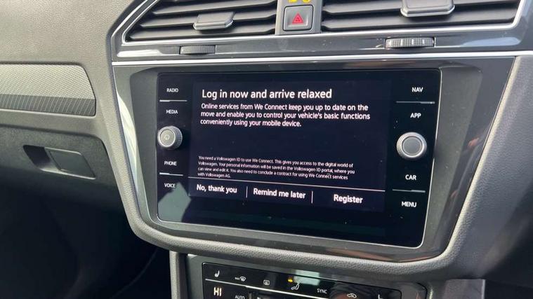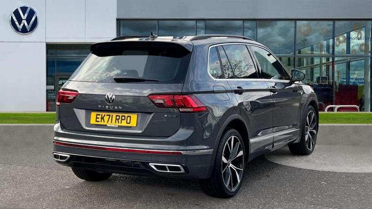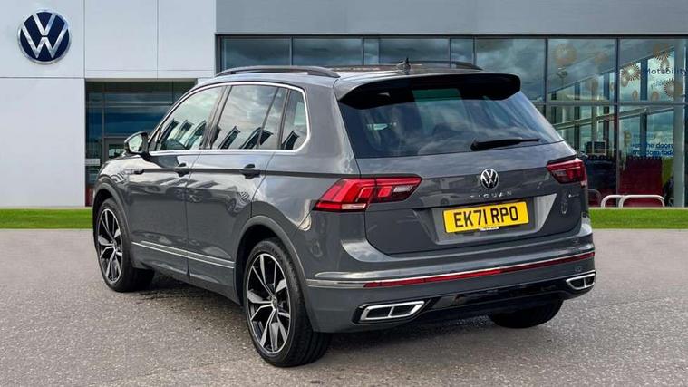 Adaptive cruise control ACC stop and go including speed limiter, App-Connect incl. App-Connect Wireless for Apple CarPlay and Android Auto, Bluetooth phone integration system, Digital Cockpit Pro - Active info display, Distance control assist, Driver alert system, Driver profile selection, Dynamic road sign display, eCall emergency call system, Electromechanical speed sensitive power steering, Engine start/stop button, Lane keeping system Lane Assist, Lights on warning, Multifunction front facing camera, Outside temperature display, Premium multifunction display with multi colour display, Remote control boot opening, Rev counter, Revision / skills operating concept travel assistant, Service interval indicator, Speed limit display, Start/stop system with regenerative braking, Trip computer, Warning sound and light for doors and tailgate open, All wheel drive - 4Motion, Battery regeneration during braking, XDS electronic differential lock for improved traction and handling, 2 USB-C ports in the front, 1 USB-C charging socket on the center console in the rear, Diversity antenna for FM reception, Radio, SD card slot, Simultaneous pairing of 2 compatible mobile devices, SMS functionality - read, compose and send SMS messages using touch-screen display, Title and cover art display, Auto dimming interior rear view mirror, Automatic headlight control system, Black roof rails, Body colour door handles, Body coloured bumpers in R Line style, Body coloured door mirrors with integrated indicators, Chrome moldings on the side windows, Coming/leaving home lighting function, Dynamic headlight range control, Front and rear electric windows, Heated rear window, High level 3rd brake light, Laminated safety glass windshield, heat and sound insulating, LED rear number plate lights, License plate carrier in front and rear, Poor weather light and cornering light, Privacy glass for rear side windows and rear window, R Line body kit, R Line side sills, Rain sensor windscreen wipers, Rear exhaust tailpipe, Rear fog lamp, Rear side wing doors, Rear spoiler in R style, Rear windscreen washer and wiper with interval delay, Side and rear windows in heat insulating glass, Trailer Stability Programme, Unique R Line badging, Windscreen wipers/ intermittent wipe + 4 position delay, 12V outlet in center console rear and in luggage compartment, 12V outlet in front and tray, 2 cup holders in front, 2 LED front reading lights, 2 LED rear reading lights, 3 bench rear seats in 2nd row, 3 rear headrests, 4 load lashing points, 40:20:40 split folding rear seats, Air Care Climatronic 3 zone automatic climate control with enhanced air filter and controls in the rear, Backrest release for left front seat, Black headlining, Brushed stainless steel pedals and footrest, Carpet mats in front and rear with decorative stitching in Gray, Climate control unit rear with touch function, Door and side trim panel in foam film, insert in leatherette, Front centre armrest, Front footwell illumination, Front seats head restraints (x-adjustment), Height adjustable front seats, Height/reach adjust steering wheel, Instrument lighting white adjustable panel illumination, Interior light with delay, Isofix Preparation 2 Rear child seats, Leather gear knob, Lockable cooled glovebox, Luggage compartment lighting, Luggage net, Rear bench seat asymetrically split folding, longitudinally movable and folding with load-through hatch and center armrest, Remote unlocking for rear seat backrest, Removable luggage cover, Removable rear headrests, Safety optimised front head restraints, Single front passenger seat, Sliding/reclining rear seats, Standard rear seat release, Storage compartment in driver's door, Storage compartment in passenger's door, Storage compartment in rear doors, Storage compartments in luggage area left and right, Storage tray on dashboard, Sun visors with illuminated vanity mirrors, Top front comfort seats, Variable boot floor, height adjustable and removable, Ambience pack - Tiguan R Line, Driver assistance pack plus - Tiguan DSG, Park assist pack - Tiguan, 3 point seat belt for centre rear seats, 3 point seat belts with seat belt pretensioners for the outer rear seats, Active bonnet, Curtain airbags for front and rear passengers, Driver/Front Passenger airbags, Drivers knee airbag, Electronic parking brake with auto hold, Electronic Stability Control with driver steering recommendation, ABS, ASR, EDL, EDTC and trailer stabilization, Front assist with autonomous emergency braking (for Adaptive Cruise Control ACC up to 130 mph), Front disc brakes, Front passenger airbag deactivation, Front side airbags, Height adjustable front 3 point seatbelts + pretensioners, Hill hold control, Manual child proof rear door locks, Pedestrian monitoring system, Power assisted brakes, Proactive passenger protection system in combination with front assist, Rear disc brakes, Rigid safety cell with front and rear crumple zones, Two tone horn, Warning sound and light for front seat belts if unfastened, Anti theft alarm system with interior monitoring, backup horn and towing protection, Anti theft wheel bolts, Electronic engine immobiliser, 20" Misano black with diamond turned surface alloy wheels with Airstop tyres, Tool kit,