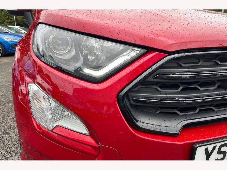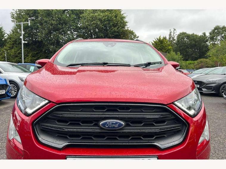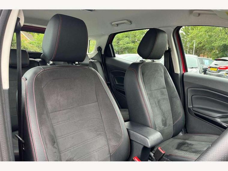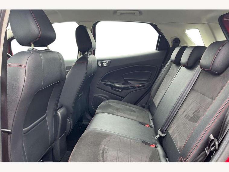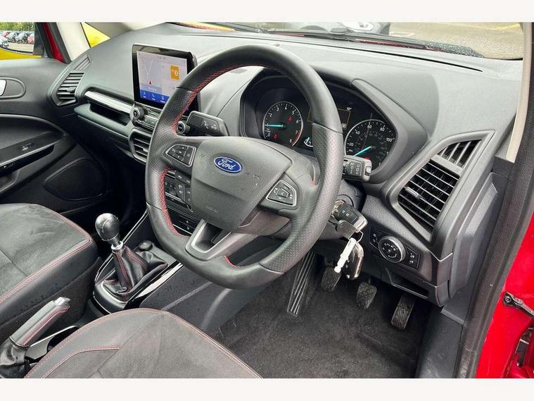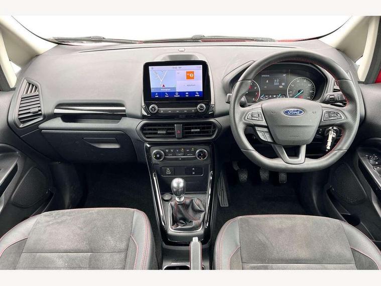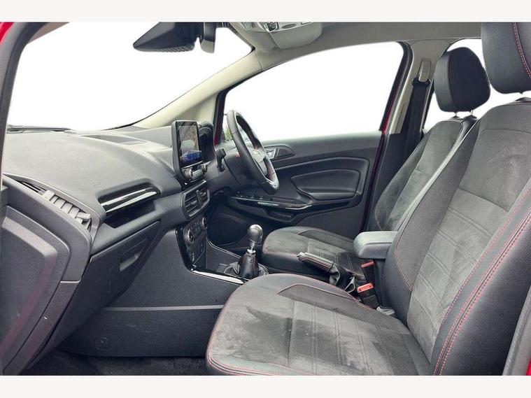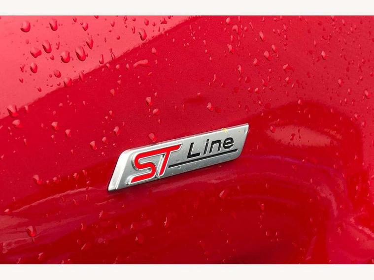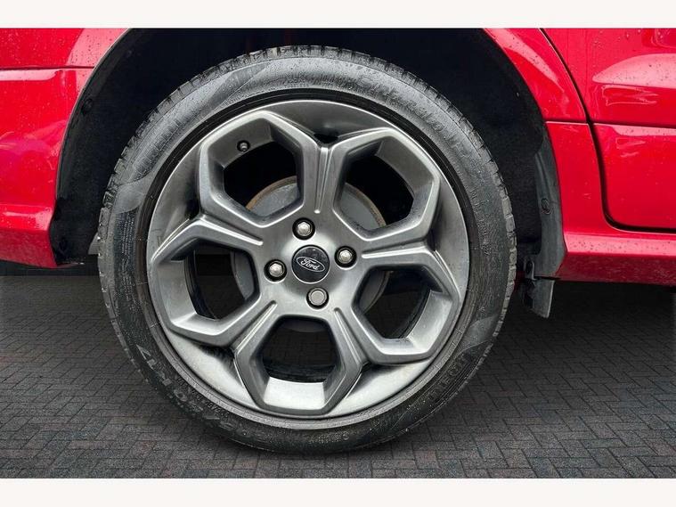Cruise control, e-Call (emergency call), Easy fuel capless refuelling system, Ford SYNC 3 nav system with DAB radio, 8" screen, emergency assistance, Apple car play/Android auto, 2x USB, 6 speakers, Ford pass connect, Intelligent speed limiter, PAS, Rear parking sensors, Rear view camera, Traffic sign recognition, Trip computer, Sports suspension, Steering wheel mounted audio controls, Auto dimming rear view mirror, Automatic front wipers, Automatic headlights, Black roof rails, Body colour door handles, Body coloured bumpers, Chrome lower window surround, Electrically adjustable and heated door mirrors, Front fog lights, Front grille bars and surround in black, Headlight levelling control, Large rear roof spoiler, LED day running lights, LED third brake light, Power front and rear windows, Puddle lights, Quick-clear heated windscreen, Rear side wing doors, Rear wiper, ST Line body styling kit - Black headlamp bezel, front and rear sport bumpers, body colour lower door claddings, 12V socket in front and rear, 3 seat bench in 2nd row, 60/40 split rear seats, Ambient lighting, Centre console with sliding front armrest, Cooled glovebox, Courtesy lights with map reading light, Driver seat height/lumbar adjust, Driver's side glovebox, Driver/passenger sunvisors and lidded vanity mirrors, EATC - Electronic Auto Temperature control, Folding grab handles, Front head restraints, Front seat back map pockets, Illuminated glovebox, Illuminated luggage compartment, Isofix system on outer rear seats, Luggage compartment carpet, Neosuede/Partial sensico leather upholstery, Overhead console with sunglasses holder, Rake adjustable rear seats, Reach + rake adjustable steering column, Rear headrests, Sensico trimmed steering wheel, handbrake and gearshift gaiter with red stitching, Single front passenger seat, ST-Line Front floor mats with red stitching, Stainless steel sports pedals, Storage drawers under front seats, Tie down hooks, Variable boot floor, 3x3 point rear seatbelts, ABS, Autonomous emergency braking, Child locks on rear doors, Curtain airbags, Driver airbag, Drivers knee airbag, Electronic Stability Programme with hill launch assist, Front passenger airbag deactivation, Front side airbags, Passenger airbag, Pre collision assist system with AEB, Seatbelt reminder for driver and front passenger, Traction control, Tyre pressure monitoring system, Immobiliser, MyKey system, Remote central locking, Thatcham 1 volume sensing alarm, Low rolling resistance tyres, Tyre inflation kit,