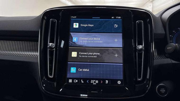 12.3" Progressive Driver Display, 360 degree surround view parking camera with side proximity sensors, 9" centre console portrait touch screen, Adjustable steering wheel force, Apple carplay (wired), Bluetooth handsfree system, Driver alert control, Driver assistance (pilot assist and adaptive cruise control), Driver awareness - Blind spot information system with steer assist, cross traffic alert with autobrake and rear collision warning and mitigation, E-call, Google automotive services - Enabled entertainment apps, navigation with google maps, voice recognition with google assistant, Hands free power tailgate, Intelligent speed assistance, Lane keeping aid, Oncoming Lane Mitigation, Speed sensitive steering, Volvo cars services with app - Driving journal, emergency and breakdown call, engine remote start, remote door locking/unlocking and vehicle dashboard, Wireless/Inductive Mobile Phone Charging, Automatic transmission with start/stop and manual change functions, Dynamic chassis, DAB Digital radio, Premium Sound by Harman Kardon, Dolby Pro Logic II Surround Sound, Dirac Unison, 12 speakers/600W and subwoofer, Steering wheel mounted remote controls, Active bending pixel LED headlights with adaptive shadow technology, Active high beam incorporating daytime running lights, Adaptive brake lights with high level LED brake lights, Auto dimming feature for exterior door mirrors, Auto dimming interior mirror, Automatic headlamp levelling, Dark tinted windows - rear side windows and rear screen, Front aluminium tread plates, Front and rear electric windows, Headlight cleaning system, High gloss black front and rear skid plate, High gloss black front bumper deco, High gloss black mesh front grille with high gloss black surround, High gloss black window trim, Home safe and approach lighting, Integrated roof rails in high gloss black, LED front fog lights with cornering function, Power glass tilt and slide panoramic sunroof with sun curtain, Puddle lights, Rain sensor with automatic windscreen wiper activation, Rear side wing doors, Rear wiper, Roof antenna, Roof spoiler, Visible VIN plate, 12V socket in front tunnel console and luggage compartment, 2-Zone electronic climate control with CleanZone air quality system and pollen filter, 3 seat bench in 2nd row, 3 Spoke tailored steering wheel with chrome trim, 60/40 versatile split folding rear seat, A-pillar parking ticket holder, Centre console cupholders and storage, Flexible load floor and grocery bag holder, Floor mats, Front cabin courtesy lights, Front door pocket, front cupholder, ambient front door, rear reading, rear courtesy, instrument panel and tailgate lighting, Front footwell illumination, Front headrests, Front reading lights, Front seat cushion extensions, Front side step illumination (under door), Glovebox bag hook, Heated front seats, Height/reach adjustable steering column, High gloss centre tunnel deco, Illuminated glovebox, Illuminated luggage compartment, Illuminated vanity mirrors + ticket holder, Integrated waste bin, Isofix attachments on outer rear seats, Load cover, Load protection net, Multi directional lumbar support for driver and passenger seat, Power driver seat with memory + exterior mirrors memory, Power folding rear headrests, Power passenger seat, Rear armrest with cupholders, Single front passenger seat, Underfloor cargo storage, Climate pack without heated front seats - XC40, 3x3 point rear seatbelts, City safety with steering support with Pedestrian + cyclist + front collision warning with full auto brake and rear auto brake, Driver and passenger airbags, Drivers knee airbag, Electronic parking brake with auto hold, First aid kit, Front and outer rear seatbelt reminder and pretensioners, Front seats SIPS airbags, Hill descent control, Hill start assist, Inflatable curtain, Passenger airbag cut-off device, Power child locks on rear doors, Road sign information display, Run off Road Protection, SIPS (Side Impact Protection System), Slippery road and hazard light alert, Stability and Traction Control with Spin control, Engine Drag Control and Corner Traction Control, Tyre pressure monitoring system, Vehicle deceleration control with Anti-lock Brake System, Electronic Brake Distribution and Emergency Brake Assist, Warning triangle, WHIPS whiplash protection system - front, 2 x Key integrated remote control central locking including with deadlocking system and auto open/close windows and sunroof, Anti-theft alarm including immobiliser/volume sensor + level sensor, Keyless drive includes keyless entry and keyless start, Locking wheel nuts,