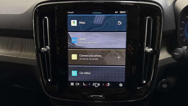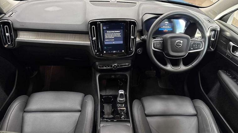 12.3" Progressive Driver Display, 360 degree surround view parking camera with side proximity sensors, 9" centre console portrait touch screen, Adjustable steering wheel force, Android auto (Wired), Apple carplay (wired), Bluetooth handsfree system, Driver alert control, Driver assistance (pilot assist and adaptive cruise control), Driver awareness - Blind spot information system with steer assist, cross traffic alert with autobrake and rear collision warning and mitigation, E-call, Front park assist, Google automotive services - Enabled entertainment apps, navigation with google maps, voice recognition with google assistant, Hands free power tailgate, Intelligent speed assistance, Lane keeping aid, Oncoming Lane Mitigation, Rear park assist, Speed sensitive steering, Volvo cars services with app - Driving journal, emergency and breakdown call, engine remote start, remote door locking/unlocking and vehicle dashboard, Wireless/Inductive Mobile Phone Charging, Automatic transmission with start/stop and manual change functions, Dynamic chassis, DAB Digital radio, Premium Sound by Harman Kardon, Dolby Pro Logic II Surround Sound, Dirac Unison, 12 speakers/600W and subwoofer, Steering wheel mounted remote controls, Active bending pixel LED headlights with adaptive shadow technology, Active high beam incorporating daytime running lights, Adaptive brake lights with high level LED brake lights, Auto dimming feature for exterior door mirrors, Auto dimming interior mirror, Automatic headlamp levelling, Dark tinted windows - rear side windows and rear screen, Front aluminium tread plates, Front and rear electric windows, Headlight cleaning system, High gloss black front and rear skid plate, High gloss black front bumper deco, High gloss black mesh front grille with high gloss black surround, High gloss black window trim, Home safe and approach lighting, Integrated roof rails in high gloss black, LED front fog lights with cornering function, Power glass tilt and slide panoramic sunroof with sun curtain, Puddle lights, Rain sensor with automatic windscreen wiper activation, Rear side wing doors, Rear wiper, Roof antenna, Roof spoiler, Visible VIN plate, 12V socket in front tunnel console and luggage compartment, 2-Zone electronic climate control with CleanZone air quality system and pollen filter, 3 seat bench in 2nd row, 3 Spoke tailored steering wheel with chrome trim, 60/40 versatile split folding rear seat, Centre console cupholders and storage, Flexible load floor and grocery bag holder, Floor mats, Front cabin courtesy lights, Front door pocket, front cupholder, ambient front door, rear reading, rear courtesy, instrument panel and tailgate lighting, Front footwell illumination, Front headrests, Front reading lights, Front seat cushion extensions, Front side step illumination (under door), Glovebox bag hook, Heated front seats, Height/reach adjustable steering column, High gloss centre tunnel deco, Illuminated glovebox, Illuminated luggage compartment, Illuminated vanity mirrors + ticket holder, Integrated waste bin, Isofix attachments on outer rear seats, Load cover, Load protection net, Multi directional lumbar support for driver and passenger seat, Power driver seat with memory + exterior mirrors memory, Power folding rear headrests, Power passenger seat, Rear armrest with cupholders, Single front passenger seat, Underfloor cargo storage, Climate pack without heated front seats - XC40, 3x3 point rear seatbelts, City safety with steering support with Pedestrian + cyclist + front collision warning with full auto brake and rear auto brake, Driver and passenger airbags, Drivers knee airbag, Electronic parking brake with auto hold, First aid kit, Front and outer rear seatbelt reminder and pretensioners, Front seats SIPS airbags, Hill descent control, Hill start assist, Inflatable curtain, Passenger airbag cut-off device, Power child locks on rear doors, Road sign information display, Run off Road Protection, SIPS (Side Impact Protection System), Slippery road and hazard light alert, Stability and Traction Control with Spin control, Engine Drag Control and Corner Traction Control, Tyre pressure monitoring system, Vehicle deceleration control with Anti-lock Brake System, Electronic Brake Distribution and Emergency Brake Assist, Warning triangle, WHIPS whiplash protection system - front, 2 x Key integrated remote control central locking including with deadlocking system and auto open/close windows and sunroof, Anti-theft alarm including immobiliser/volume sensor + level sensor, Keyless drive includes keyless entry and keyless start, Locking wheel nuts,
