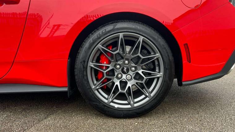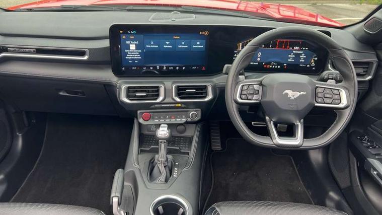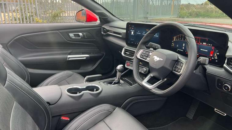 12" digital LCD instrument cluster, Adaptive cruise control with adjustable speed limiter, Apple car play/Android Auto, Bluetooth connectivity with voice control, Electric power steering, Emergency services call system, Ford pass connect embedded modem, Fully customisable 13.2" Touchscreen with wireless smartphone integration, FordPass connect & connected navigation, Lane keeping aid with lane keeping assist, Oil pressure gauge, Rear view camera with rear parking sensors, Selectable driving modes - normal, mymode, snow/wet, sport+, track and drag mode, Service interval indicator, SYNC Emergency Assistance, Track apps with accelerometer technology, Trip computer, Wireless charging and USB charging port, Fully independent front and rear suspension, Limited slip differential, Bang & Olufsen 12-speaker surround sound audio system, DAB Digital radio, USB connection, 3rd brake light, Active exhaust system with quad tailpipes, Auto dimming rear view mirror, Auto high beam, Automatic headlights, Automatic rain sensing wipers, Body colour bumpers, Bonnet air intake, Electric front windows, GT bodykit with black door frame mouldings, GT front grille with vertical power bars, LED daytime running lights, LED rear lights with sequential indicators and welcome / farewell animations, Power-folding door mirrors including blind spot informaion system and mustang logo projection puddle lamps, Rear boot, Silver Triple-LED headlamps with welcome / farewell animation, 6 way power adjustable front seats, Ambient lighting, Cup holders, Electronic automatic temperature control (EATC), Front headrests, Heated leather flat bottom steering wheel, Heated/ventilated and cooled front seats, Illuminated entry system, Individually folding 2 rear seats in 2nd row, Isofix system on outer rear seats, Leather gearknob, Leather/vinyl upholstery, Reach and rake adjustable leather steering wheel with integrated controls, Rear head restraints, Single front passenger seat, Sports seats, 4 seatbelts, ABS, Drivers knee airbag, Dual front airbags, Electronic Line Lock, Electronic Stability Control (ESC) with three settings, ESP, Front side airbags, Performance brake system with brembo 6 piston front callipers and electronic brake prefill, Pre-collision assist with AEB and pedestrian and cyclist detection, Side curtain airbags, Tyre pressure monitor, Ford key free system with power starter button and keyless entry, Immobiliser, Thatcham Cat.1 alarm, Tyre repair kit,
