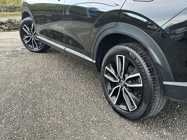 7" TFT instrument cluster, Adaptive cruise control, Adjustable speed limiter, Agile handling assist, Bluetooth hands free telephone connection, Drive modes select (Eco, normal and sport), eCall emergency system, Electric power steering, Emergency stop signalling system, Forward collision warning, Front parking sensors, Honda CONNECT with navigation, 9" touchscreen, AM/FM/DAB/Apple Carplay and android auto, Idle stop, Intelligent speed limiter, Lane departure warning, Lane keep assist, Low speed following, Multi info display, Power meter, Rear parking sensors and rear view camera, Road departure mitigation, Tachometer, Tailgate, Traffic sign recognition, WiFi connectivity, Vehicle stability assist, 'Shark fin' mobile antenna, 2x USB Front socket (1 data & 1 charge), 4 speakers, Steering wheel mounted remote controls, Auto folding door mirrors, Auto high beam, Automatic coming home lighting, Automatic headlights, Automatic rain sensing wipers, Body colour bumpers, Body colour tailgate spoiler, Body coloured door handles, Electric front and rear windows, Electrically adjustable and heated door mirrors, Exclusive styling in lower bumper non painting black, Fog garnish non paint gloss black, lower door garnish bumper skid garnish non paint silver, Front sequential turn, Headlight washers, Heated front windscreen, Heated rear window, High level third brake light, LED daytime running lights, LED headlamps, Low gloss window garnish, Manual headlight levelling, Rear side wing doors, Rear wiper, Red and clean lens LED rear lights, Variable front intermittent wipers, Windscreen shadeband, 3 rear headrests, 3 seat bench in 2nd row, 60/40 split folding rear seat, Ambient interior lighting, Automatic air conditioning, Cargo net hooks, Courtesy lights, Driver's seat height adjustment, Driver/passenger sunvisors with illuminated vanity mirrors, Front and rear map reading lights, Front head restraints, Front seat armrests, Heated front seats, Isofix points, Luggage area under floor storage box, Magic seat flexibility system, Manual height/reach adjust steering wheel, Meter illumination light, Paddle shift controls, Passenger seat back pocket, Rear centre armrest, Rear ventilation, Silver interior door handles, Single front passenger seat, Tonneau cover, Trunk light, 3x3 point rear seatbelts, ABS+EBD+Brake assist, Anti-whiplash front headrests, Auto hold function, Collision mitigation braking system, Collision mitigation throttle control, Deflation detection system, Dual front SRS airbags, Electric child locks, Electronic parking brake, Front and rear curtain airbags, Front and rear safety belts with Emergency Locking Retractor, Front side airbags, Hill descent control, Hill start assist, Low speed safety system, Paddle deceleration control, Passenger SRS airbag cut-off device, Regenerative braking system, Door deadlocks, Honda super locks, Immobiliser, Keyless smart entry with push button start, Remote central locking with 2 remote folding keys, Security alarm, Windows key fob operation, Tyre repair kit,