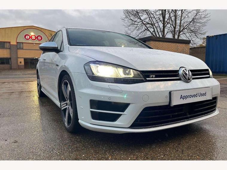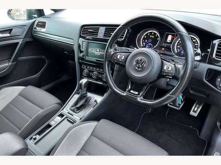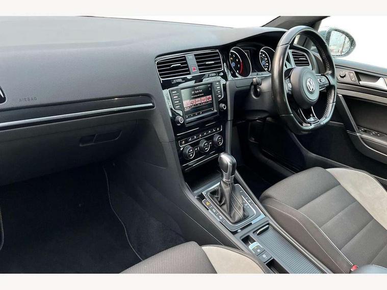 'Lights On' Reminder warning buzzer, Bluetooth Telephone preparation, Brake pad wear indicator warning light, Cruise control + speed limiter, Driver alert system, Driver profile selection, Exterior temperature gauge, Front and rear parking sensors, Instrument cluster in white, Multi function display colour screen, Multifunction computer - Midline, Progressive power assisted steering, Rev counter, Traffic Master traffic alert system, Trip and service interval display, Warning buzzer and light for front seatbelts unfastened, Lowered sports suspension, 8 speakers, Auxiliary input socket, Composition media system with Radio/CD/MP3, DAB Digital radio, iPod adaptor, MDI with USB/iPod connection cables, SD card slot, Auto dimming rear view mirror, Bi-xenon headlights with washers + dynamic curve lighting + LED daytime running lights, Black rear diffuser, Body colour bumpers, Body colour door handles, Body colour rear roof spoiler, Chrome surround for front fog lights, Chrome trimmed radiator grille louvre inserts, Coming/leaving home lighting function, Cornering front fog lights, Door mirror integrated indicators, Dusk sensor + auto driving lights, Electric front windows, Electric rear windows, Electrically adjustable and heated door mirrors, Heat insulated tinted glass 65% light absorbing from B pillar back, Heated rear windscreen, Honeycomb radiator grille - black, Rain sensor, Range adjustable headlights, Rear windscreen washer and wiper with interval delay, Silver roof rails, Twin exhaust tailpipe, Windscreen wipers/ intermittent wipe + 4 position delay, 12V socket in luggage compartment, 3 rear headrests, 3 spoke steering wheel, 4 boot load lashing points, 60/40 split folding rear seat, Air conditioning - 2 zone electronic climate control, Bag hook in luggage compartment, Blue ambient lighting, Courtesy light delay, Cover for storage compartment in centre, Dust/pollen filter, Front + rear carpet mats, Front centre armrest with storage box and rear air vents, Front footwell illumination, Front seat back storage pockets, Gearshift paddles, Grab handles, Height/reach adjust steering wheel, Illuminated door sills, Illuminated vanity mirrors, Isofix preparation for 2 rear child seats, LED reading lights, Load through provision with rear centre armrest and cupholders x2, Lockable, illuminated, cooled glovebox, Luggage compartment cover, removable, Luggage compartment lighting, Multifunction leather steering wheel with leather gear knob/handbrake grip, Stainless steel pedals, Storage compartment in roof console with cover, Storage compartments in doors, Storage drawer under driver's seat, Sun visors, Variable boot floor, height adjustable and removable, White adjustable panel illumination, Mirror pack - Golf, Styling pack - Golf R/R-Line, Winter pack - Golf (when ordered with Bi-Xenon headlights), 3 point height adj front seatbelts + pretensioners, 3 rear 3 point seatbelts, ABS, Black brake calipers, Child locks on rear doors, Door open warning reflectors, Driver/Front Passenger airbags, Driver/Passenger whiplash optimised head restraints, Drivers knee airbag, Electronic parking brake with auto hold, ESP with EDL + ASR, Front and rear curtain airbags, Front passenger airbag deactivation, Front side airbags, Fuel cut off safety device, HBA (Hydraulic Brake Assist), Pre crash system, Tyre pressure monitor, Warning triangle and first aid kit holder, Alarm with interior protection, Electronic engine immobiliser, Remote central locking with 2 remote folding keys, Carbon touch decorative inserts, Chrome air vent surrounds, Chrome-plated light switch surround, Cyclone decorative inserts, Gloss black decorative inserts in dash, Space saver spare wheel,