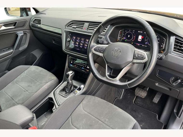 Adaptive cruise control ACC stop and go including speed limiter, App-Connect incl. App-Connect Wireless for Apple CarPlay and Android Auto, Bluetooth phone integration system, Digital Cockpit Pro - Active info display, Distance control assist, Driver alert system, Driver profile selection, Dynamic road sign display, eCall emergency call system, Electric tailgate opening, Electromechanical speed sensitive power steering, Lane keeping system Lane Assist, Lights on warning, Multifunction front facing camera, Outside temperature display, Premium multifunction display with multi colour display, Revision / skills operating concept travel assistant, Service interval indicator, Start/stop system with regenerative braking, Tailgate/trunk lid unlocking from outside, Warning sound and light for doors and tailgate open, Battery regeneration during braking, Diesel particulate filter, Misfuel prevention device for diesel engine, XDS electronic differential lock for improved traction and handling, 2 USB-C ports in the front, 1 USB-C charging socket on the center console in the rear, Diversity antenna for FM reception, Radio, SD card slot, Simultaneous pairing of 2 compatible mobile devices, SMS functionality - read, compose and send SMS messages using touch-screen display, Title and cover art display, Auto dimming interior rear view mirror, Automatic headlight control system, Body colour door handles, Body coloured bumpers, Coming/leaving home lighting function, Dynamic headlight range control, Front and rear electric windows, Heated rear window, High level 3rd brake light, IQ light with advanced high beam control and dynamic light assist for LED matrix headlamps + Dark red rear combination lamp in LED technology, Laminated safety glass windshield, heat and sound insulating, LED rear number plate lights, LED separate daytime running light, Poor weather light and cornering light, Privacy glass for rear side windows and rear window, Rain sensor windscreen wipers, Rear exhaust tailpipe, Rear fog lamp, Rear windscreen washer and wiper with interval delay, Side and rear windows in heat insulating glass, Tilting and sliding panoramic sunroof with rear panoramic sunroof, Trailer Stability Programme, Windscreen wipers/ intermittent wipe + 4 position delay, 12V outlet in center console rear and in luggage compartment, 2 cup holders in front, 2 LED front reading lights, 2 LED rear reading lights, 3 rear headrests, 4 load lashing points, 40:20:40 split folding rear seats, Air Care Climatronic 3 zone automatic climate control with enhanced air filter and controls in the rear, Backrest release for left front seat, Climate control unit rear with touch function, Door and side trim panel in foam film and woven fabric, Front + rear carpet mats, Front footwell illumination, Front seats head restraints (x-adjustment), Height adjustable front seats, Height/reach adjust steering wheel, Instrument lighting white adjustable panel illumination, Interior light with delay, Isofix Preparation 2 Rear child seats, Leather gear knob, Lockable cooled glovebox, Luggage compartment lighting, Rear bench seat asymetrically split folding, longitudinally movable and folding with load-through hatch and center armrest, Remote unlocking for rear seat backrest, Removable luggage cover, Safety optimised front head restraints, Sliding/reclining rear seats, Standard rear seat release, Storage compartment in driver's door, Storage compartment in passenger's door, Storage compartment in rear doors, Storage compartments in luggage area left and right, Storage tray on dashboard, Sun visors with illuminated vanity mirrors, Variable boot floor, height adjustable and removable, Ambience pack - Tiguan, Chrome pack - Tiguan, Easy open and close pack with safelock - Tiguan, 3 point seat belt for centre rear seats, 3 point seat belts with seat belt pretensioners for the outer rear seats, Active bonnet, Curtain airbags for front and rear passengers, Driver/Front Passenger airbags, Drivers knee airbag, Electronic parking brake with auto hold, Electronic Stability Control with driver steering recommendation, ABS, ASR, EDL, EDTC and trailer stabilization, Front assist with autonomous emergency braking (for Adaptive Cruise Control ACC up to 130 mph), Front disc brakes, Front passenger airbag deactivation, Front side airbags, Height adjustable front 3 point seatbelts + pretensioners, Hill hold control, Pedestrian monitoring system, Proactive passenger protection system in combination with front assist, Rear disc brakes, Rigid safety cell with front and rear crumple zones, Two tone horn, Warning sound and light for front seat belts if unfastened, Anti theft alarm system with interior monitoring, backup horn and towing protection, Anti theft wheel bolts, Central locking system with safelock radio remote control and 2 remote control folding keys, Electronic engine immobiliser, Tool kit,