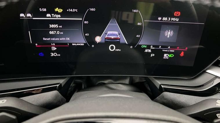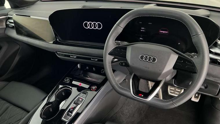 Adaptive cruise assist plus with steering intervention, Advanced driver attention and fatigue montior, Audi application store, Audi assistant, Audi connect emergency call and service, Audi drive select, Audi smartphone interface, Audi virtual cockpit plus with 11.9" OLED colour display, Automatic start/stop system with coasting functionality, Camera based traffic sign recognition, Garage door opener, Intersection assist, Lane change assistant with exit warning system, rear cross traffic alert and rear turn assist, Lane departure warning with emergency assist, MMI 10.9" front passenger touch display, MMI navigation plus with high resolution 14.5" OLED touchscreen colour display, Park assist plus, Parking system plus with 360 display, Progressive steering with servotronic, Swerve assist and turn assist, Top view camera, Traffic sign based speed limiter, Quattro with sport differential, S sports suspension with damper control lowered by 20mm, 2 USB-C ports in both the front and rear, DAB digital radio reception, Smartphone compartment with wireless charging, Aluminium window trims, Auto dimming rear view mirror, Black door handles, Black roof rails, Dark chrome-plated tailpipe trims, Digital OLED tail lights including communication light, Door mirrors - electrically adjustable, heated, folding and auto dimming on both sides, Front and rear electric windows, Front door sill trims with aluminium inlays, illuminated with 'S' logo, Headlight cleaning system, High beam assist, LED daytime running lights, LED third brake light, Matrix LED headlights with eight light signatures selectable via the MMI or the myAudi app, Panoramic glass roof with switchable transparency, Privacy glass, Rear and side windows with heat insulating glass, Rear side wing doors, Rear wash/wipe, Red S rhombus badging with S lettering on rear, S bumpers, radiator grille and diffuser in titanium matt black and diffuser insert in matt silver, White rhombus logo projection light in exterior mirrors, Windscreen with acoustic glazing, 3 rear headrests, 3 seat rear bench, 3 spoke leather steering wheel with multi-function buttons with touch control, flattened on top and bottom, with S badging and contrast stitching, 3-zone automatic climate control, 40:20:40 split folding rear seat bench with centre armrest and cup holders, Comfort front centre armrest, Electric steering wheel adjustment, Electrically adjustable front seats, Front and rear floor mats, Front sport seats plus with integrated headrest and S embossed logo, Headlining in black cloth, Heated front and outer rear seats, Heated steering wheel, i-Size child seat mounting on the front passenger side and outer rear seats, i-Size and top tether on the outer rear seats, Luggage compartment lid, electrically opening and closing, Memory function for driver seat, Pearl Nappa leather upholstery, Pneumatically adjustable lumbar support, Single front passenger seat, Stainless steel pedals and footrest, Steering wheel grips in perforated leather and shift paddles, Ventilation seat and massage function for the driver and front passenger, Black styling package plus - A5, Sound and vision pack - A5, 3x3 point rear seat belts, Acoustic vehicle alerting system, Convenience key with safelock, Driver airbag, Electric child safety locks, First aid kit with warning triangle and vests, Front emergency brake assist, Front passenger airbag, Front passenger airbag deactivation, Hill hold assist, Occupant detection in rear seat area, Proactive passenger protection system for front, sides and rear, Red brake calipers, Seat belt monitoring with rear seat occupant reminder, Side airbags in front and rear with head airbag system and front interaction airbag, Tyre pressure loss indicator, Anti theft alarm, Anti-theft wheel bolts, Keyless Go, Accent surfaces and control buttons in gloss black, Black dashboard with contrast stitching, Softwrap in Dinamica with contrast stitching, Upper and lower interior elements in dinamica microfiber, 20" 5 twin spoke design Audi Sport alloy wheels in metallic black and gloss turned finish, Tyre repair kit,