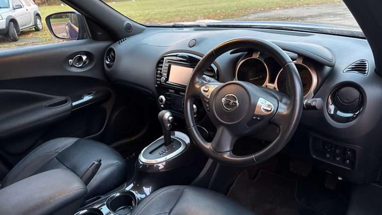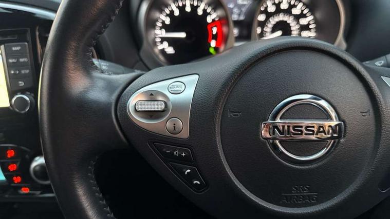 Around View Monitor, Blind spot monitoring, Bluetooth system, Colour rear view camera, Cruise control + speed limiter, Door/boot open warning light, Dusk sensor, Electric speed sensitive power steering, Exterior temperature gauge, Lane departure warning system, Low fuel level warning light, Moving object detection, Nissan connect sat nav system, Push button starter, Service interval indicator, Trip computer, 6 speakers, Aux input, Bose personal sound system, DAB Digital radio, Steering wheel mounted audio controls, Stereo radio/CD player and MP3 facility, USB port, Automatic headlights, Body colour bumpers, Body colour door handles, Body colour door mirrors, Dark chrome grille, Electric door mirrors, Electric folding door mirrors, Electric front/rear windows, Heated door mirrors, Heated rear windscreen, LED daytime running lights, LED front fog lights, LED indicators in door mirrors, Privacy glass, Rain sensor windscreen wipers, Rear wiper, 12V socket, 3 height adjustable rear headrests, 60/40 split folding rear seat, Climate control, Driver/passenger reading lights, Driver/passenger sunvisors and vanity mirrors, Front armrest, Front cupholders x 2, Front door pockets with bottle holders, Front head restraints, Front seat belt pre-tensioners with load limiters, Gear shift indicator, Glovebox, Heated front seats, Height adjustable driver's seat, Interior courtesy lights, Internal chrome door handles, Isofix child seat preparation, Leather steering wheel and gear knob, Leather upholstery, Luggage area under floor storage box, Map reading lamp, Passenger seat back pocket, Pollen filter, Rear tonneau cover integrated into tailgate, Sports seats, Steering wheel rake adjustment, ABS + EBD + EBA, Child locks on rear doors, Driver and passenger airbags, Driver and passenger side airbags, ESP + traction control, Front and rear curtain airbags, Height adjustable front seatbelts, Passenger airbag deactivate switch, Three 3 point rear seatbelts, Tyre pressure monitoring system, VDC Dynamic Vehicle Control, Warning triangle and first aid kit, Alarm, Immobiliser, Intelligent Key, Remote central locking, 17" Urban alloy wheels, Tyre repair kit,