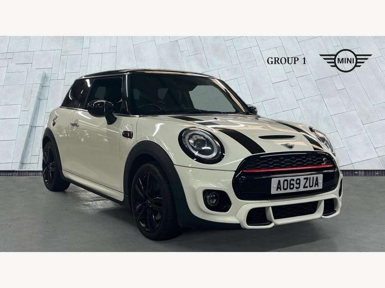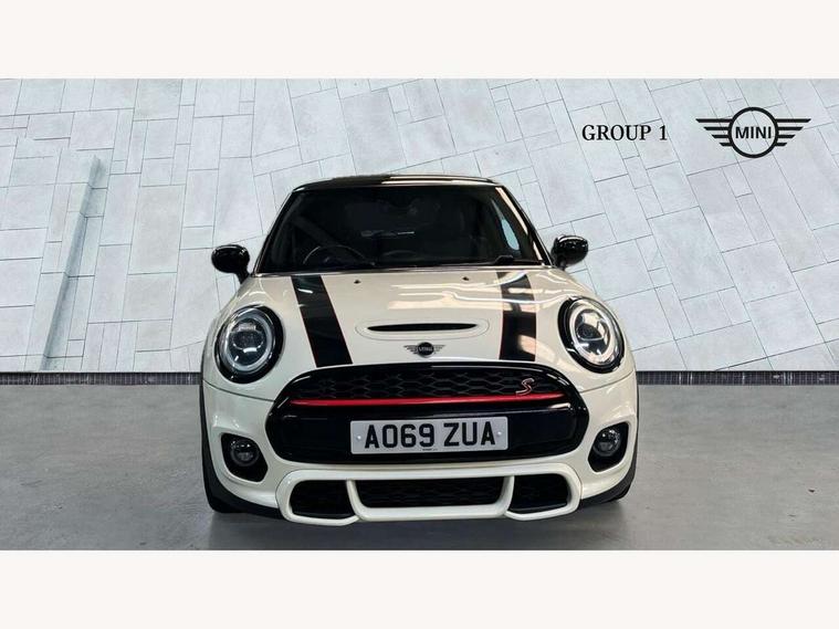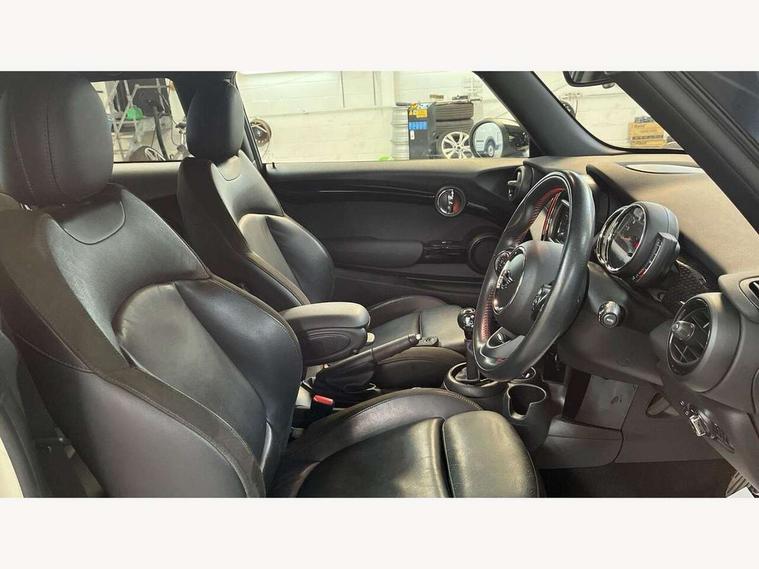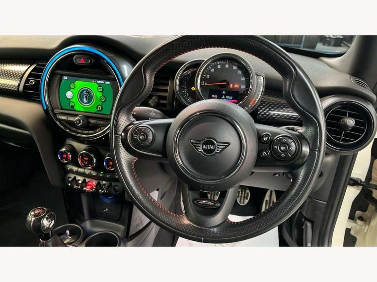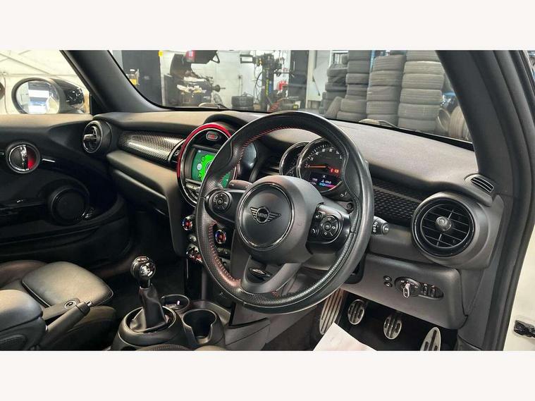 Automatic start/stop function with brake energy recuperation, Compatible mobile phone bluetooth with audio streaming, Electro-mechanical speed dependant steering assistance, Instrument cluster, Mini E-call, MINI TeleServices, On board computer, Service interval indicator, Double Vanos system, Fully variable valve control, High precision injection, Performance Control, 6.5" touchscreen with LED ring, FM tuner and DAB digital radio, Automatic headlight activation switch, Bonnet scoop, Chrome border honeycomb structure radiator grille with S badge, Chrome plated fuel cap, Dynamic brake lights, Electric front+rear windows, Heated rear window, Heated windscreen washer jets, John Cooper Works - aerodynamic kit (front and rear apron, spoiler), front and rear sport bumpers and part-painted side sills with door sill finishers, John Cooper Works rear spoiler, LED headlight with closed ring and daytime driving lights, Metal door sill strips with Cooper S imprint, Model logo Cooper S on right of tailgate, Rain sensor window wipers, Rear fog lights, Rear LED lights with union jack design, Rear window wiper, Side scuttle panel with integrated indicator, Sun/heat protection glass, Two central exhaust tailpipes with chrome finisher, White indicator lenses, 12V Accessory socket in centre console, 4 lashing eyes in luggage compartment, 60/40 split folding rear seat, Anthracite headlining, Chrome interior highlights, Cupholders, Front and rear head restraints, Front and rear isofix with front passenger airbag deactivation, Glove compartment, Height and length steering column adjustment, Interior lighting with 12 basic colours selectable via toggle switch in roof, John Cooper Works leather steering wheel with contrasting stitching in Chilli Red with John Cooper Works logo, John Cooper Works Logo in seat, Leather gearshift lever and handbrake gaiters, LED reading lights, vanity mirror lights, front foot well light and spotlight on front seats, Manual air conditioning, Mechanical seat adjustment, driver seat height adjust, forward/back and front seats backrest, Mini logo projection on floor from drivers exterior mirror, Multifunction steering wheel, Storage compartments in doors, Storage pocket on back of front seats, Sunvisors with vanity mirrors, 3 point seatbelts on all four seats, 6 Airbags - front, side, head and seat belt tensioners, Anti-lock braking system (ABS), DSC - Dynamic Stability Control, Front and rear disc brakes, Hill start assist, Two tone horn, Tyre pressure monitoring system, Alarm system with tilt sensor, monitoring doors, bonnet interior and tailgate, Electronic vehicle immobiliser, Start/stop toggle with keyless go, Tool kit,