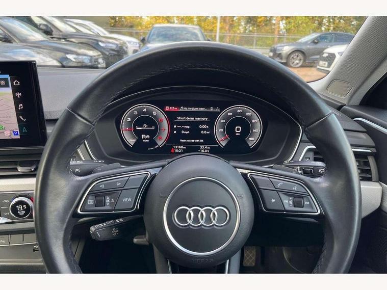 Audi connect safety and service (e-call), Audi connect with Amazon Alexa Integration, Audi drive select, Audi smartphone interface, Audi virtual cockpit, Automatic start-stop system with coasting functionality and efficiency programme, Bluetooth interface, Cruise control system with speed limiter, Electromechanical power steering, Email, calendar and text messages displayed via MMI, MMI Navigation plus with MMI touch includes 10.1" high resolution colour MMI display, 3D map, Power operated tailgate, Voice control system, 54 litre fuel tank, Comfort dynamic suspension, 2 USB charging ports, 8 passive loudspeakers, DAB digital radio reception, Auto dimming rear view mirror, Body colour door handles, Body colour side sill trim, Body coloured door mirrors, Electrically folding auto dimming/adjustable/heated door mirrors with LED side indicators and kerb view function for passenger side, LED headlights and rear lights with LED daytime running lights, LED third brake light, Matt aluminium silver tailpipe trim, Privacy glass, Rain and light sensors, Rear diffuser in matt titanium black with trim strip in matt aluminium silver, Rear side wing doors, Rear wiper, Sport front and rear bumpers with side skirts, Variable intermittent front wash/wipe, Windscreen with acoustic glazing, 3 spoke high multi-function leather sport steering wheel with paddle shift and height and reach adjustable, 4 way electric lumbar support for driver and front passenger, 40/20/40 split folding 3 rear seat bench in 3 parts with rear centre armrest, Deluxe 3 zone electronic climate control, Door sill trims with aluminium inlay, Electric load area cover, Front and rear head restraints, Front centre armrest, Heated front seats, ISOFIX child seat mounting and top tether, Manual seat adjustment, Single front passenger seat, Twin leather upholstery + front sports seats, Black styling pack - A4 Avant Sport Edition/S4 Black edition/S4 Vorsprung, High gloss package - A4, LED Interior light pack - A4/S4, 3 rear seatbelts, 6 airbags - Driver, front passenger, curtain and side windows, Electronic Stabilisation Control (ESC) including ABS, ASR and EDL, Hill hold assist, Multi collision brake assist, Pop-up bonnet for pedestrian protection, Pre sense city, Rear door child safety locks, Seatbelt monitoring, Warning triangle and first aid kit, Anti theft alarm, Anti theft wheel bolts, Central locking, Keyless Go, Aluminium ellipse silver inlays, 18" 10 spoke dynamic design alloy wheels, Tool kit, Tyre repair kit,