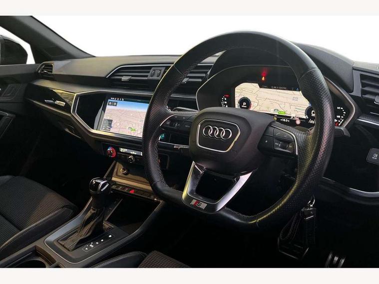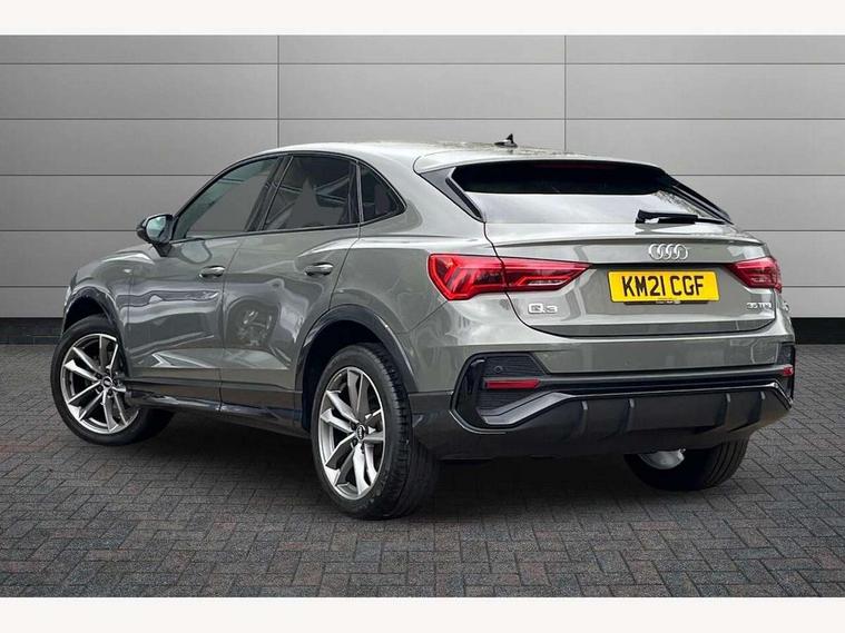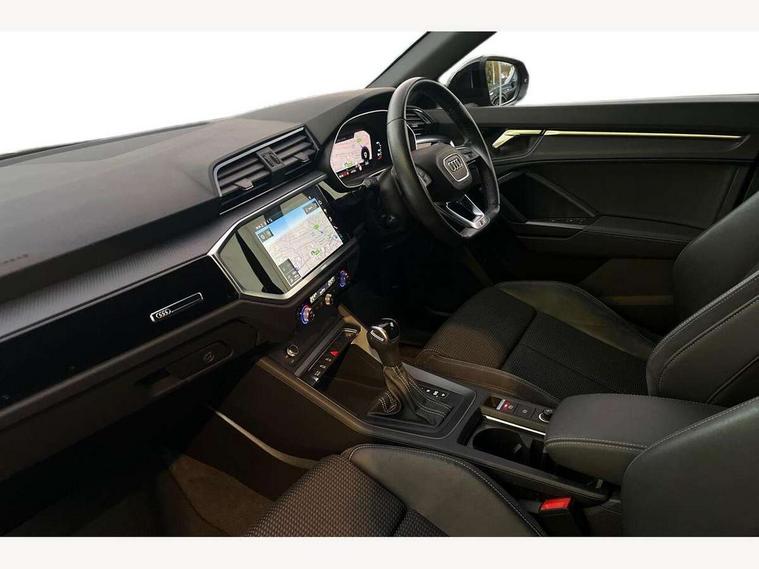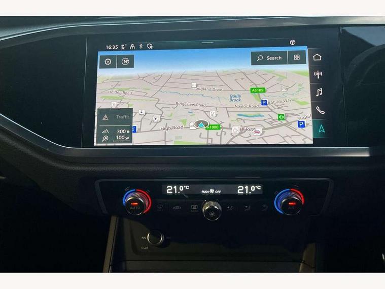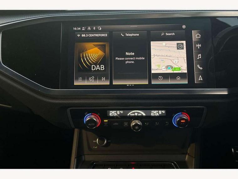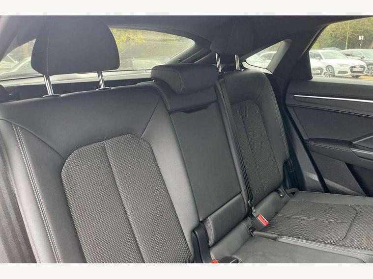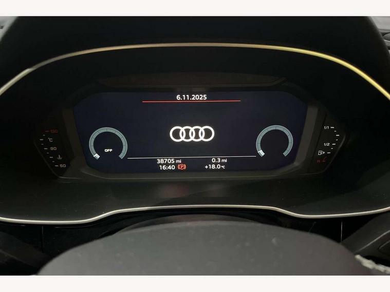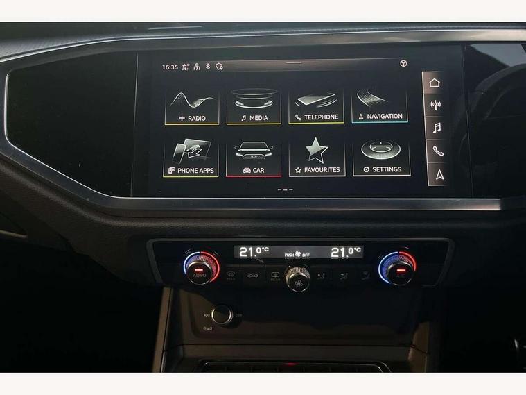 Audi connect safety and service (e-call), Audi drive select, Audi lane departure warning, Audi smartphone interface includes wireless Apple carplay/Android Auto, Audi Virtual Cockpit - 10.25" display, Bluetooth interface, Camera based traffic sign recognition, MMI Navigation Plus with high resolution 10.1 inch touchscreen colour display, Power operated tailgate, Progressive steering, Service interval indicator, Start stop system with recuperation, Voice control system with natural language interaction, 48V Mild hybrid technology, Sports suspension, 2 USB-C ports with charge and data functions, 6 passive loudspeakers, DAB digital radio module, Acoustic windscreen, Auto dimming frameless rear view mirror, Bumpers and underbody protection in contrasting manhattan grey paint finish, Diffuser grille in grained matt black, Diffuser trim in selenite silver, Electrically folding, adjustable and heated door mirrors with integrated LED side indicators and kerb view function for passenger side, Front and rear electric windows, Front fog lights, Front side air inlets in selenite silver, High gloss black finish B and C pillars, LED headlights with LED daytime running lights and dynamic rear indicator, LED rear lights, Privacy glass dark tinted rear and rear-side windows (from B-pillar backwards), Rain and light sensors, Rear underbody protection in matt black, 12V socket in rear centre console, 40:20:40 folding with manual adjustment for 60:40 forwards/backwards position and backrest angle, Adjustable rear seat bench/backrest with centre armrest and cupholder, Black cloth headlining, Dual zone electronic climate control, Front and rear black floor mats with contrast stitching, Front and rear headrests, Front and rear roof module including reading lights, Front centre armrest, Glove compartment lighting, Height and reach adjustable steering wheel, Illuminated door sill trims with S logo, ISOFIX child seat mounting for front passenger with airbag deactivation and outer rear seat including top tether attachment point for outer rear seats, Luggage compartment light, Manual front seats with height adjustment, Perforated leather gearknob, Stainless steel luggage compartment sill finisher, Stainless steel pedals, Tool kit, Black styling pack - Q3, Non smoking pack - Q3, 3x3 point rear seatbelts, 6 airbags - Driver, front passenger, curtain and side windows, Electrically operated child locks on rear doors, Electromechanical parking brake, Electronic stabilisation control including ABS, ASR and EDL, Hill descent control, Hill hold assist, Pre sense basic, Seatbelt monitoring, Tyre pressure warning, Warning triangle and first aid kit, Anti theft alarm, Anti theft wheel bolts, Audi pre-sense front with pedestrain and cyclist recognition, Remote central locking, Black dashboard, Leatherette door armrest, MMI touch colour display in glass look, black with surround in aluminium look, Piano black inlay, Tyre repair kit,