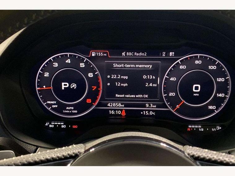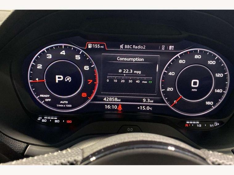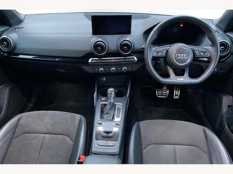 Audi drive select, Audi smartphone interface, Automatic start/stop system with recuperation, Bluetooth interface includes bluetooth audio streaming, MMI - Multi Media Interface control system, MMI SD card Navigation, Power operated tailgate, Progressive steering, Service interval indicator, Voice control system, Audi music interface - apple iPod, apple iPhone, USB storage media, compatible MP3 players, 2 x USB charging points and 1 x Aux-in, CD Drive, DAB digital radio reception, MMI radio plus with 7" colour MMI screen and MMI controller, Black window trims, Chrome exhaust tailpipe, Electrically adjustable and heated door mirrors with integrated LED side indicators, Front and rear electric windows, Front underbody guard and rear diffuser trim in selenite silver, Front windscreen with grey tinted sunband, Headlight washers, Interior mirror, LED headlights with LED rear lights + dynamic rear indicators, LED indicator lights, Rain and light sensors, Rear wiper, S Line body styling - front and rear bumpers, side skirts, radiator grille, rear diffuser insert and front air intakes, 3 spoke flat bottomed high multi-function leather sport steering wheel with gearshift paddles, Black cloth headlining, Black interior styling - decorative trims in black for the centre console and front and rear door pull handles, Floor mats with contrast stitching, Front centre armrest, Front headrests, Front sports seats, Height/reach adjust steering wheel, Illuminated door sill trims with S logo, ISOFIX child seat mounting with top tether and electrically operated child lock, Manual seat adjustment including seat height adjustment for front seats, Stainless steel pedals, Storage compartments - Glovebox, cupholder compartment in centre console, storage compartment in rear centre console, front and rear door pockets, Three rear headrests, Black styling pack - Q2, Connectivity pack - Q2, LED interior lighting pack - Q2, Non smoking pack - Q2, 3x3 point rear seatbelts, 6 airbags - Front, curtain and front side airbags, Electromechanical parking brake, Electronic stabilisation control including ABS, ASR and EDL, Extended and proactive pedestrian protection, Multi collision brake assist, Pre-sense front with pedestrian recognition, Seatbelt monitoring, Tyre pressure warning light, Warning triangle and first aid kit, Anti theft alarm, Anti theft wheel bolts, Central locking system with remote control key, Aluminium interior element, Black Inlay,