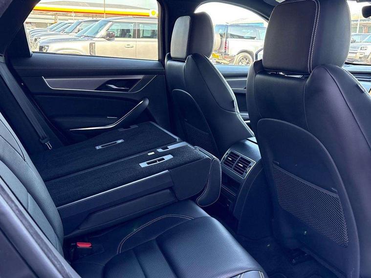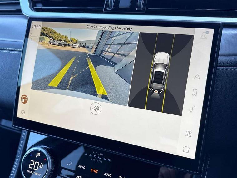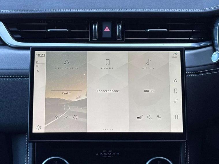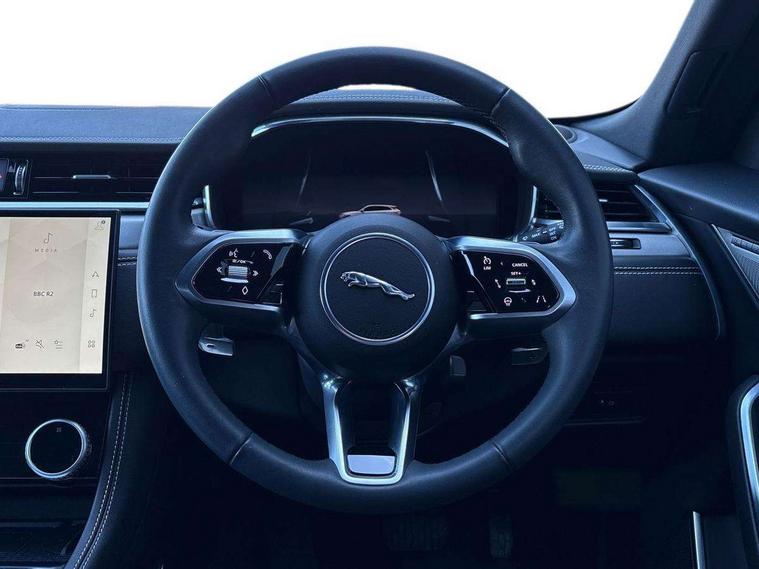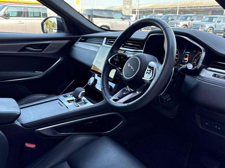 11.4" touchscreen, Android Auto, Apple car play, Bluetooth connectivity, Driver alert system, Driver condition monitor, eCall emergency call system, Eco driving style assistant, Electric power assisted steering, InControl remote, Jaguar Toggle shift selector, Lane departure warning system, Lane keep assist, Outside temperature gauge, Personalisation profile management, Pivi pro connected navigation system with app interface and media storage, Pro services and wifi hotspot, Push button starter, Service interval indicator, Speed proportional steering, Start up sequence with movement in dials and lighting, Traffic sign recognition with adaptive speed limiter, Trip computer, Voice control system, Wireless device charging, 8 speed automatic transmission, All terrain progress control, All Wheel Drive (AWD), Open differential with torque vectoring by braking, AM/FM radio, Bluetooth streaming, DAB Radio (Digital Audio Broadcasting), Dynamic volume control, InControl apps, InControl protect, iPod integration, 3 flash lane change indicators, AHBA and animated directional indicators, Approach Illumination, Auto dimming rear view mirror, Automatic headlights, Electric heated/power fold memory door mirrors with approach lights and auto dimming driver side, Electric windows with one touch open/close and anti trap, F-Pace and R Dynamic badge, Green tinted glass, Heated front windscreen + heated washer jets, Heated rear window with timer, Jaguar script and leaper, LED High level third brake light, LED tail lights, Metal load space scuff plates, Non acoustic front windscreen, R Dynamic badge on side door, Rain sensor windscreen wipers, Rear fog lights, Rear metal tread plates, Rear side wing doors, Rear wiper, Trailer stability assist, Variable front intermittent wipers, 12V power point front, 3 rear headrests, 3 seat bench in 2nd row, Additional power sockets - Two additional USB sockets in rear centre console and one 12V socket in trunk, Air distribution speed, Centre armrest console, Centre console with side storage, Deletion loadspace storage rails, Door sill tread plates, Fold flat front seats, Front centre armrest with storage compartment, Front door storage space, Glovebox finisher with jaguar script, Heated steering wheel, Hooks in loadspace, Illuminated glovebox, Interior front door handles with separate locking switches, ISOFIX on outer rear seats, Jaguar sense, Leather steering wheel, Luggage tie downs in loadspace, Mist sensing, Multifunction steering wheel, Overhead lighting console, Overhead stowage for sunglasses, Passive front head restraints, Premium carpet mats, Rear air vents, Rear armrest with twin cupholders, Rear centre headrest, Rear door storage space, Reversible boot floor, Satin chrome gearshift paddles, Shopping bag hook, Single front passenger seat, Sunvisors with illuminated vanity mirrors, Twin front cupholders with cover, Online Pack with data plan - F-Pace, 355mm front brakes and 325mm rear brakes, 3x3 point rear seatbelts, ABS, All surface progress control (ASPC), Brake pad warning light, DSC - Dynamic Stability Control, Electric parking brake (EPB), Emergency brake assist, Front airbags with passenger seat occupant detector, Front and rear seatbelt reminder, Front side airbags, Full length side window curtain airbag, Hill launch assist, Power operated child locks, Traction control, Tyre pressure monitoring system, Immobiliser, Keyless Start, Locking wheel nuts, Perimeter alarm, Remote central locking, Valet mode,