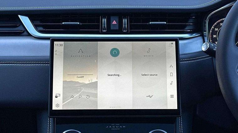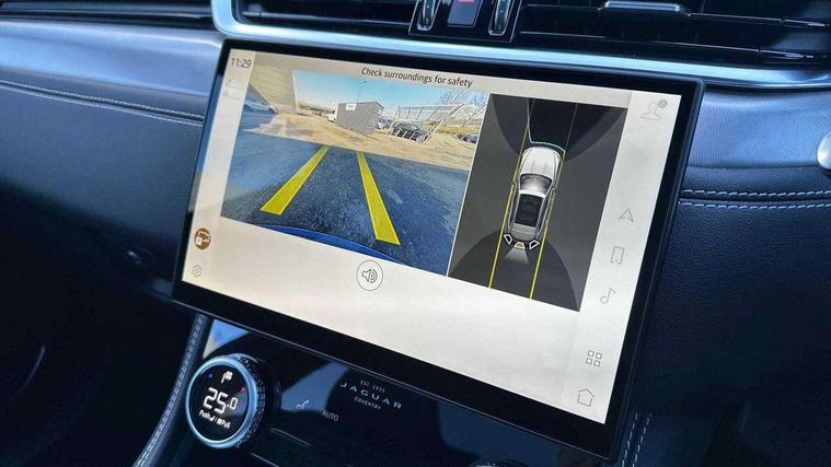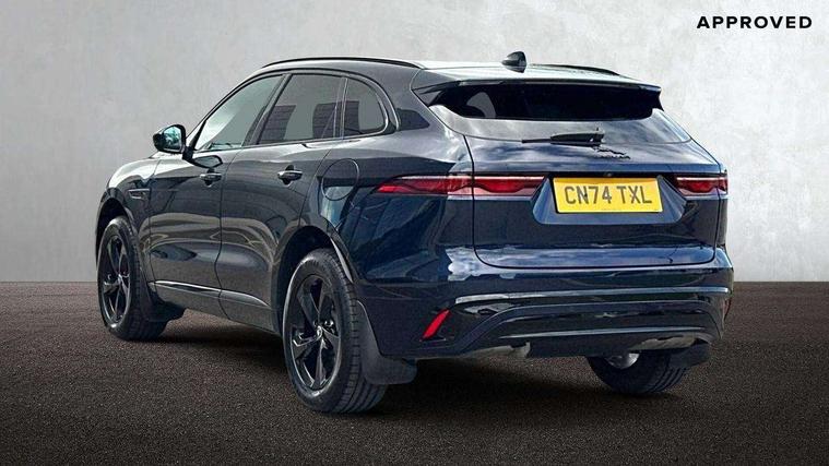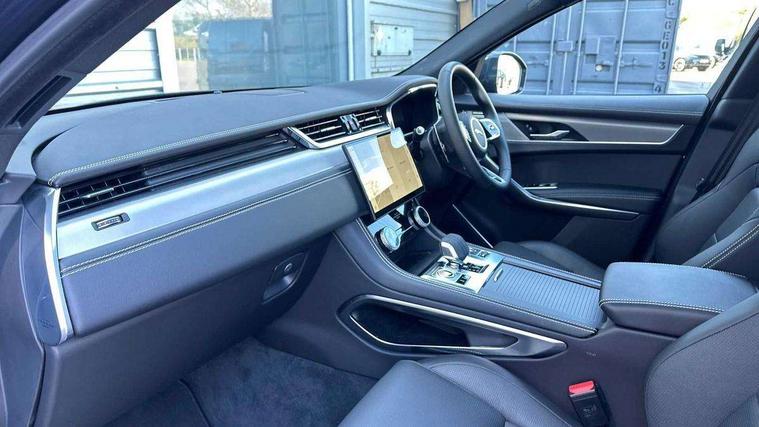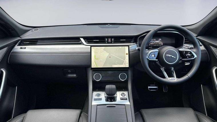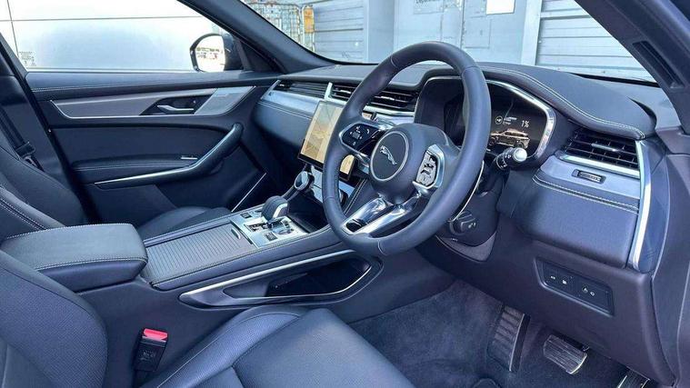 11.4" touchscreen, Android Auto, Apple car play, Blind spot assist, Bluetooth connectivity, Clear exit monitor, Driver alert system, Driver condition monitor, eCall emergency call system, Eco driving style assistant, Electric power assisted steering, InControl remote, Interactive driver display digital with 12" TFT display, Jaguar Toggle shift selector, Lane departure warning system, Lane keep assist, Outside temperature gauge, Personalisation profile management, Pivi pro connected navigation system with app interface and media storage, Pro services and wifi hotspot, Push button starter, Rear traffic monitor, Service interval indicator, Speed proportional steering, Start up sequence with movement in dials and lighting, Traffic sign recognition with adaptive speed limiter, Trip computer, Voice control system, Wireless device charging, 7 kW onboard charger, 8 speed automatic transmission, AC/DC charging, Adaptive dynamics, All terrain progress control, All Wheel Drive (AWD), Configurable dynamics, Home charging cable, Open differential with torque vectoring by braking, Public charging cable, AM/FM radio, Bluetooth streaming, DAB Radio (Digital Audio Broadcasting), Dynamic volume control, InControl apps, InControl protect, iPod integration, 3 flash lane change indicators, AHBA and animated directional indicators, Approach Illumination, Auto dimming rear view mirror, Automatic headlights, Electric heated/power fold memory door mirrors with approach lights and auto dimming driver side, Electric windows with one touch open/close and anti trap, F-Pace and R Dynamic badge, Green tinted glass, Heated front windscreen + heated washer jets, Heated rear window with timer, Jaguar script and leaper, LED High level third brake light, LED tail lights, Metal load space scuff plates, Non acoustic front windscreen, P400e AWD badge, Privacy glass (rear side windows and rear screen), R Dynamic badge on side door, Rain sensor windscreen wipers, Rear fog lights, Rear metal tread plates, Rear side wing doors, Rear wiper, Trailer stability assist, Variable front intermittent wipers, 12V power point front, 3 rear headrests, 3 seat bench in 2nd row, Additional power sockets - Two additional USB sockets in rear centre console and one 12V socket in trunk, Air distribution speed, Bright metal foot pedals, Centre armrest console, Centre console with side storage, Configurable cabin lighting, Deletion loadspace storage rails, Door sill tread plates, Fold flat front seats, Front centre armrest with storage compartment, Front door storage space, Glovebox finisher with jaguar script, Heated steering wheel, Hooks in loadspace, Illuminated glovebox, Interior front door handles with separate locking switches, ISOFIX on outer rear seats, Jaguar sense, Leather steering wheel, Luggage tie downs in loadspace, Mist sensing, Multifunction steering wheel, Overhead lighting console, Overhead stowage for sunglasses, Passive front head restraints, Premium carpet mats, Rear air vents, Rear armrest with twin cupholders, Rear centre headrest, Rear door storage space, Reversible boot floor, Satin chrome gearshift paddles, Shopping bag hook, Single front passenger seat, Sunvisors with illuminated vanity mirrors, Twin front cupholders with cover, Online Pack with data plan - F-Pace, 380mm front brakes and 325mm rear brakes, 3x3 point rear seatbelts, ABS, All surface progress control (ASPC), Brake pad warning light, DSC - Dynamic Stability Control, Electric parking brake (EPB), Emergency brake assist, Front airbags with passenger seat occupant detector, Front and rear seatbelt reminder, Front side airbags, Full length side window curtain airbag, Hill launch assist, Power operated child locks, Traction control, Tyre pressure monitoring system, Immobiliser, Keyless entry, Keyless Start, Locking wheel nuts, Perimeter alarm, Remote central locking, Valet mode,