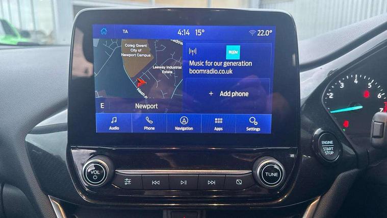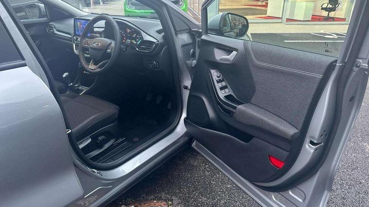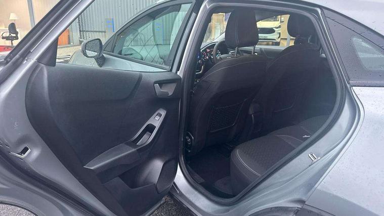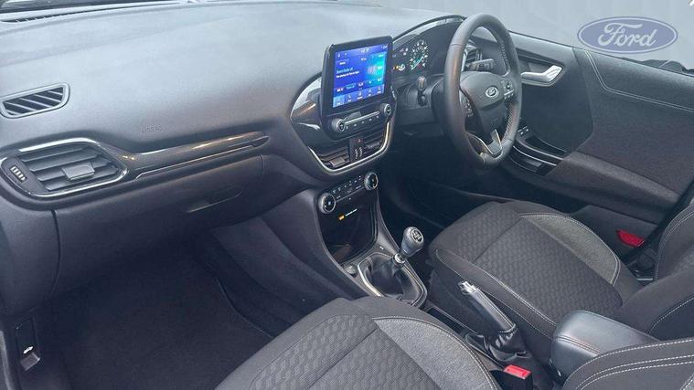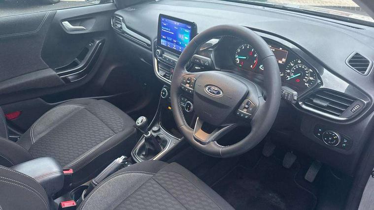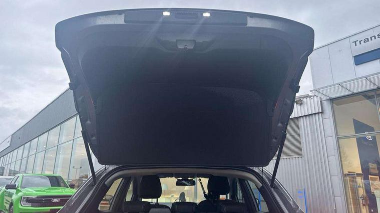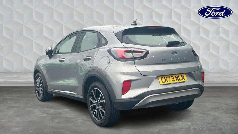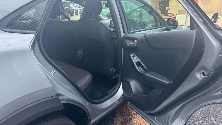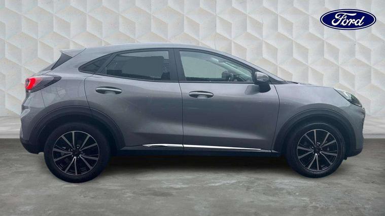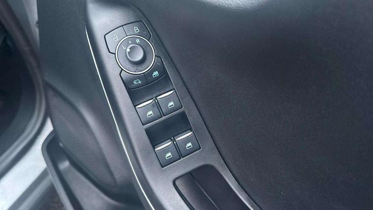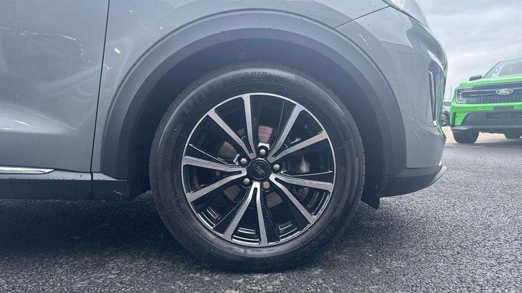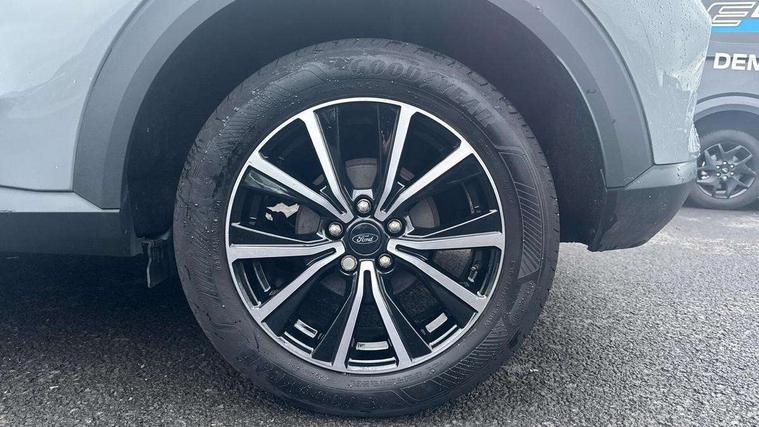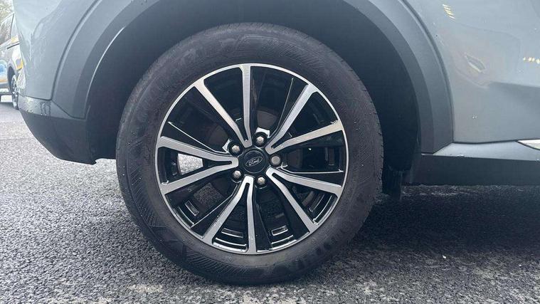 Driver impairment monitor, Emergency call service, Ford easy fuel, Lane keeping aid with lane departure warning, Power assist steering, Power start button, Rear parking sensor, Selectable drive modes(Normal, sport, Eco, trail, slippery), Speed sign recognition, Standard suspension, Automatic headlights with auto high beam, Automatic rain sensing wipers, Body colour rear spoiler, LED rear lamps, Power foldable heated door mirrors with puddle lamps, Projector headlamps with LED day time running lights and front fog lamps, Quickclear heated windscreen, Rear side wing doors, Rear wiper, Third brake light, 3 seat bench in 2nd row, Centre console with armrest and stowage, Electronic automatic temperature control (EATC), Ford megabox extended bootspace, Front and rear head restraints, Front floor mats, Manual 2 way passenger seat adjustment, Manual 4 way driver seat adjust with lumbar adjustment, Sensico leather steering wheel/gear knob/handbrake, Single front passenger seat, Titanium cloth upholstery, Ford SYNC 3 navigation pack - Puma, 3 rear seatbelts, Child safety lock, Electronic stability control (ESC) and hill start assist, Pedestrian/cyclist detection & post-collision braking, Pre collision assist system, Tyre pressure monitoring system (TPMS), Thatcham alarm, 17" 10 spoke absolute black machined finish alloy wheel,