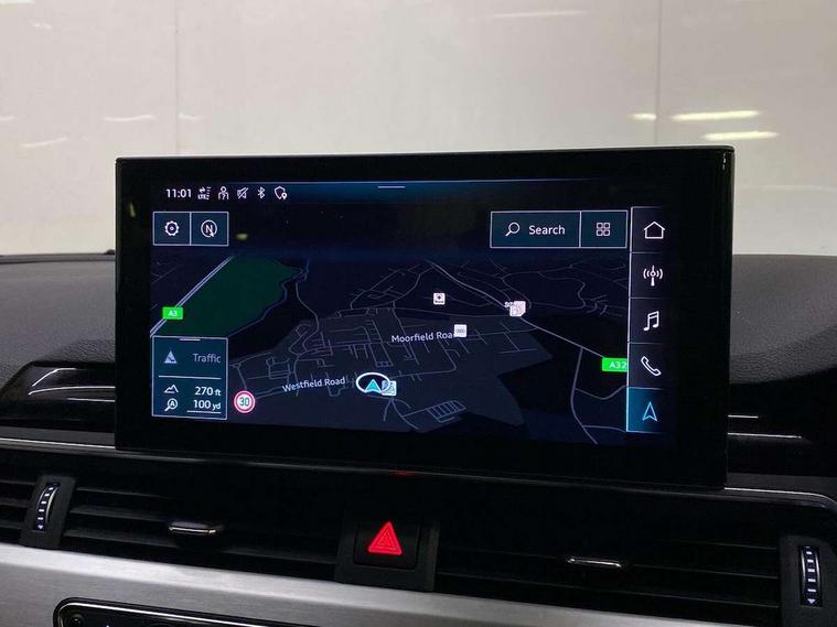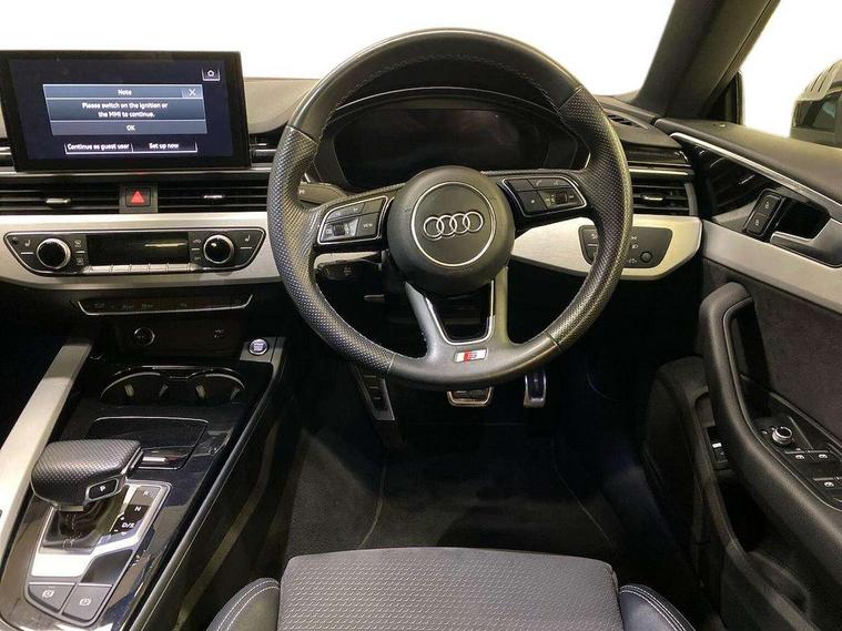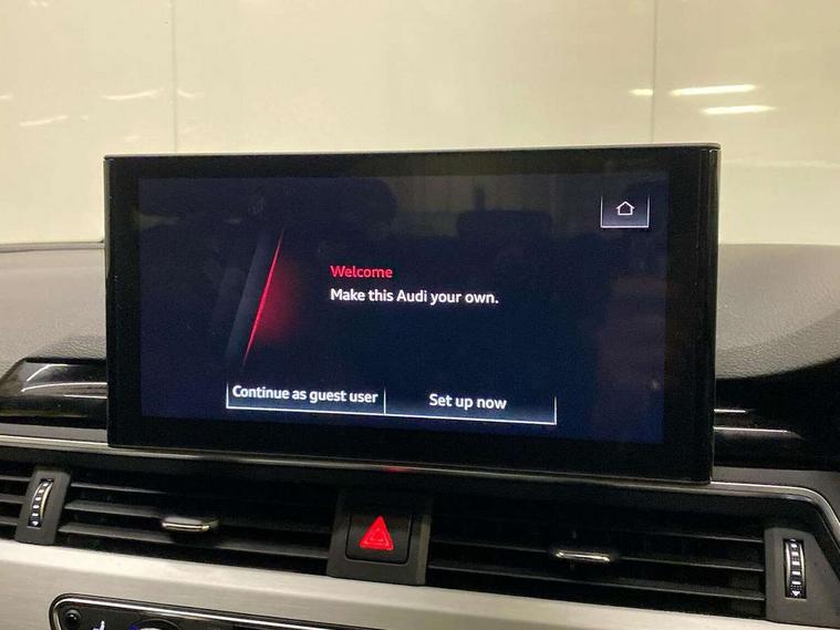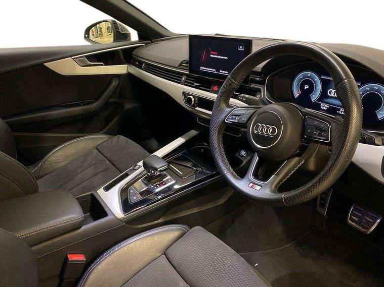 Audi connect safety and service (e-call), Audi connect with Amazon Alexa Integration, Audi drive select (Auto, Comfort, Dynamic, Efficiency and Individual), Audi parking system plus with front and rear sensors, Audi smartphone interface, Audi virtual cockpit - 12.3" full colour digital instrument cluster, vehicle/engine speed, Radio/media information+Driver assistance systems, Automatic start-stop system with coasting functionality and efficiency programme, Bluetooth interface, Electro-mechanical power steering, Email, calendar and text messages displayed via MMI, MMI nav+ with MMI touch - 10.1" high resolution MMI display, touch sensitive, 3D map, route/country info, dynamic route guide, personal route assist, Power operated tailgate, Rear view camera, Service interval indicator, Voice control system, Diesel particulate filter, Sports suspension lowered by 23mm, 8 passive loudspeakers, CD player, DAB digital radio reception, Two additional USB ports for rear passenger in rear centre console, Two SDXC card slots, Audi matrix LED headlights with LED rear lights + dynamic front and rear indicators, Auto dimming door mirrors, Auto dimming rear view mirror, Body colour bumpers, Body colour door handles, Body colour front spoiler lip, Body colour side sill trim, Body coloured door mirrors, Electric adjustable heated door mirrors, Electric folding door mirrors, Electric front windows, Front fog lights, Honeycomb structure radiator grille in grained matt black, Kerb-view function for passenger side, LED daytime running lights, LED side indicator lights integrated into door mirrors, LED third brake light, Matt aluminium silver tailpipe trim, Privacy glass, Rain and light sensors, Rear side wing doors, S line badges on front wings, S line front and rear bumpers with side skirts, S Line rear diffuser in matt titanium black with trim strip in matt aluminium silver, Side air inlets in grained matt black with matt aluminium silver inlay, Variable front intermittent wipers, Windscreen with acoustic glazing, 3 seat bench in 2nd row, 4 way electric lumbar support for driver and front passenger, 40/20/40 split folding 3 seater rear bench seat, Adjustable steering column, Black cloth headlining, Black perforated leather gearknob, Contrast stitching on seats, steering wheel and gear lever gaiter, Deluxe 3 zone electronic climate control, Front centre armrest, Front head restraints, Front/rear floor mats, Heated front seats, Illuminated door sill trim with S logo, ISOFIX child seat mounting and top tether, Luggage compartment mat, Manual seat adjustment, Rear centre armrest, Rear headrests, Single front passenger seat, Stainless steel pedals, Sunvisors with vanity mirrors, LED interior light pack - A5/RS5, 3x3 point rear seatbelts, 6 airbags - Driver, front passenger, curtain and side airbags, Electromechanical parking brake, Electronic Stabilisation Control (ESC) including ABS, ASR and EDL, Front passenger airbag deactivation, Height adjustable front seatbelts, Hill hold assist, Manual child lock in rear doors, Multi collision brake assist, Pop-up bonnet for pedestrian protection, Pre sense city, Seatbelt monitoring, Tyre pressure warning, Variable restraint system, Warning triangle and first aid kit, Anti theft alarm system, Anti theft wheel bolts, Immobiliser, Keyless Go, Remote central locking, Matt brushed aluminium inlays, Tool kit, Tyre repair kit,