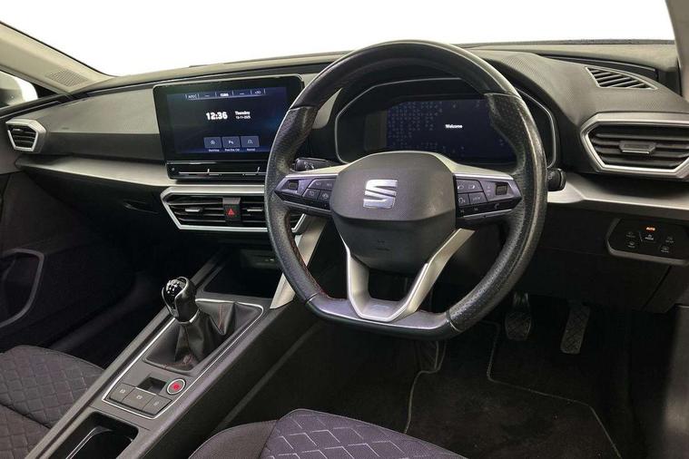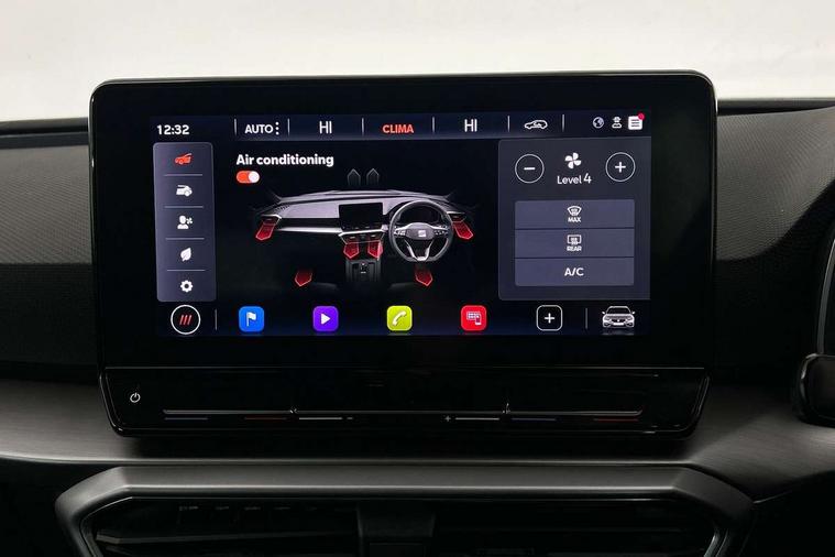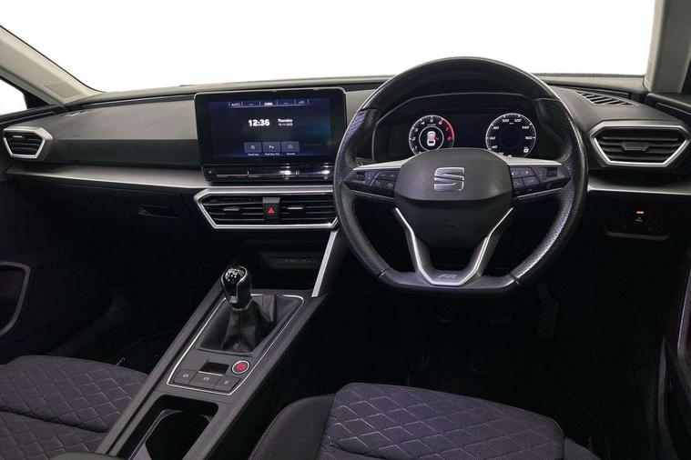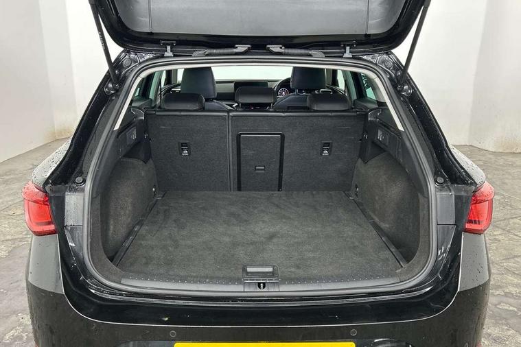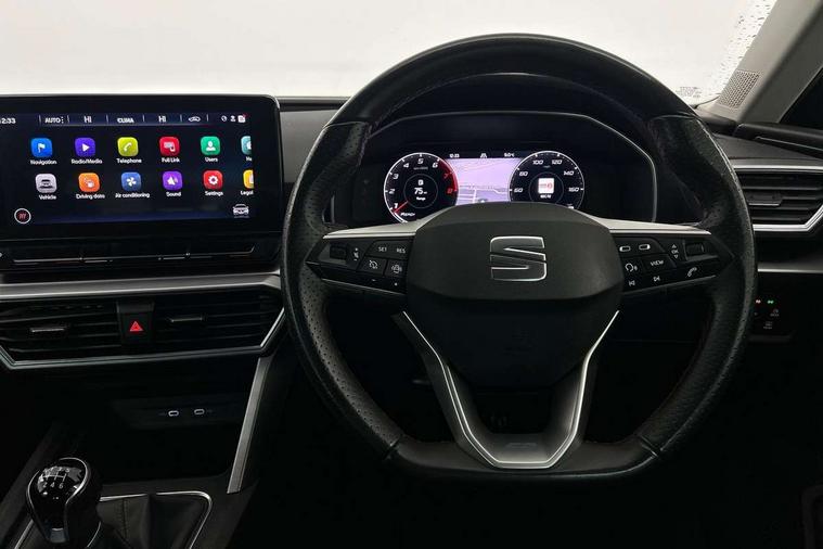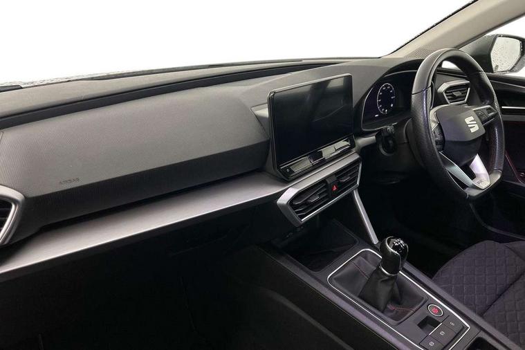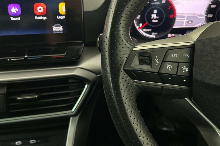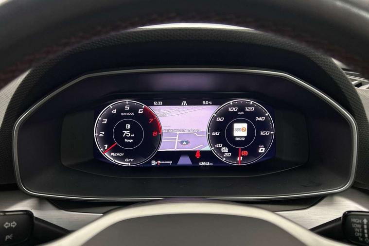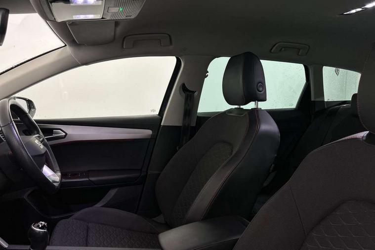 Digital cockpit, E-call, Four x USB Type C ports, Front assist with forward collision warning braking reaction to vehicles, pedestrians and cyclists, Full link smartphone integration with Mirror Link, wireless Apple CarPlay and wired Google Android Auto, Lane assist, Lockable tailgate, Park assist (inc front/rear parking sensors), Power assisted speed sensitive electro-mechanical steering, Rear view camera, RPM, trip computer, outside temp gauge, instrument light brightness, low fuel warning light, lights on reminder, gearshift indicator, SEAT drive profile with 4 modes (Eco/Normal/Sport/Individual), throttle response, Service interval indicator, Start/stop system with regenerative braking, Sports suspension, XDS electronic differential lock and dynamic traction support, 7 speakers, Auxiliary input socket, Auto dimming rear view mirror, Body colour door handles, Body coloured bumpers, Cosmo grey exterior mirrors with integrated LED indicators, Dark tinted rear windows, Dynamic headlight range control, Electric front/rear windows, Electrically adjustable, heated and folding door mirrors, FR sports bumper, Illuminated front door sill, LED front fog lamps, LED Headlights with dynamic turn signals, LED tail lights and rear fog lights with rear coast to coast lighting, Matt black roof rails, Rear side wing doors, Rear wash/wipe, Separate daytime running light with automatic headlight control and coming home feature, Third brake light, Welcome light silhouette from exterior mirrors, Windshield wiper intermittent control with light/rain sensor, 12v power point in centre console, 3 seat bench in 2nd row, 60/40 split rear bench seat with armrest, Ambient lighting with glovebox, footwell and single monocolour, Driver/passenger manual seat height adjustment, Dust/pollen filter, Flat bottomed perforated leather steering wheel with red stitching and FR logo and leather gear stick, Front and rear height adjustable headrests, Front and rear reading lights X 4, Front centre armrest, Front seatback storage pockets, Height/reach adjust steering wheel, ISOFIX points in outer rear seats with top tether anchorage points, Luggage tie-down hooks, Lumbar adjustment for front seats, Single front passenger seat, Sliding boot cover, Sunvisors with covered illuminated mirror, Three zone climate control, Two tone cloth upholstery, Media system plus with navigation - Leon, 3 point seatbelts on all rear seats, ABS, Brake control system - ESC and brake booster, Child proof door locks, Driver and front passenger airbags with front passenger airbag de-activation, front side and curtain airbags, Electronic parking brake, Extended safety system - seat belt tensioner, window closure and hazard lights, Hill hold control, Rear disc brakes, Seat belt reminder for front and rear seats, Tiredness recognition system, driver alert system, Tyre pressure monitoring system, Anti theft alarm system with interior monitoring in cab, backup horn and towing protection, KESSY Go (Keyless start), Locking wheel bolts, Wireless phone charging, Chrome interior detailing, 17" Dynamic Bi-spoke alloy wheels with 91W tyres, Tool kit,
