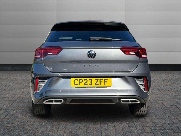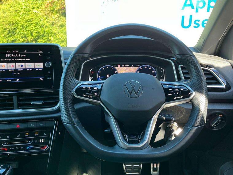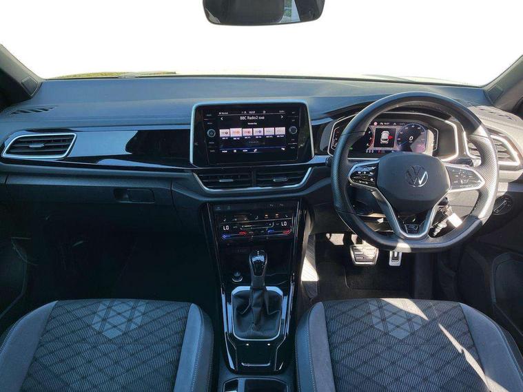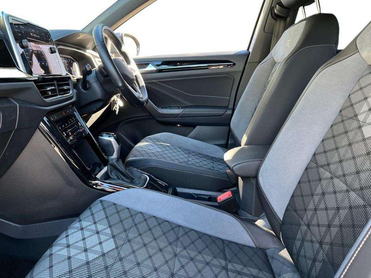 10.25" Digital cockpit pro, Bluetooth mobile phone interface, Driver alert system with fatigue detection, Driver tips and journey analysis, Emergency call service, Lane keeping system Lane Assist, Modified key software - reduce switch off time for key status change to Long no motion, Online services, Park assist including front and rear parking sensors, Service interval indicator, Tailgate/trunk lid release from outside, Think blue trainer driver tips and journey analysis, Warning sound and light for front seatbelts unfastened, Wireless app connect, Battery regeneration during braking, Start/stop function with battery regeneration, Diversity antenna for FM reception, Front and rear 6 speakers, Music playback - MP3, WMA and AAC files, Premium USB cable in choice of either Apple or Android smartphone compatibility, SD card slot, Simultaneous pairing of 2 compatible mobile devices, Title and cover art display, We Connect and We Connect Plus functionality, 3rd brake light, Auto dimming interior rear view mirror, Automatic hazard lights activation under emergency braking, Automatic headlight control with LED separate daytime running lights with coming/leaving home function, Extended roof spoiler, Exterior mirrors aspherical on driver side, convex on front passenger side, External USB type C socket and charging sockets, Front windscreen wiper with intermittent wipe and 4 position delay, Heated rear window, LED Plus headlamps, LED rear combination lamps, LED rear number plate lights, LED tail lamp rear comination lamps, Power windows with comfort operation and circuit breaker, R-Line design body coloured bumpers, Rain sensor, Rear exhaust tailpipe, Rear fog light on one side and reversing lights on both sides, Rear side wing doors, Rear wash/wipe with intermittent wipe setting, Remote electrically foldable door mirrors, puddle lights and reverse activated passenger's door mirror, 12V power socket in centre console, 3 rear head restraints, 3 seat bench in 2nd row, 4 load lashing points in luggage compartment, Air care climatronic air conditoning system with active combination filter and 2-zone temperature control, Black roof lining, Chrome plated radiator grille inserts, air vent surrounds and light switch surrounds, Door and side trim panel with leatherette insert, Drawer under drivers seat, Front + rear carpet mats, Front centre armrest, Front cupholders x 2, Front footwell illumination, Front reading light, Front scuff plates with R logo, Instrument lighting, white adjustable panel illumination, Interior ambient lighting and surround lighting, Interior light delay, Isofix child seat preparation, Leather gearshift handle, Load-through provision with cup holder when folded down ('Unsplit rear seat bench, split folding backrest, with centre armrest), Luggage compartment lighting, Single front passenger seat, Stainless steel pedals, Storage compartment in left and right luggage area, Storage compartment in rear doors, Storage compartments in driver and front passenger doors, Sunvisors with illuminated vanity mirrors, Variable boot floor, height adjustable and removable, Driver assistance pack without proactive passenger protection - T-Roc, 3 point height adj front seatbelts + pretensioners, 3 point seatbelts in outer rear with ECE label, ABS, Child locks on rear doors, Driver and front passenger airbag with front passenger airbag deactivation, Driver and front passenger safety-optimised head restraints, Drivers seatbelt reminder, Electronic parking brake, Electronic Stability Control (ESC) inc EDL (Electronic Differential Lock) and ASR (Traction Control), Front and rear passengers curtain airbag system including front side airbags, Front assist with city emergency braking and pedestrian monitoring, Front seat side impact airbags, Hill start assist, Predictive pedestrian protection, Rear disc brakes, Single tone horn, Tyre pressure loss indicator, Volkswagen roadside assistance, Alarm with interior protection, Anti-theft alarm system with interior monitoring, backup horn, and towing protection, Remote central locking with SAFELOCK, radio remote control with 2 remote control folding keys, Trims for alloy wheels,